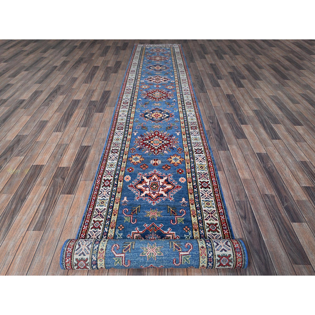 2'10"x16' Imperial Blue, Kazak With Geometric Medallions Design, Soft And Shiny Wool, Hand Knotted, Denser Weave, Vegetable Dyes, Xl Runner, Oriental Rug FWR3264