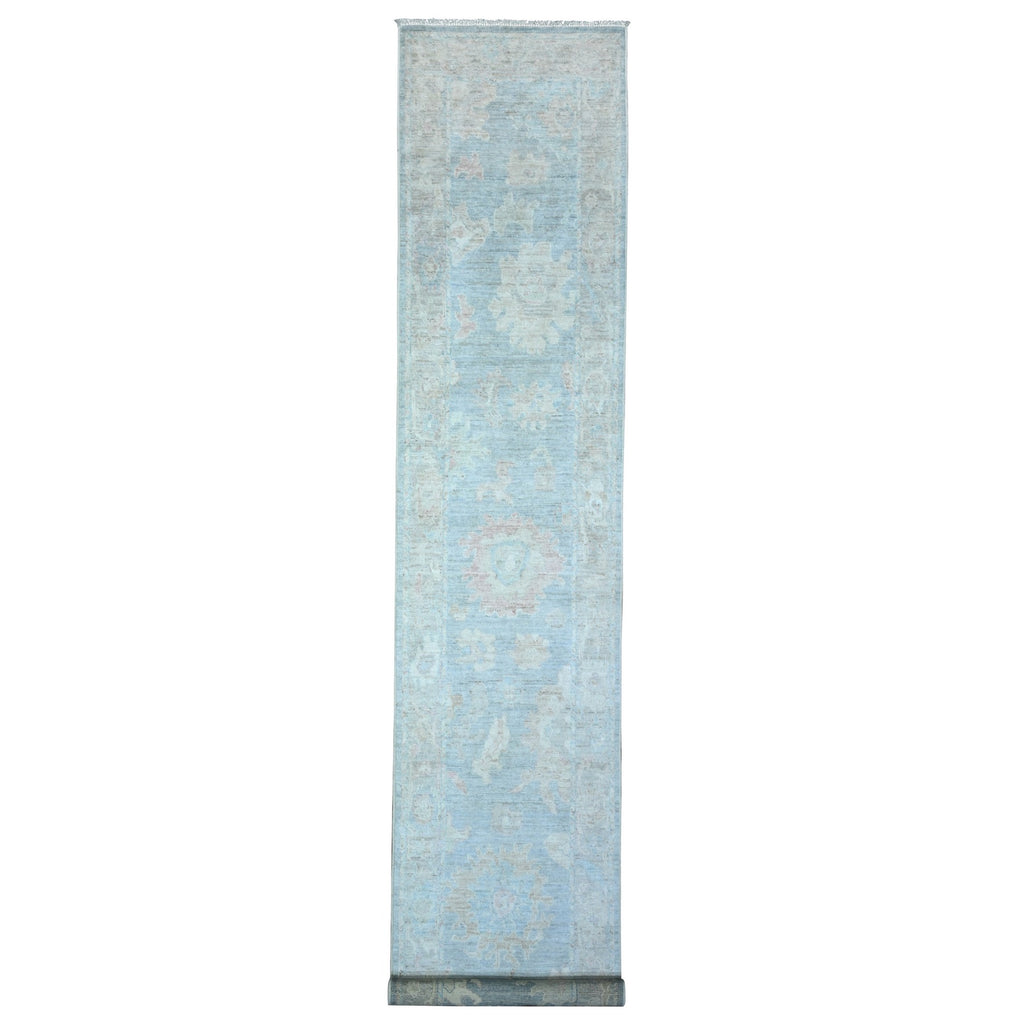 2'10"x16' Ruddy Blue, Extra Soft Wool Weft, Vegetable Dyes, Afghan Angora Oushak, Hand Knotted With Rural Floral All Over Design, Xl Runner Oriental Rug FWR538068