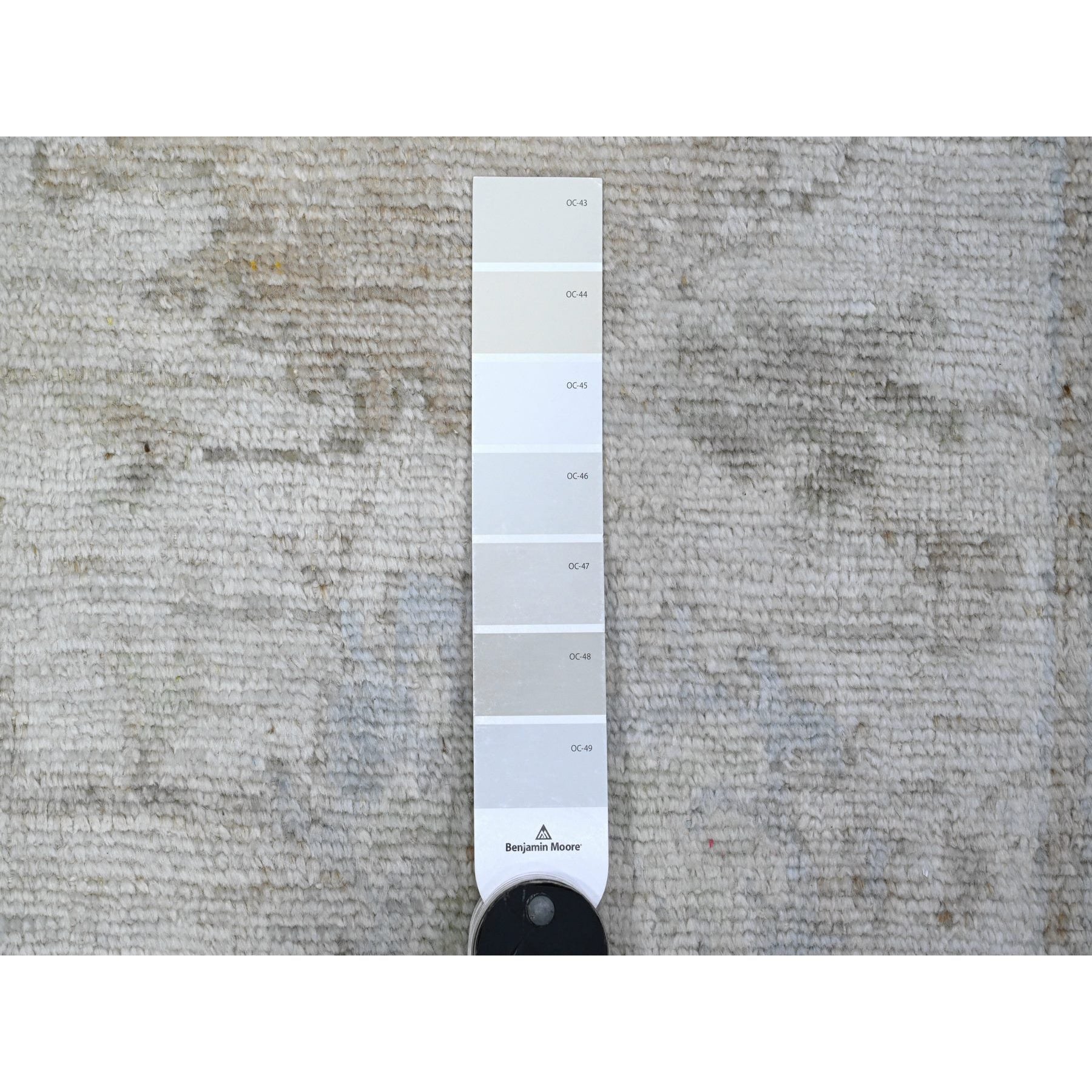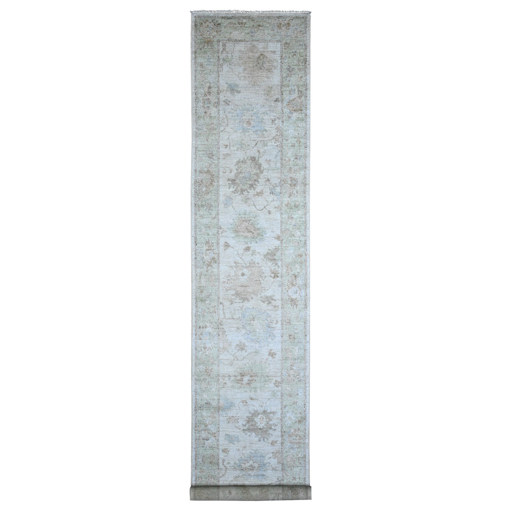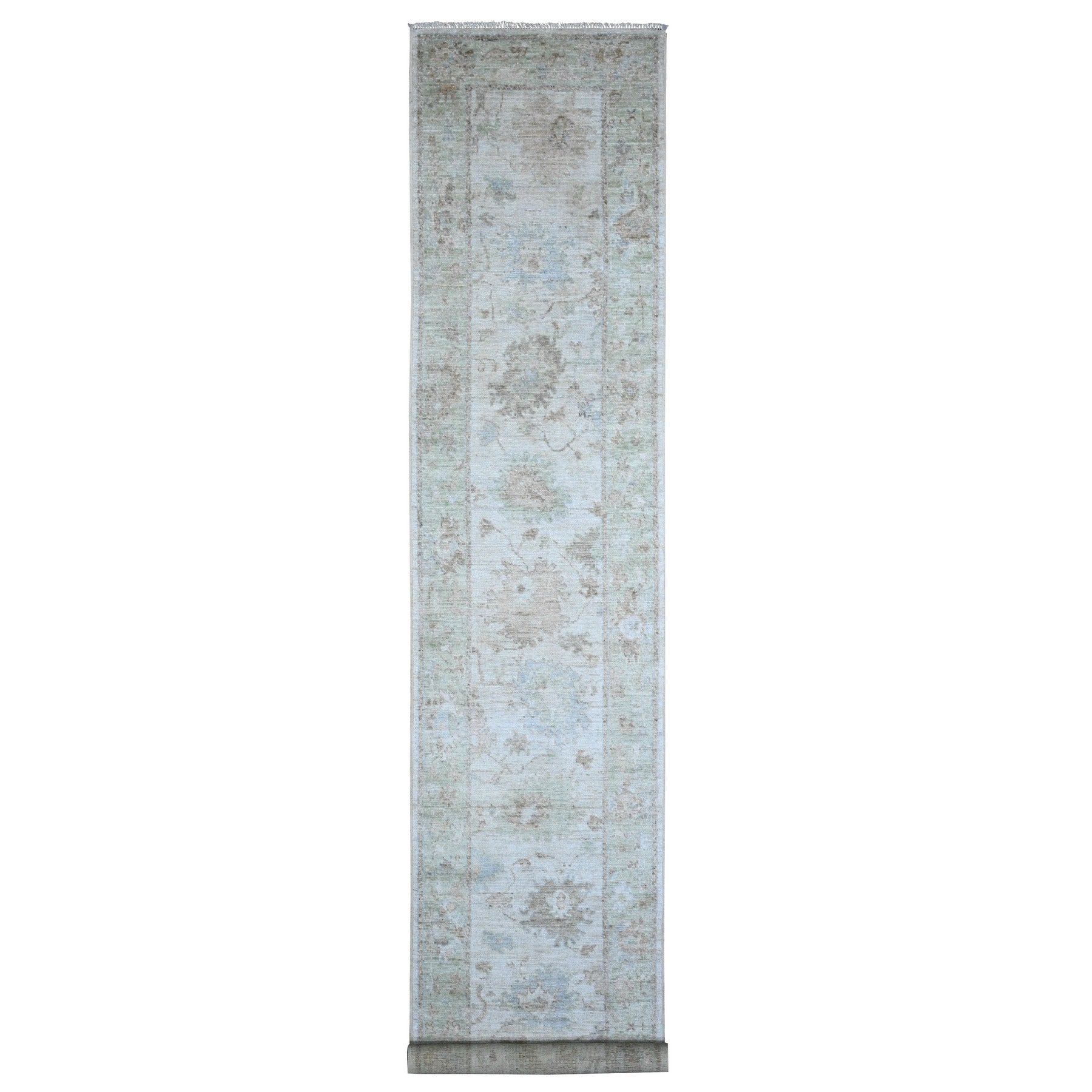 2'10"x16' Silver Gray, Hand Knotted With Natural Dyes, Afghan Soft Wool Weft, Tribal Flower And Leaf Motifs All Over Design, Angora Oushak, Oversized Oriental Runner Rug FWR538074