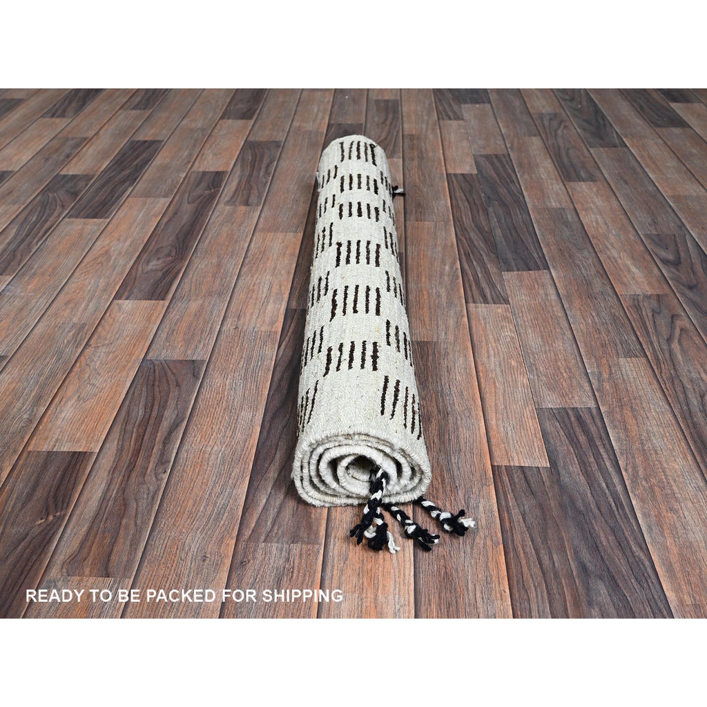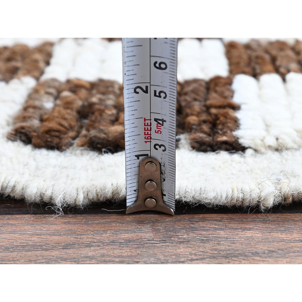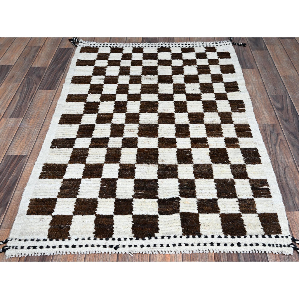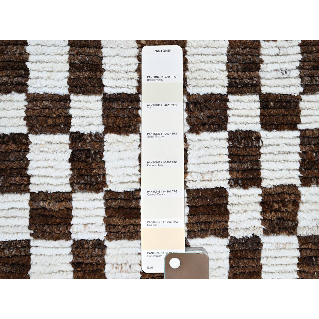 2'10"x4'10" Chocolate Brown And Ivory, Moroccan Weave With Squares Design, Tone On Tone, Textured Pile, Undyed Natural Wool, Hand Knotted, Oriental Rug FWR8286