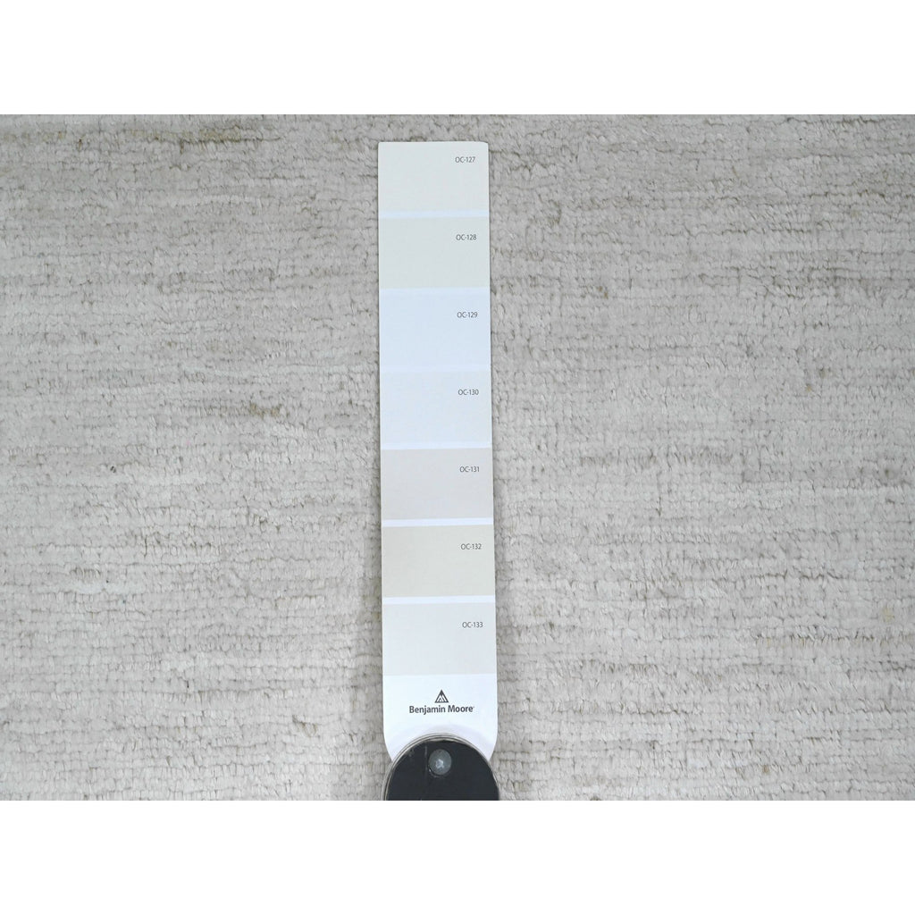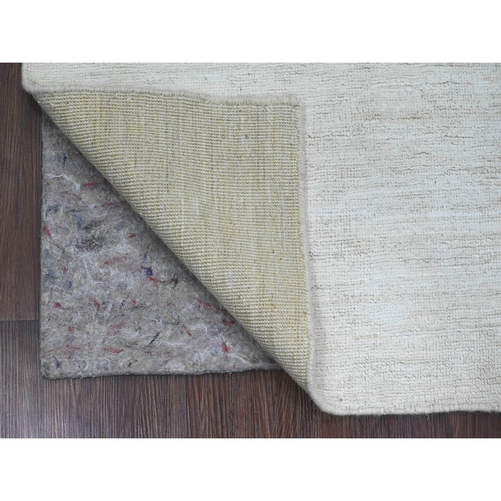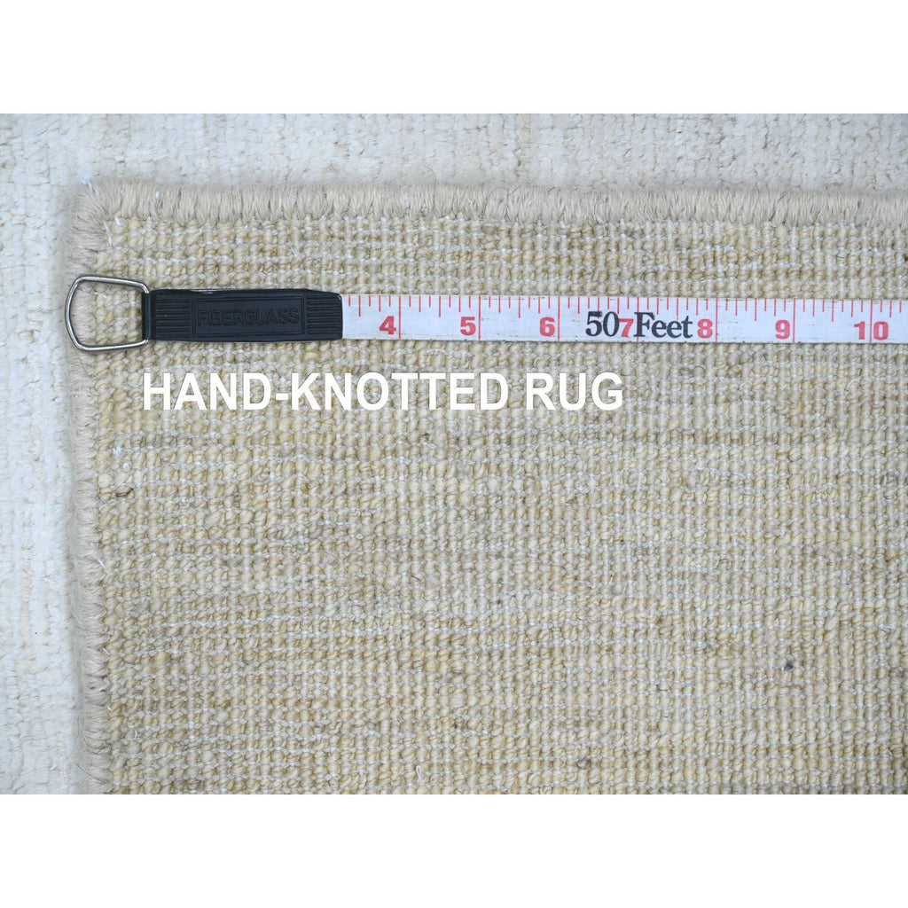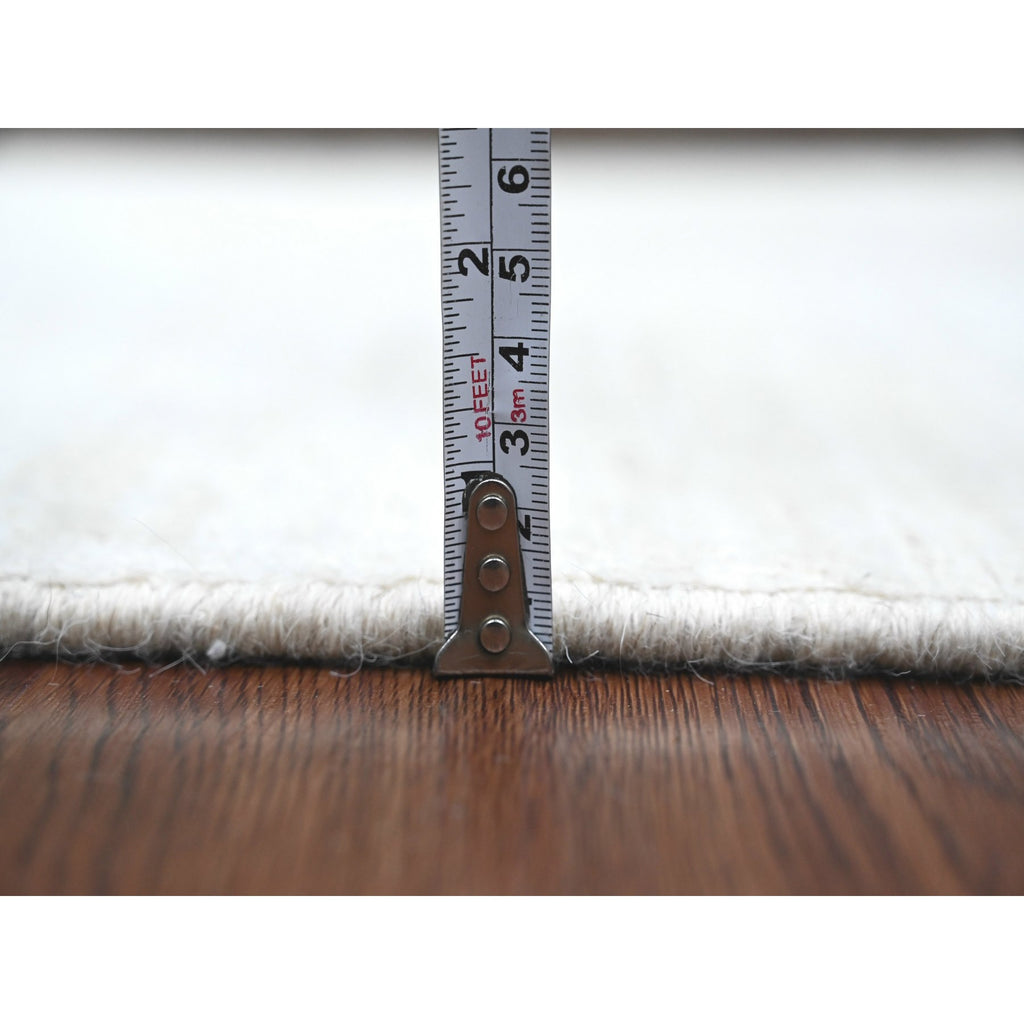 2'10"x4'9" Daisy White, Plain Solid Pattern, Hand Knotted, Hand Spun Ghazni Wool, Lush And Plush, Oriental Rug FWR124956