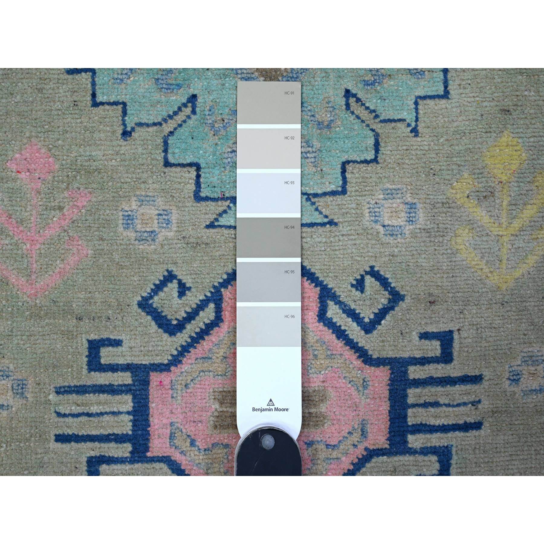 2'10"x4' Thunder Gray, Colorful Caucasian All Over Design, Hand Knotted Fusion Kazak, Pure And Soft Wool, Oriental Rug FWR536400