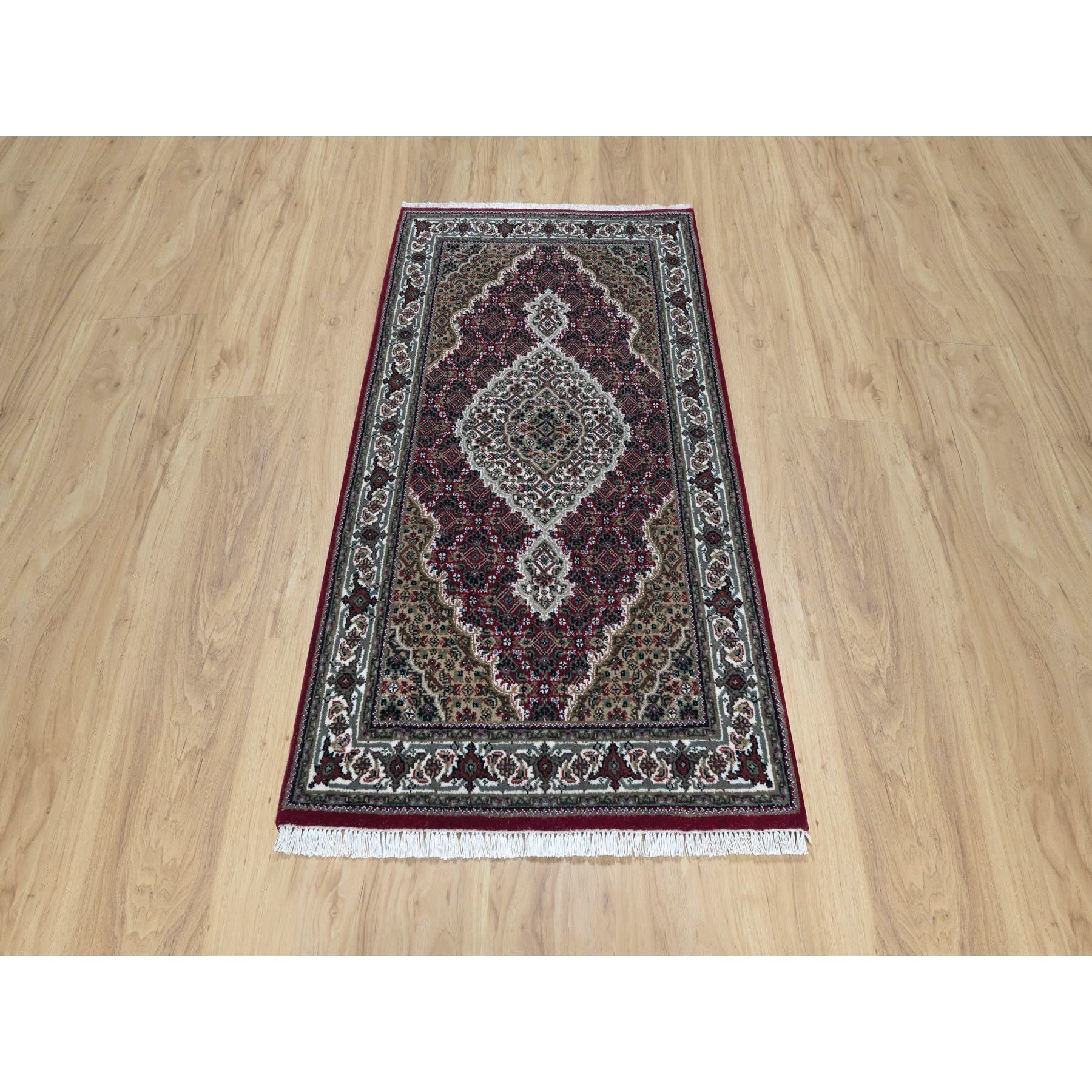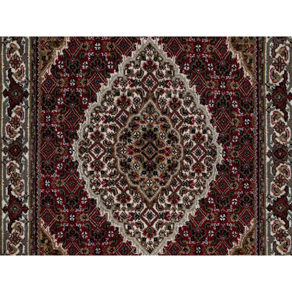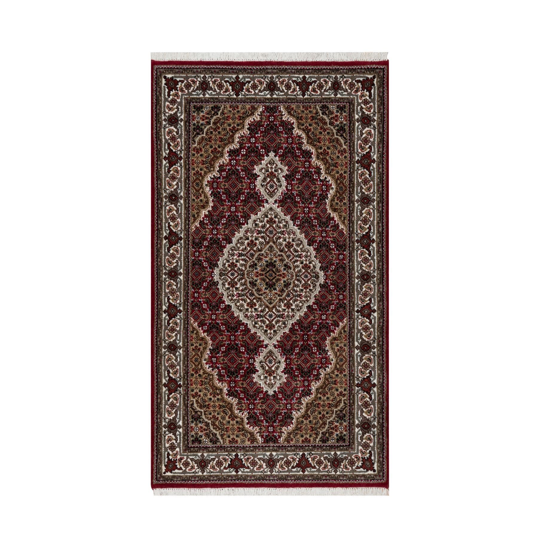 2'10"x5'1" Mahogany Red, Natural Wool, Tabriz Mahi With Fish Medallion Design, Hand Knotted, Densely Woven, Oriental Rug FWR545904