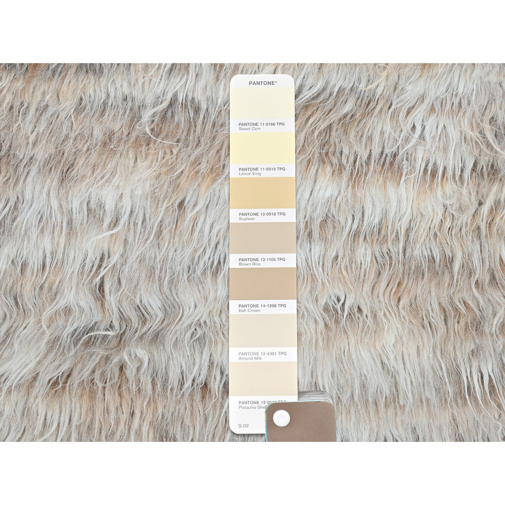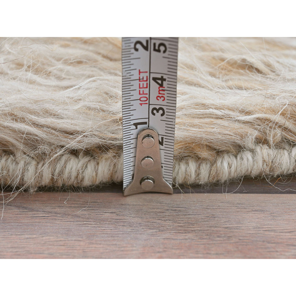 2'10"x5'5" Beige, Shaggy Moroccan Exotic Texture, Undyed Natural Wool Hand Knotted, Oriental Rug FWR492144