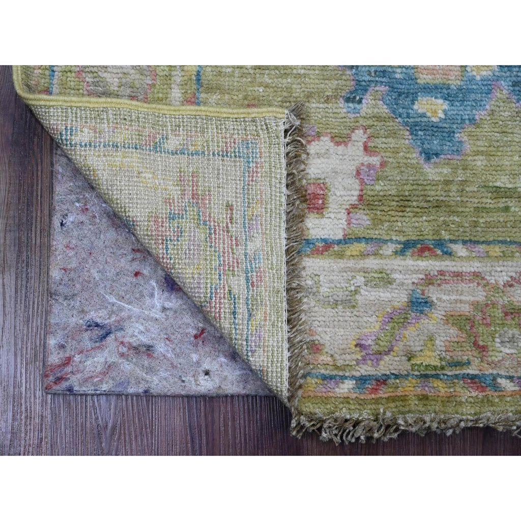 2'10"x5'8" Olive Green, Afghan Angora Oushak With Large Leaf Design, Natural Dyes, 100% Wool, Hand Knotted, Short Runner, Oriental Rug FWR539376