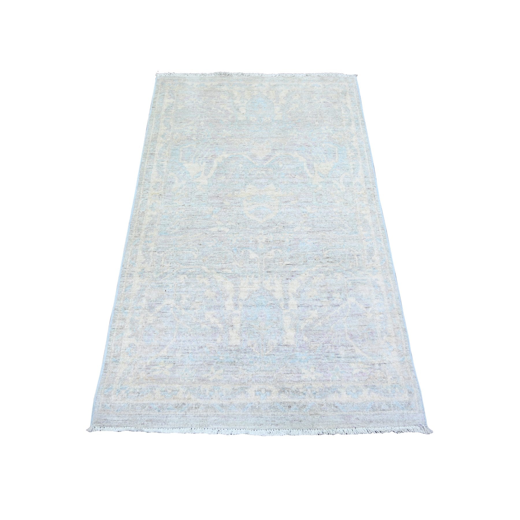 2'10"x5' Ash Gray, White Wash Peshawar With All Over Design Natural Dyes, Pure Wool Hand Knotted, Oriental Rug FWR444390