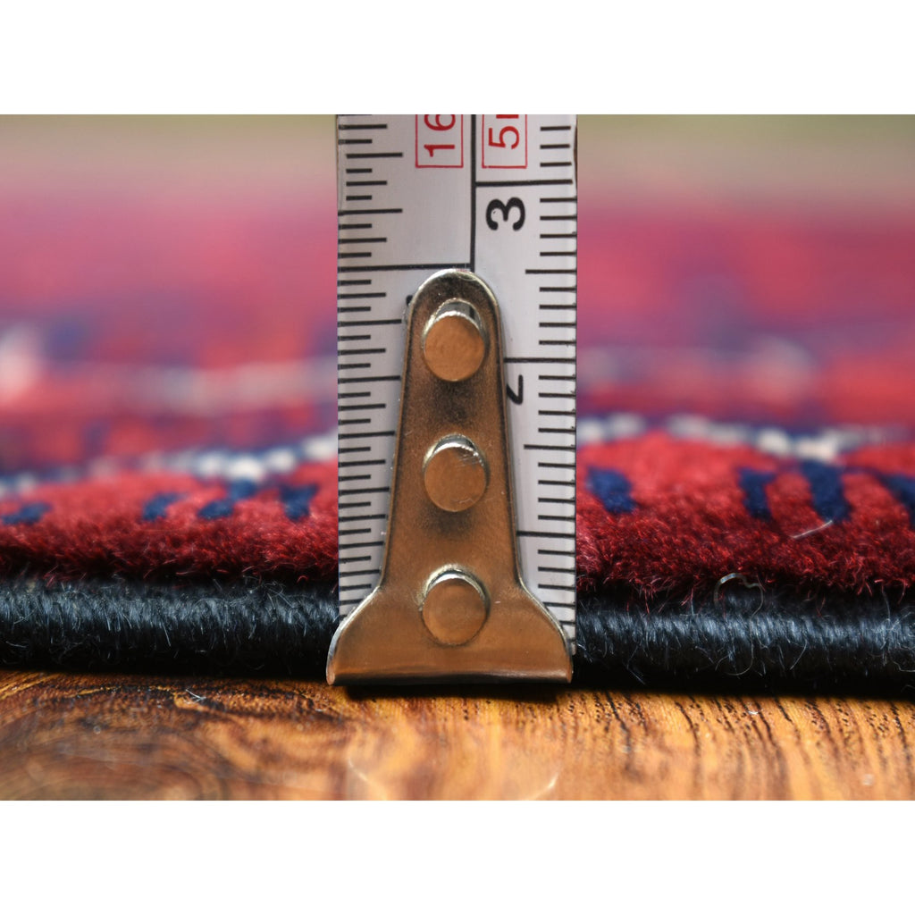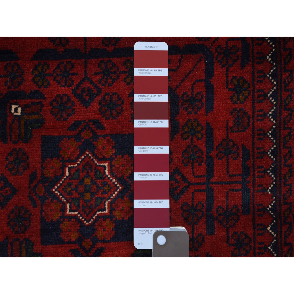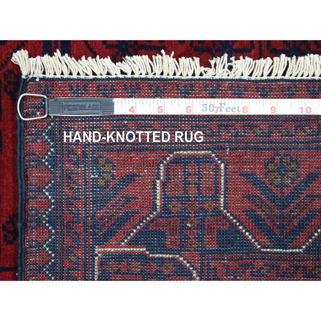 2'10"x9'4" Deep And Saturated Red With Geometric Design Hand Knotted Afghan Khamyab, Velvety Wool Runner Oriental Rug FWR431418