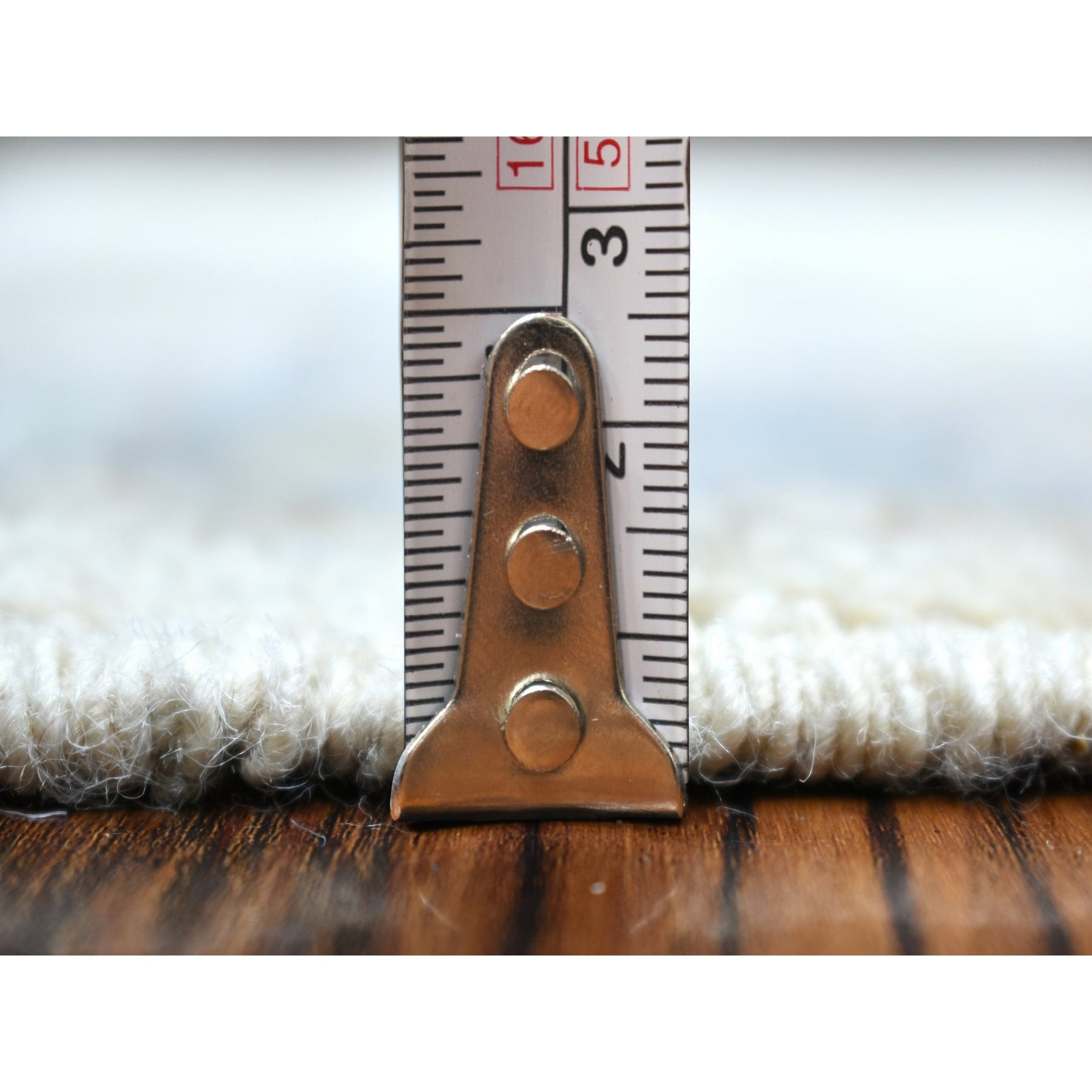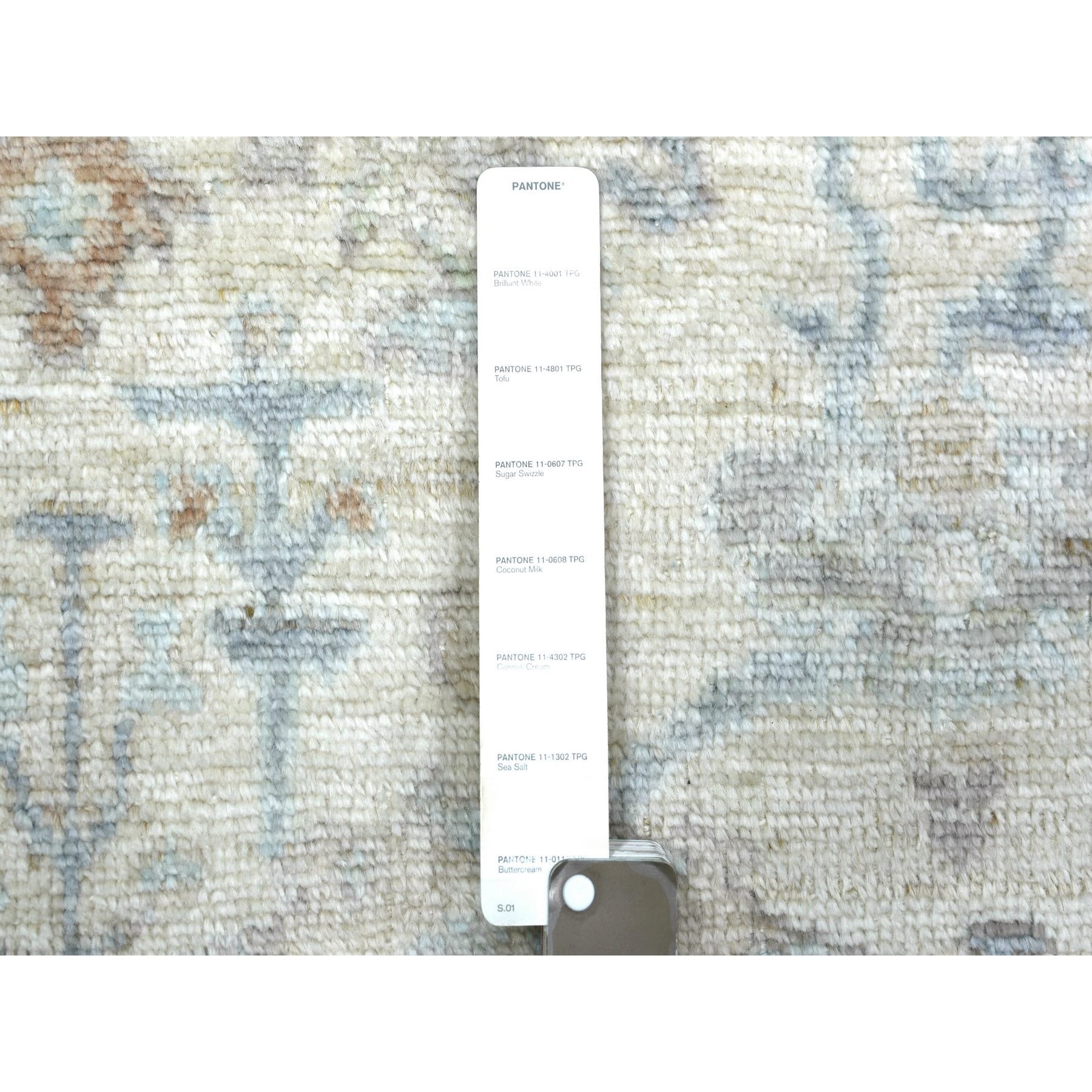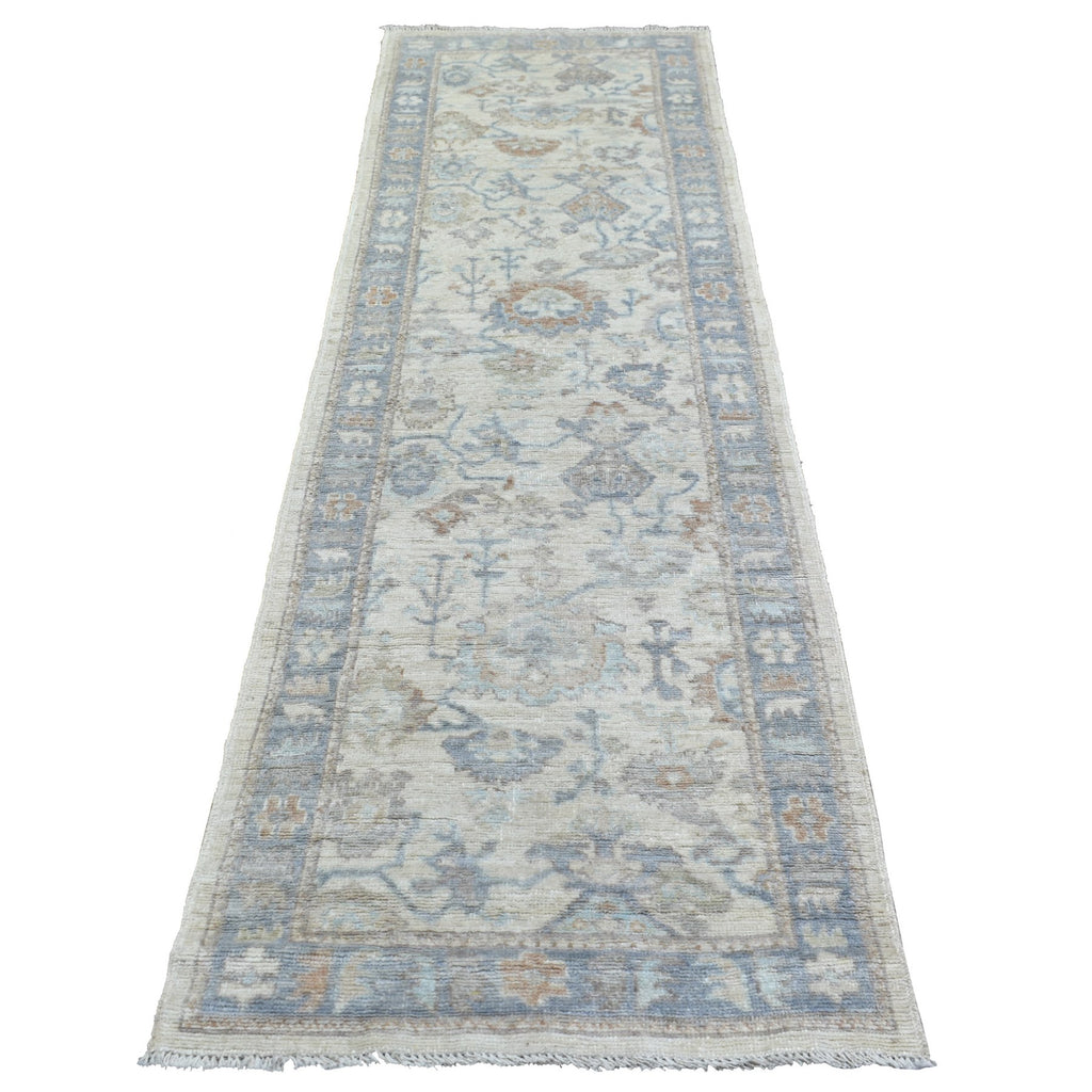 2'10"x9'5" Ivory Natural Dyes Angora Oushak With Colorful Leaf Design, Afghan Wool Hand Knotted Runner Oriental Rug FWR431346
