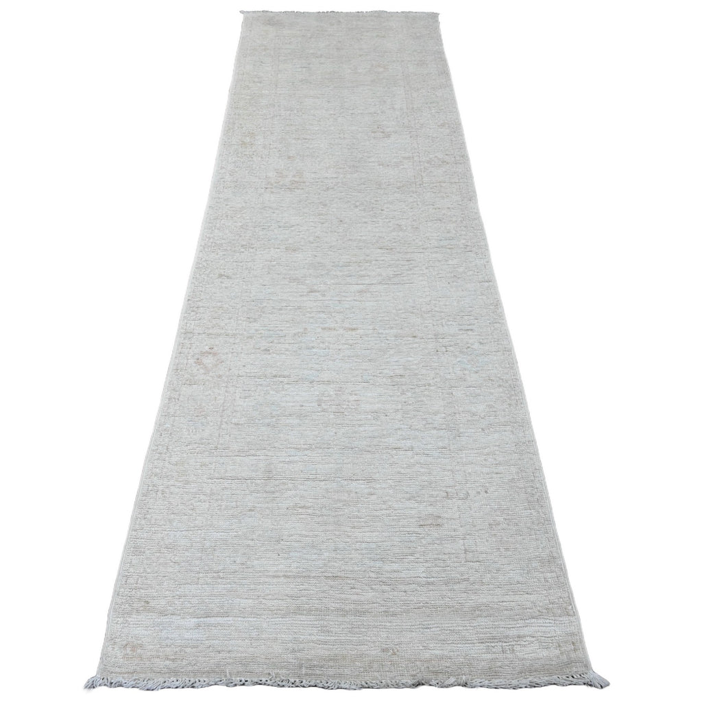 2'10"x9'7" Daisy White, Afghan Angora Oushak With All Over Pattern, Hand Knotted, Natural Dyes, 100% Wool, Runner, Oriental Rug FWR123990