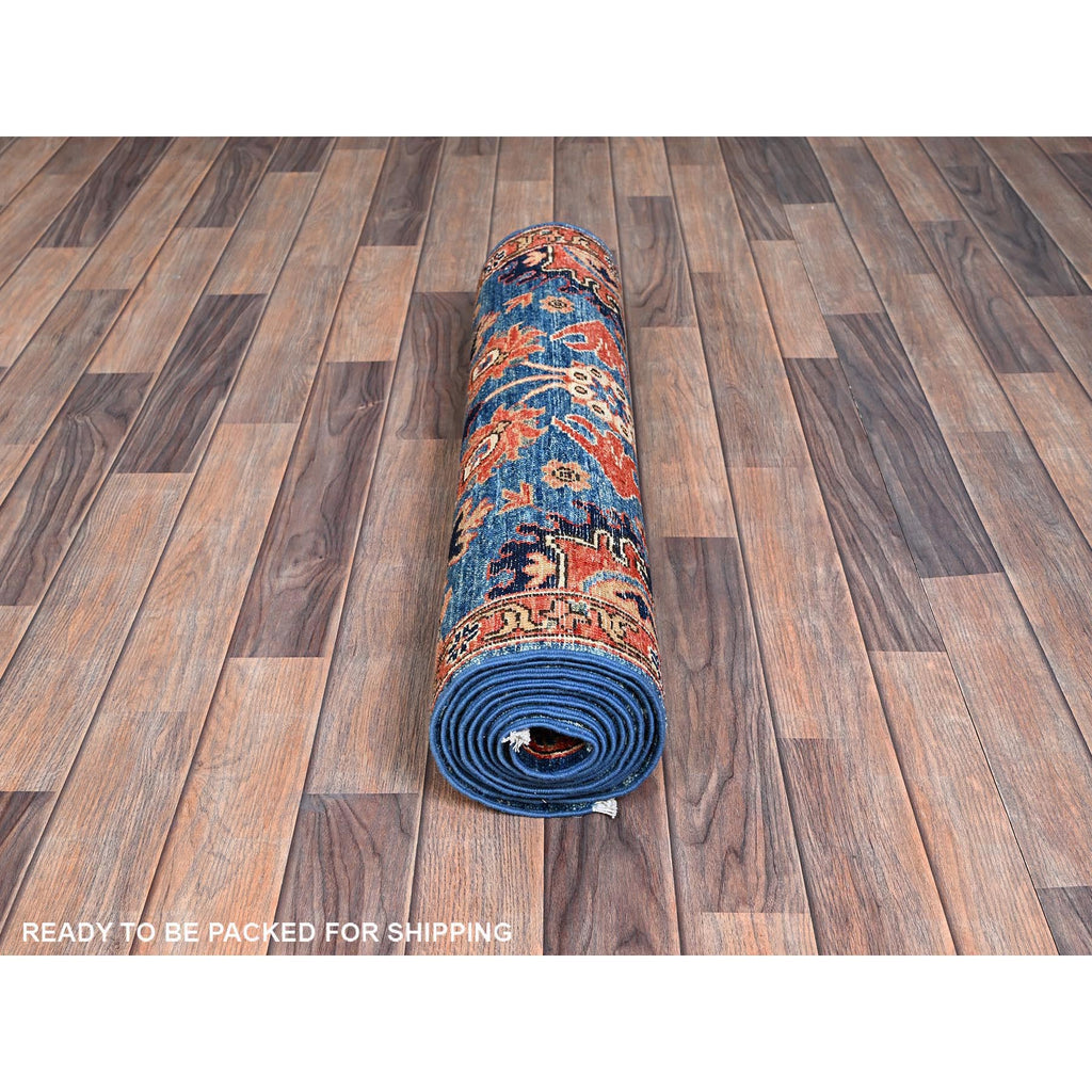 2'10"x9'7" Imperial Blue, Heriz All Over Design, Aryana Collection, Vegetable Dyes, Soft Pile, High Mountain Wool, Hand Knotted, Densely Woven, Runner, Oriental Rug FWR6690