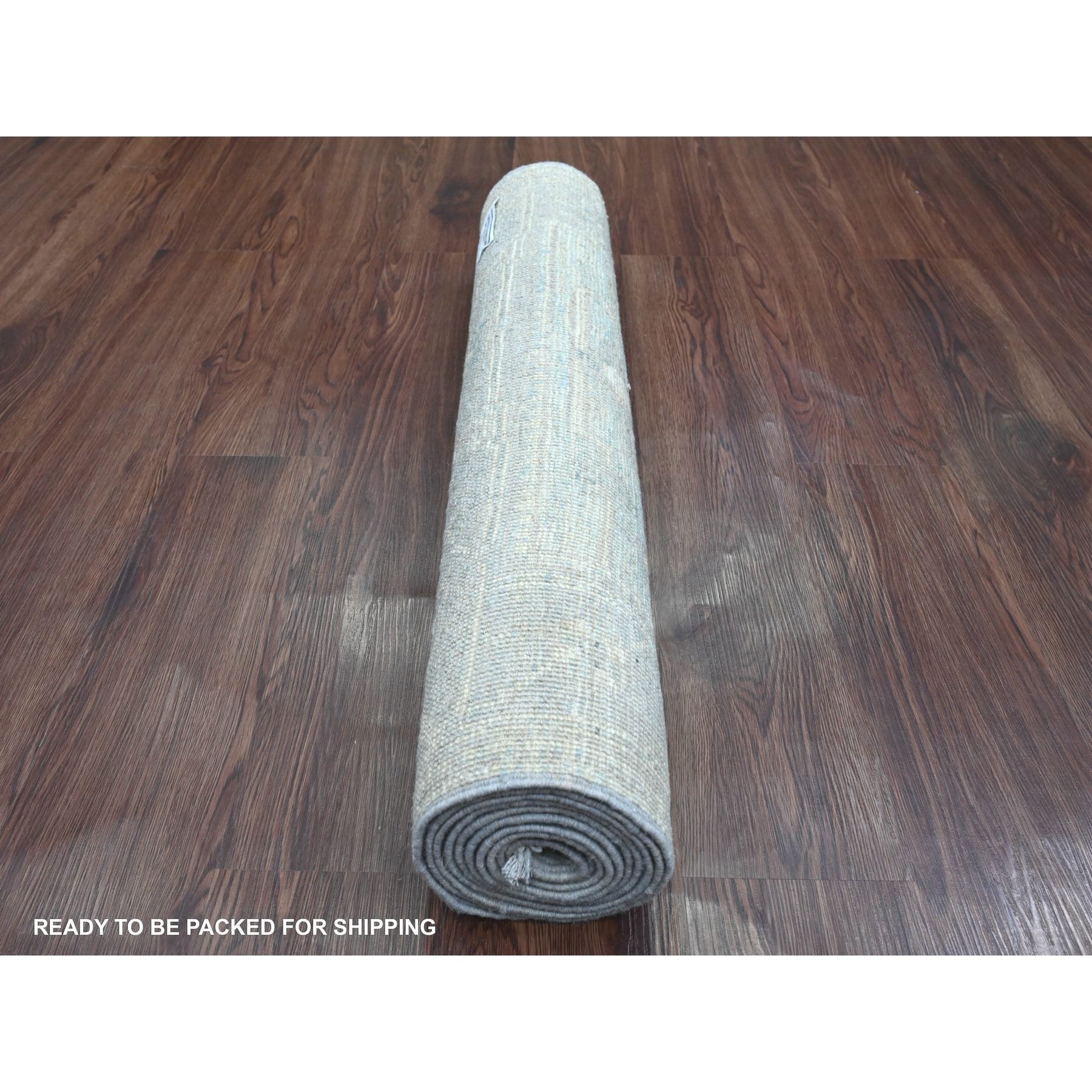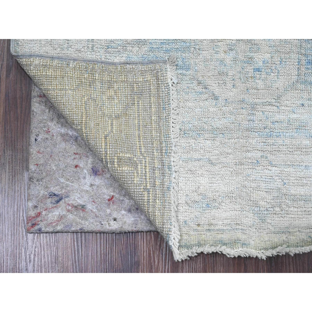 2'10"x9'7" Stone Blue, Afghan Angora Oushak With Leaf Design, Natural Dyes, Pure Wool, Hand Knotted, Runner, Oriental Rug FWR125304