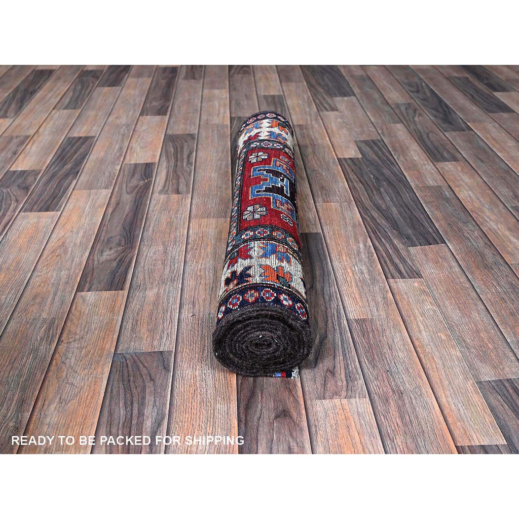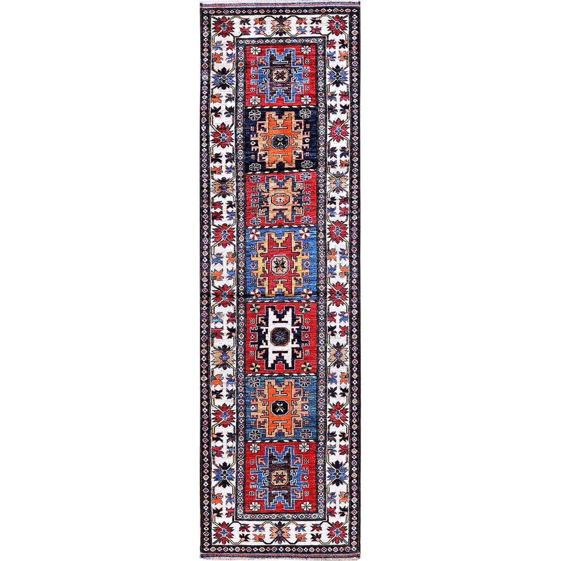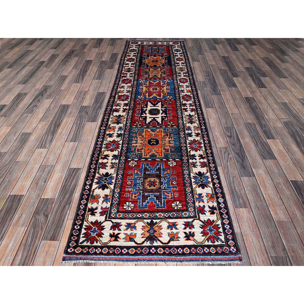 2'10"x9'8" Crimson Red, Colorful Afghan Ersari With Turkish Knot, Caucasian Design Revival, Vegetable Dyes, Hand Knotted, Soft Wool, Densely Woven, Runner, Oriental Rug FWR3708