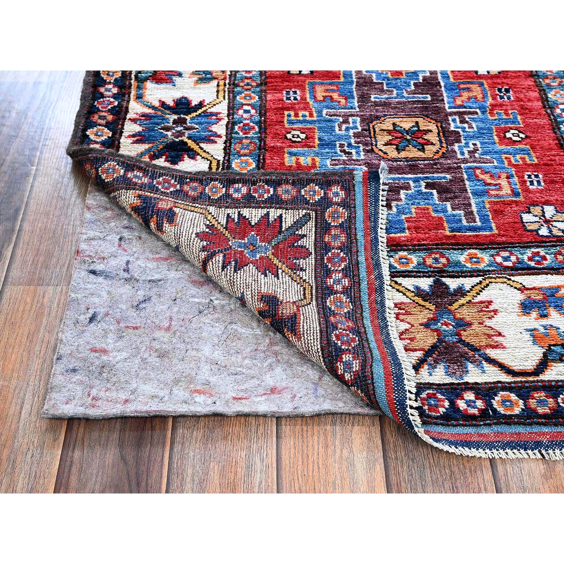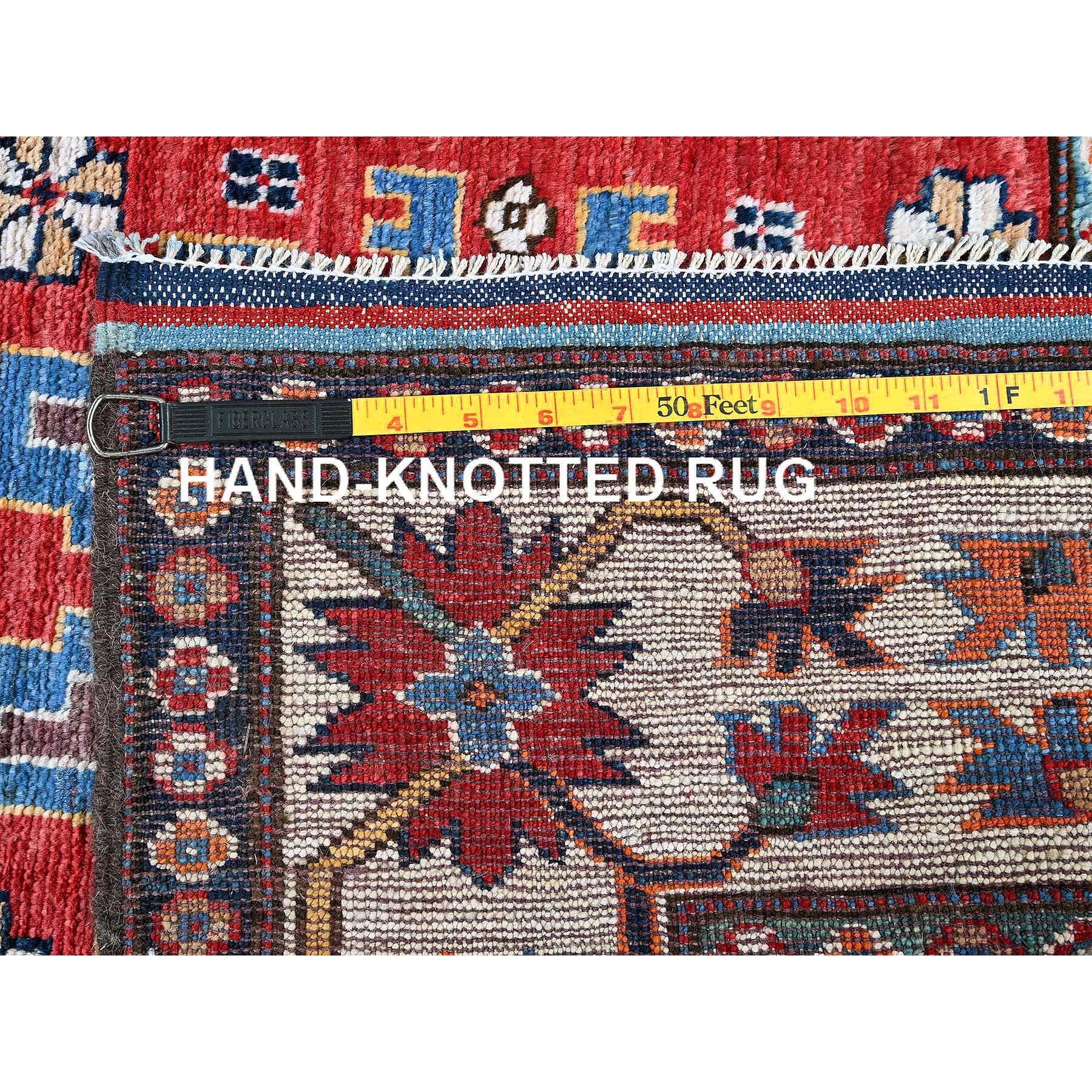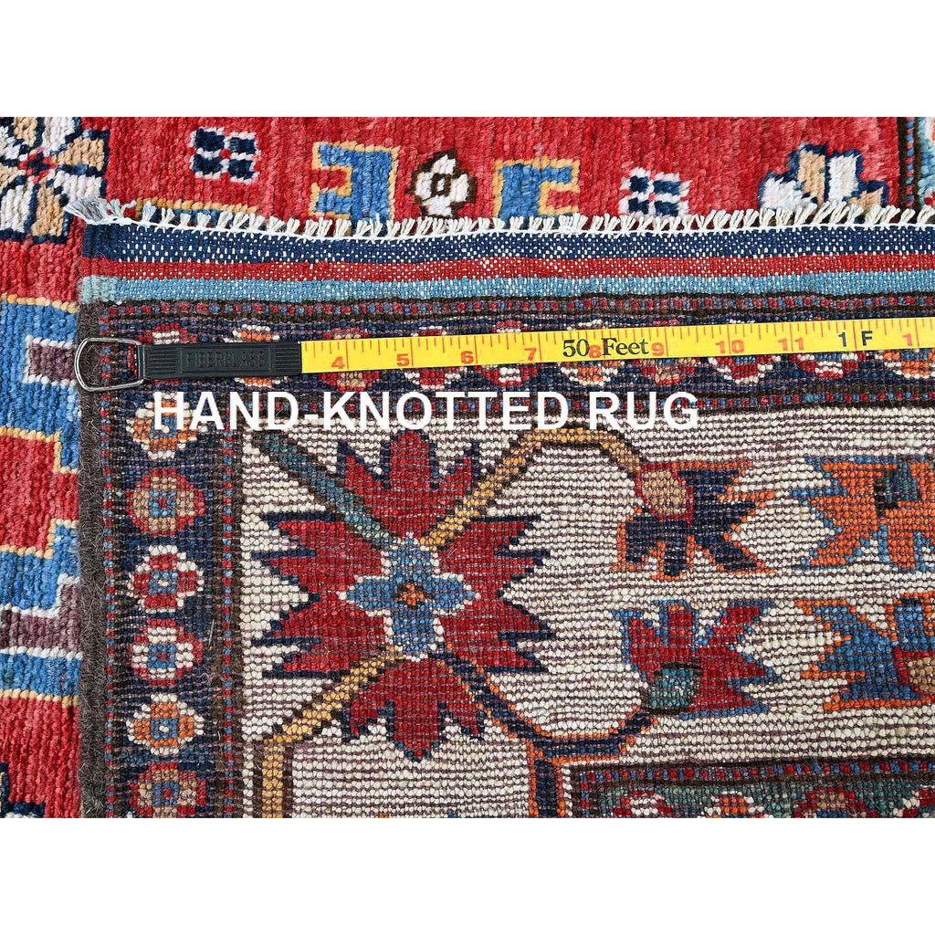 2'10"x9'8" Crimson Red, Colorful Afghan Ersari With Turkish Knot, Caucasian Design Revival, Vegetable Dyes, Hand Knotted, Soft Wool, Densely Woven, Runner, Oriental Rug FWR3708
