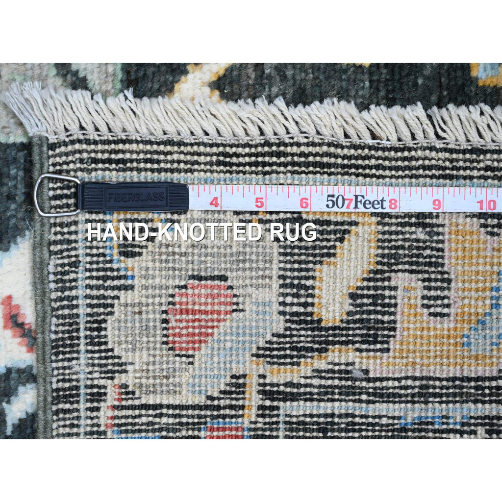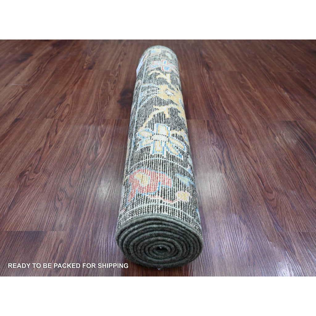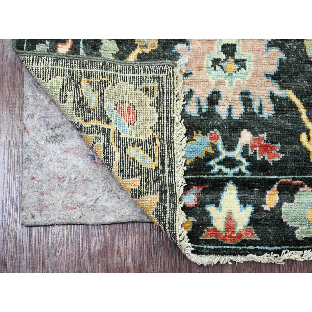 2'10"x9'8" Leather Black, Afghan Angora Oushak With Bold Colors Leaf Design, Hand Knotted, Vegetable Dyes, 100% Wool, Runner, Oriental Rug FWR122868