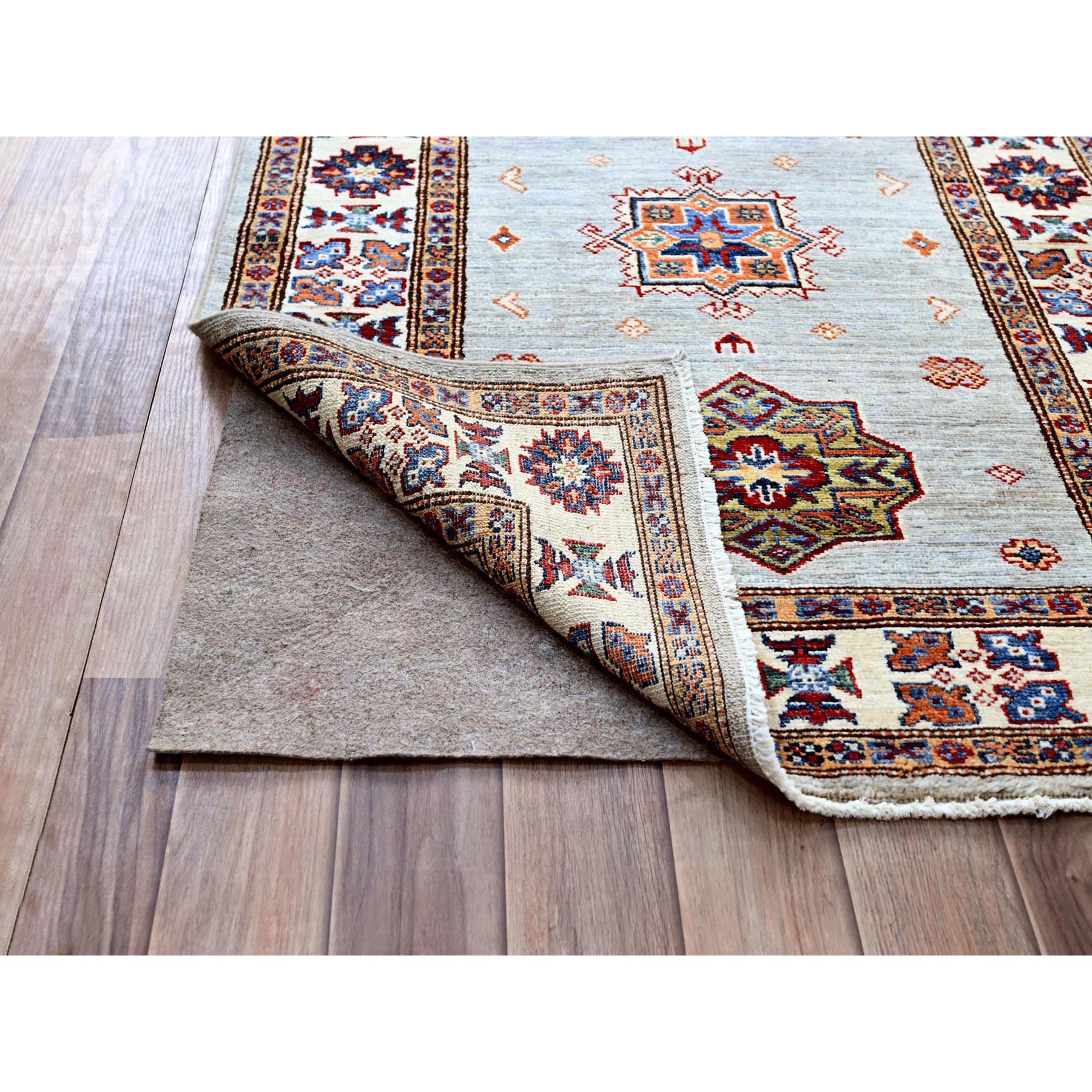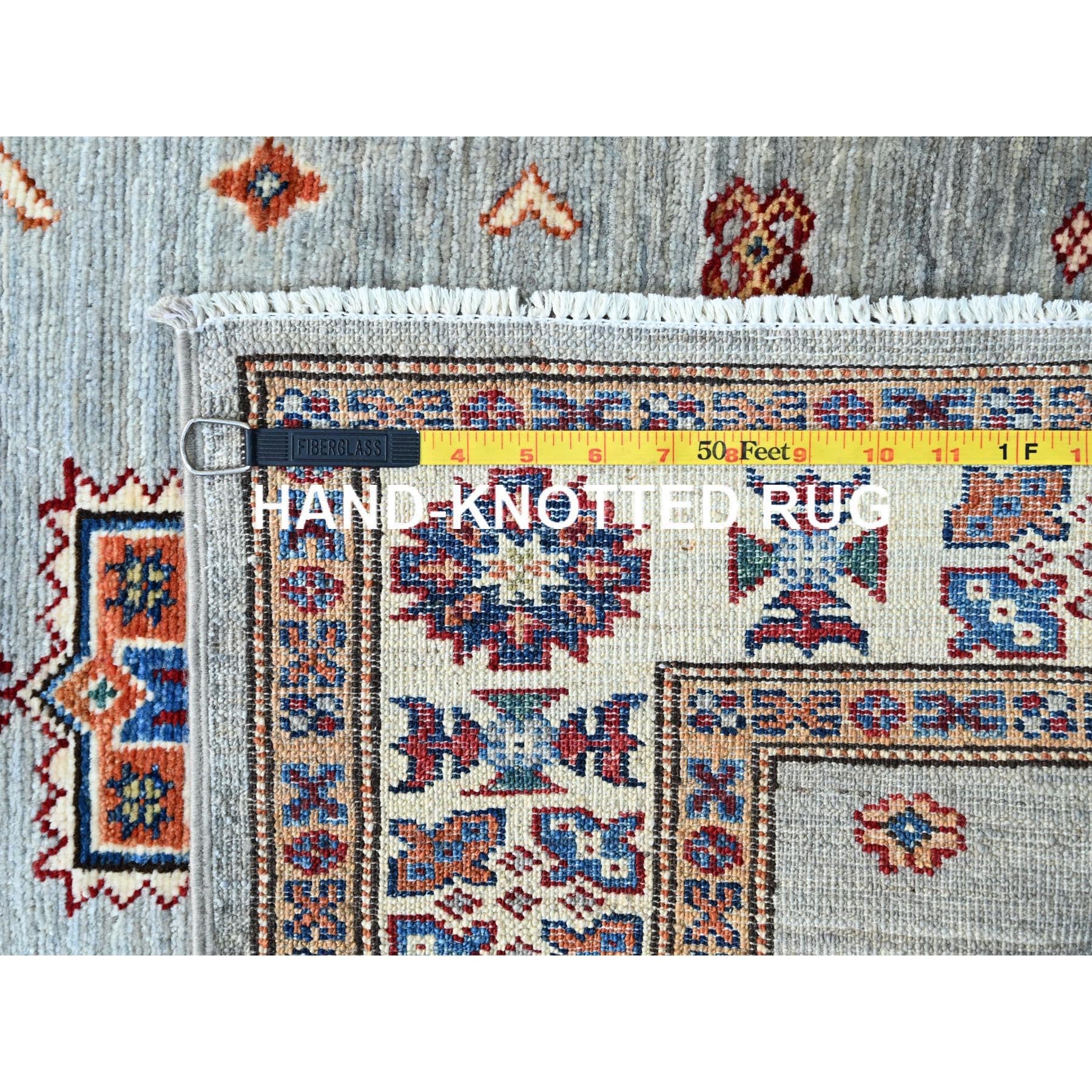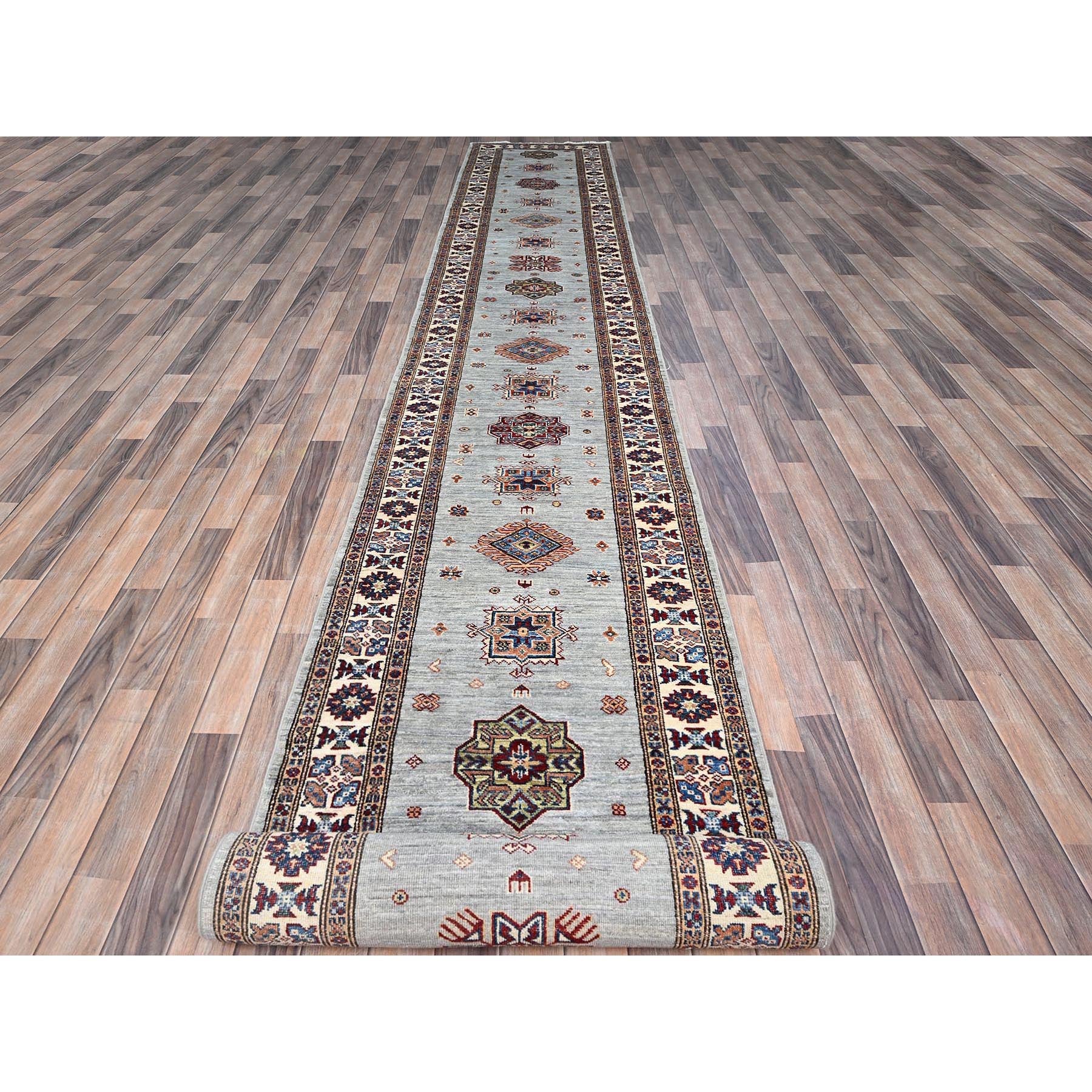 2'11"x22'7" Puritan Gray, Denser Weave, Oversized, Smooth And Shiny Wool, Colorful Tribal Elements All Over, Natural Dyes, Afghan Hand Knotted Super Kazak Oriental Runner Rug FWR756