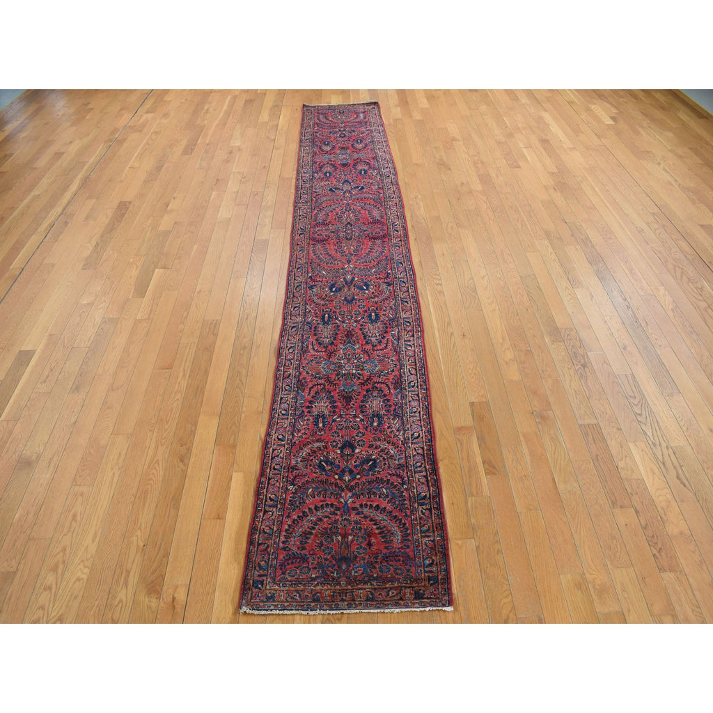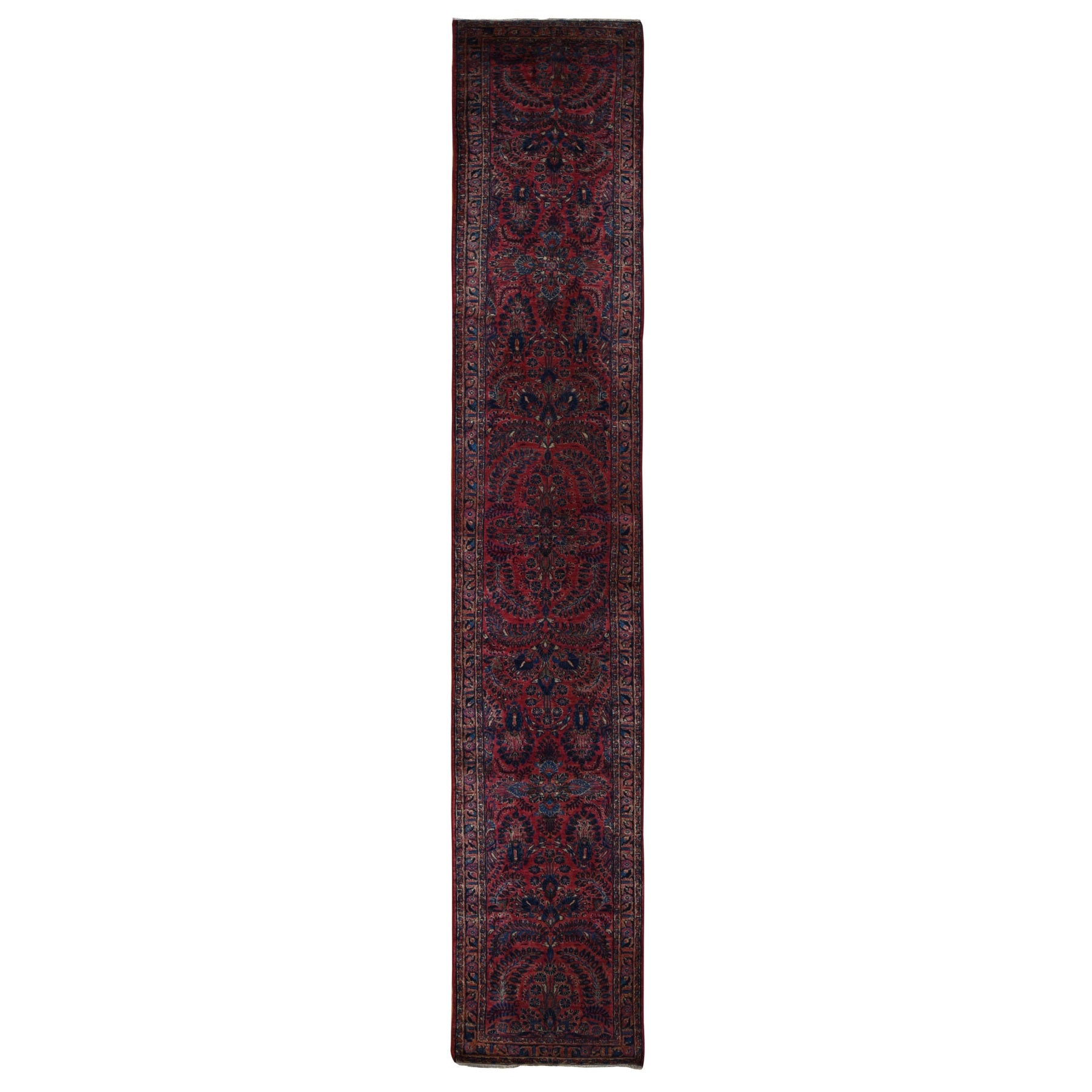 2'2"x13'1" Imperial Red, Antique Persian Sarouk, Even Wear, Hand Knotted, Clean, Pure Wool, Sides And Ends Professionally Secured, Runner Oriental Rug FWR468540
