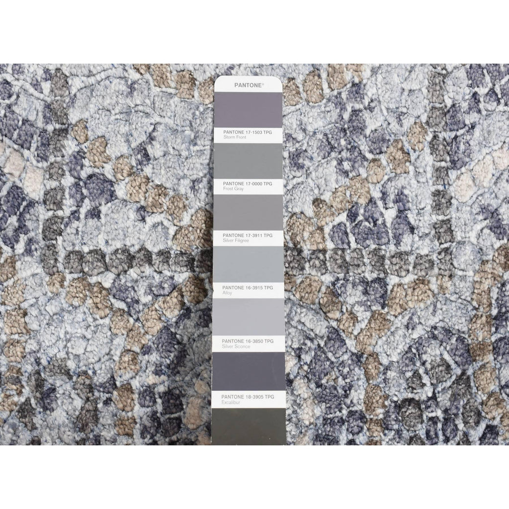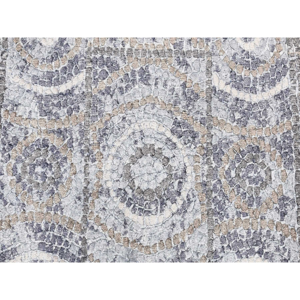 2'2"x2'10" Ash Gray, Silken, Roman Mosaic Design, Hand Knotted, Sample Mat Oriental Rug FWR526668