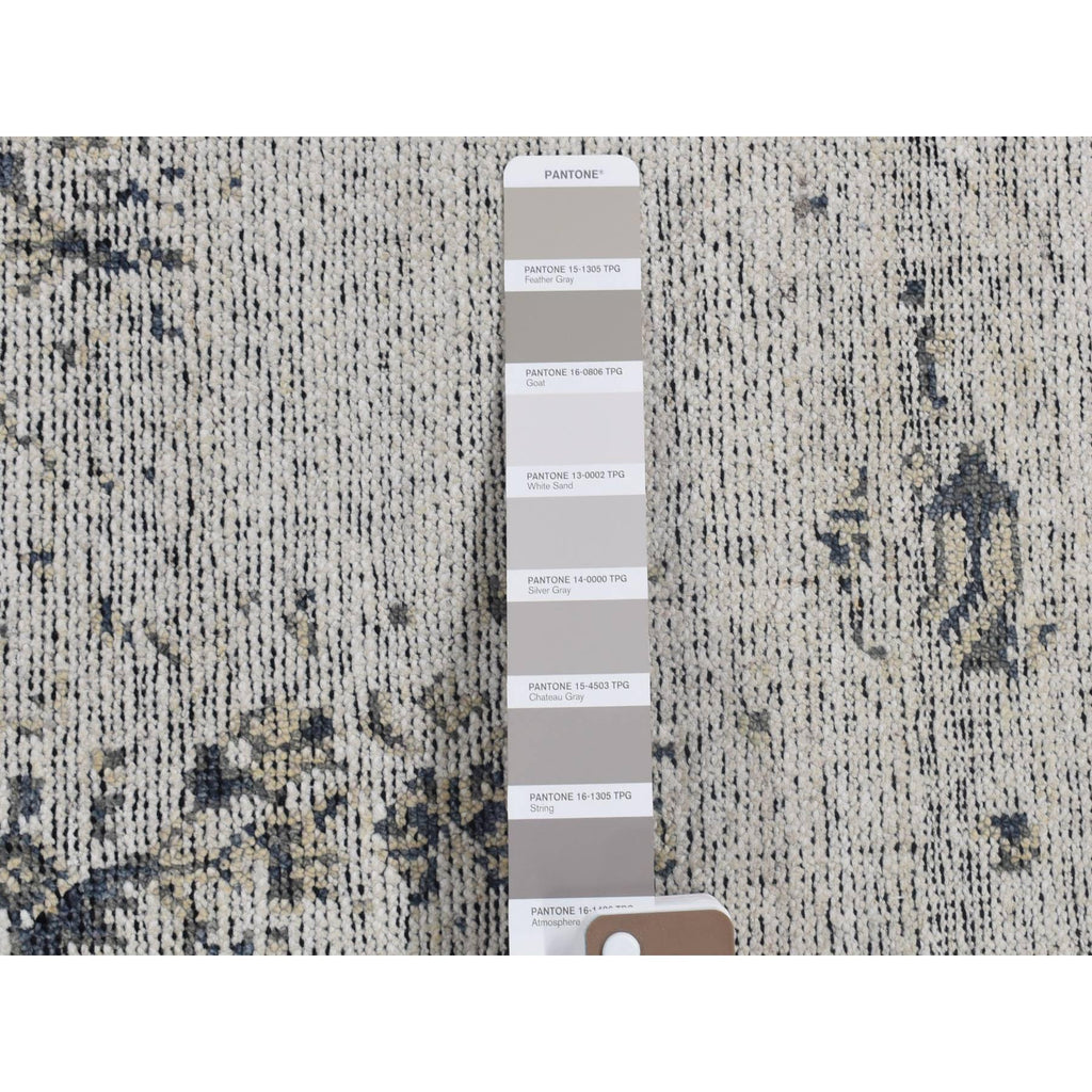 2'2"x2'2" Ivory, Modern Design, Hand Knotted, Hi And Lo, 100% Silk, Zero Pile, Sample Fragment, Mat Oriental Rug FWR482184