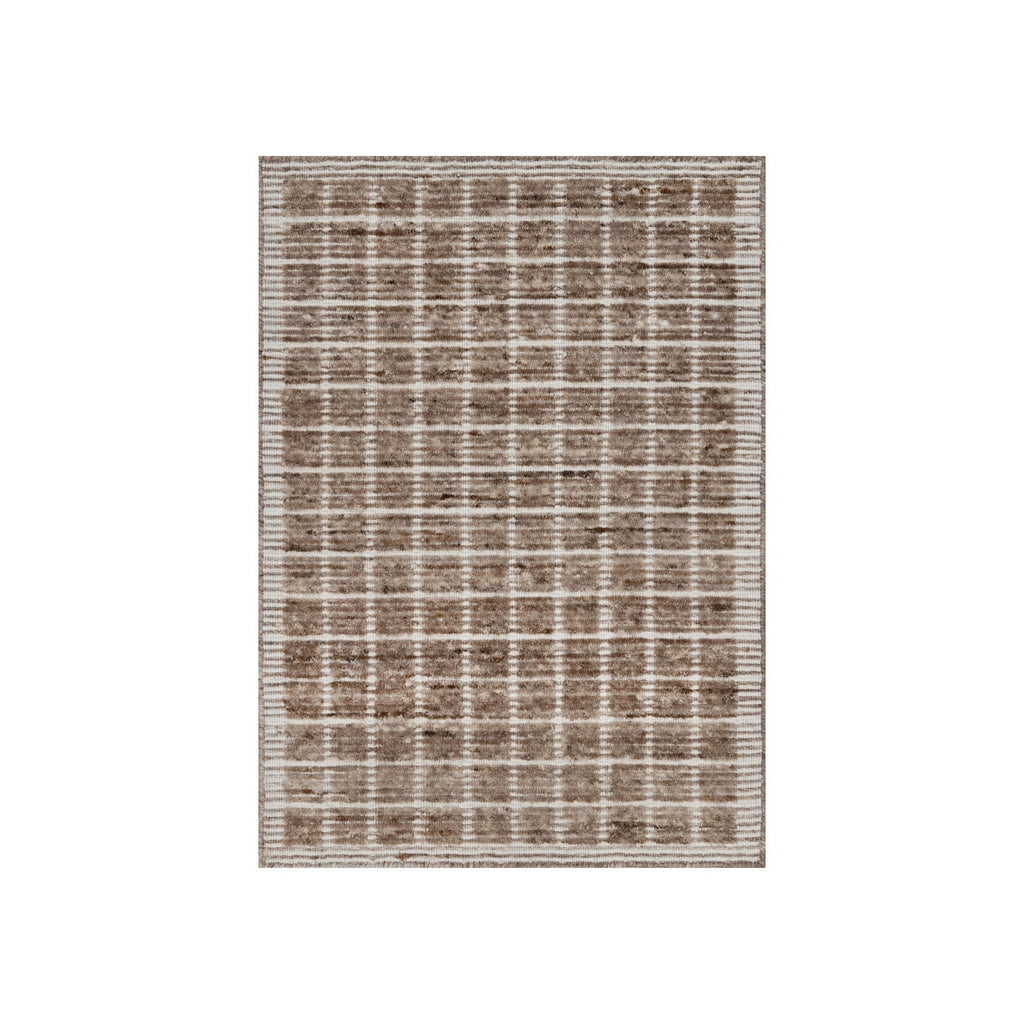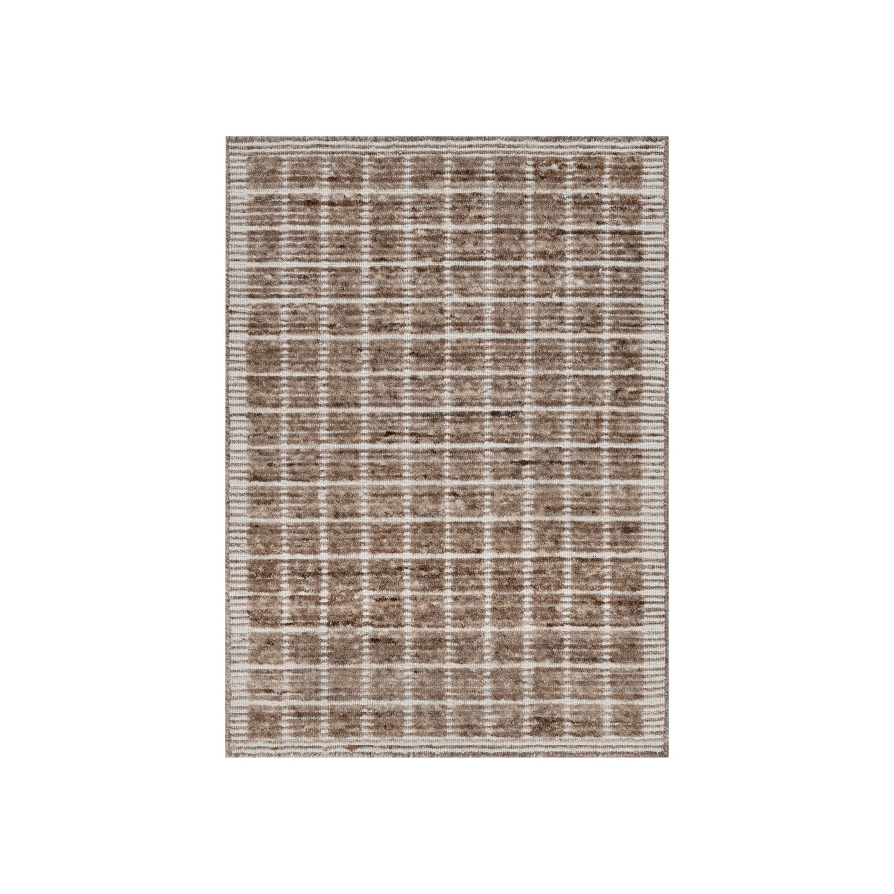2'2"x3'1" Beaver Brown, Modern Plain Decor Box Design, Natural Wool, Soft To The Touch, Loomed Knotted, Mat, Oriental Rug FWR546426