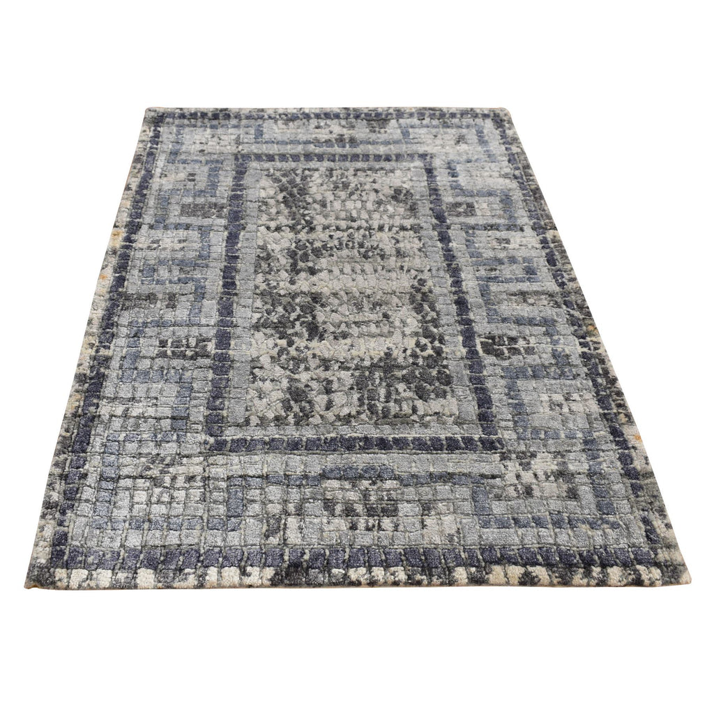 2'2"x3'2" Cloud Gray, Silken, Roman Mosaic Design, Hand Knotted, Sample Oriental Rug FWR526710