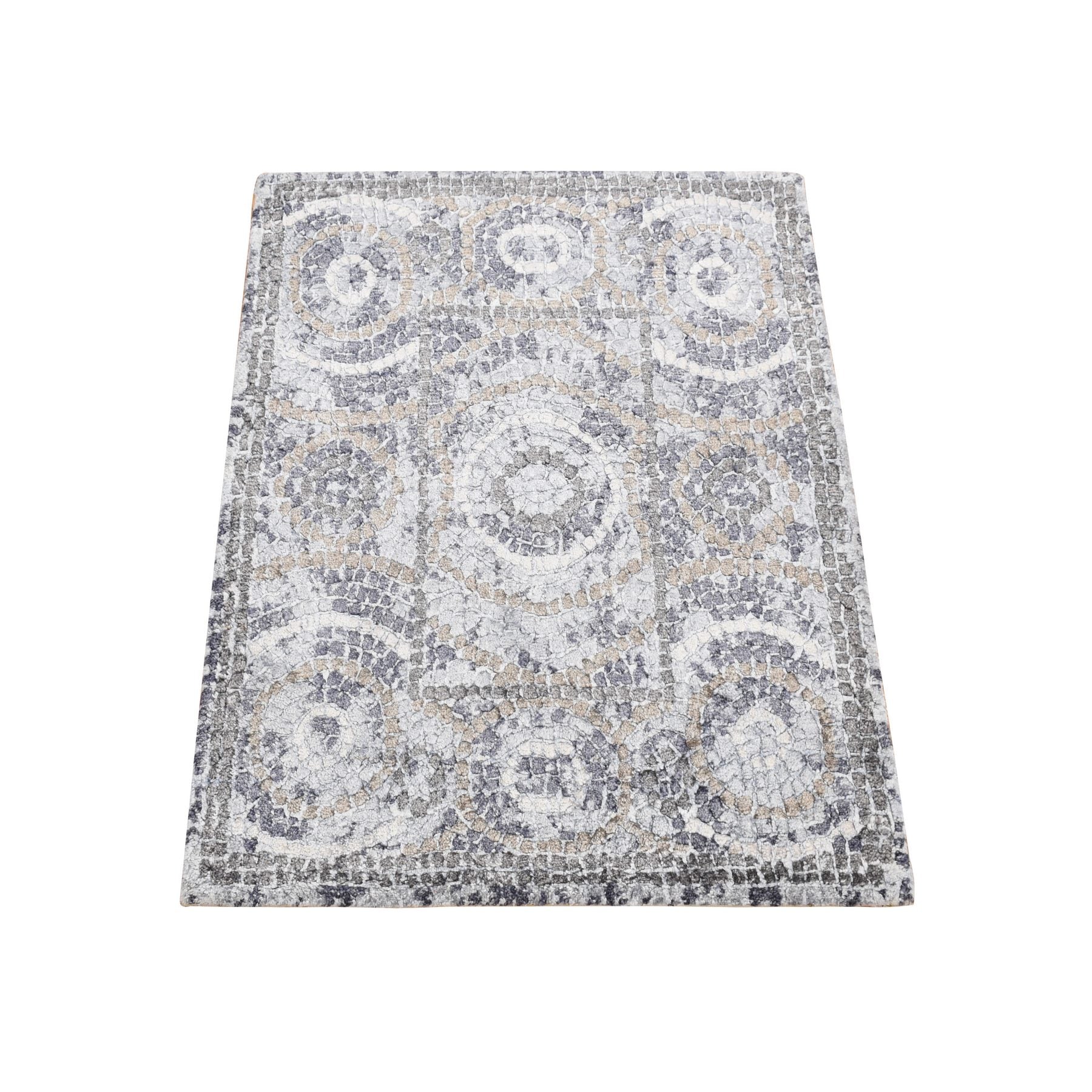 2'2"x3' Ash Gray, Silken, Roman Mosaic Design, Hand Knotted, Sample Mat Oriental Rug FWR526866