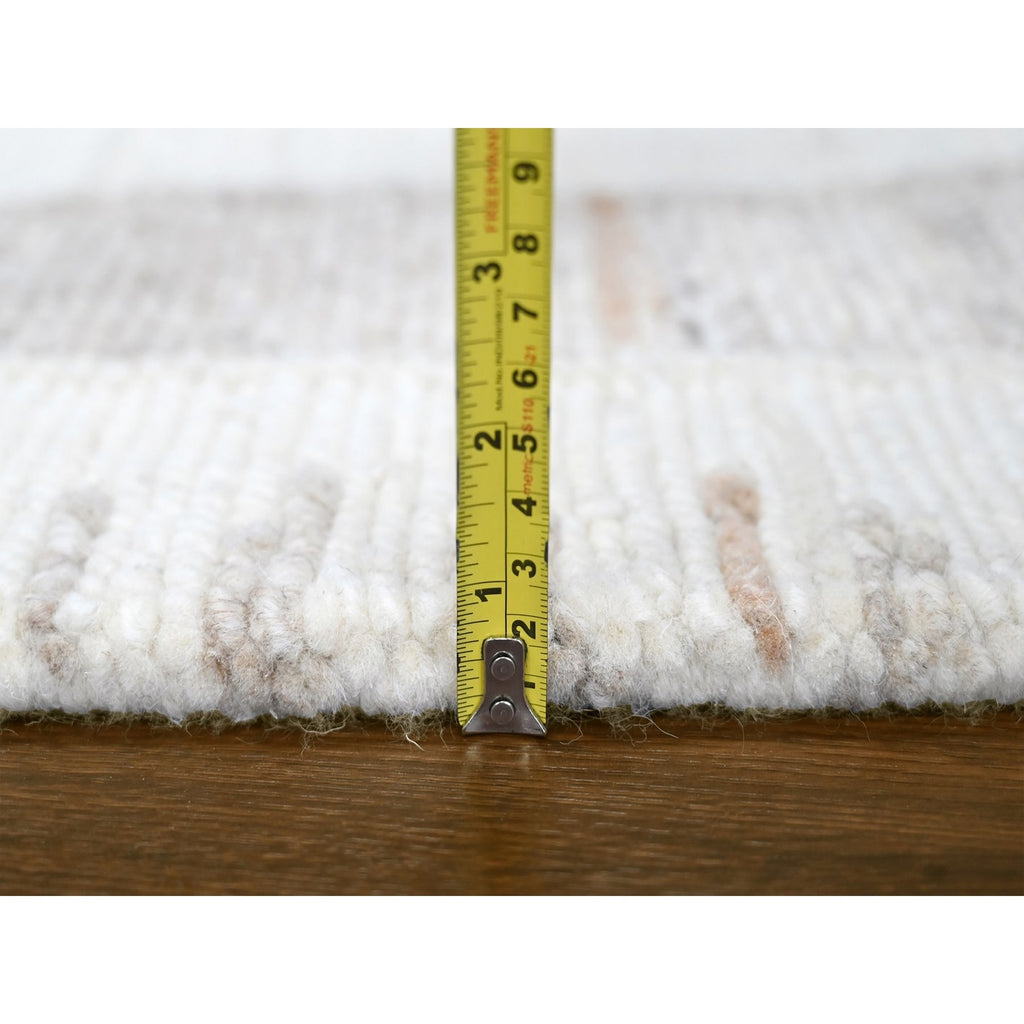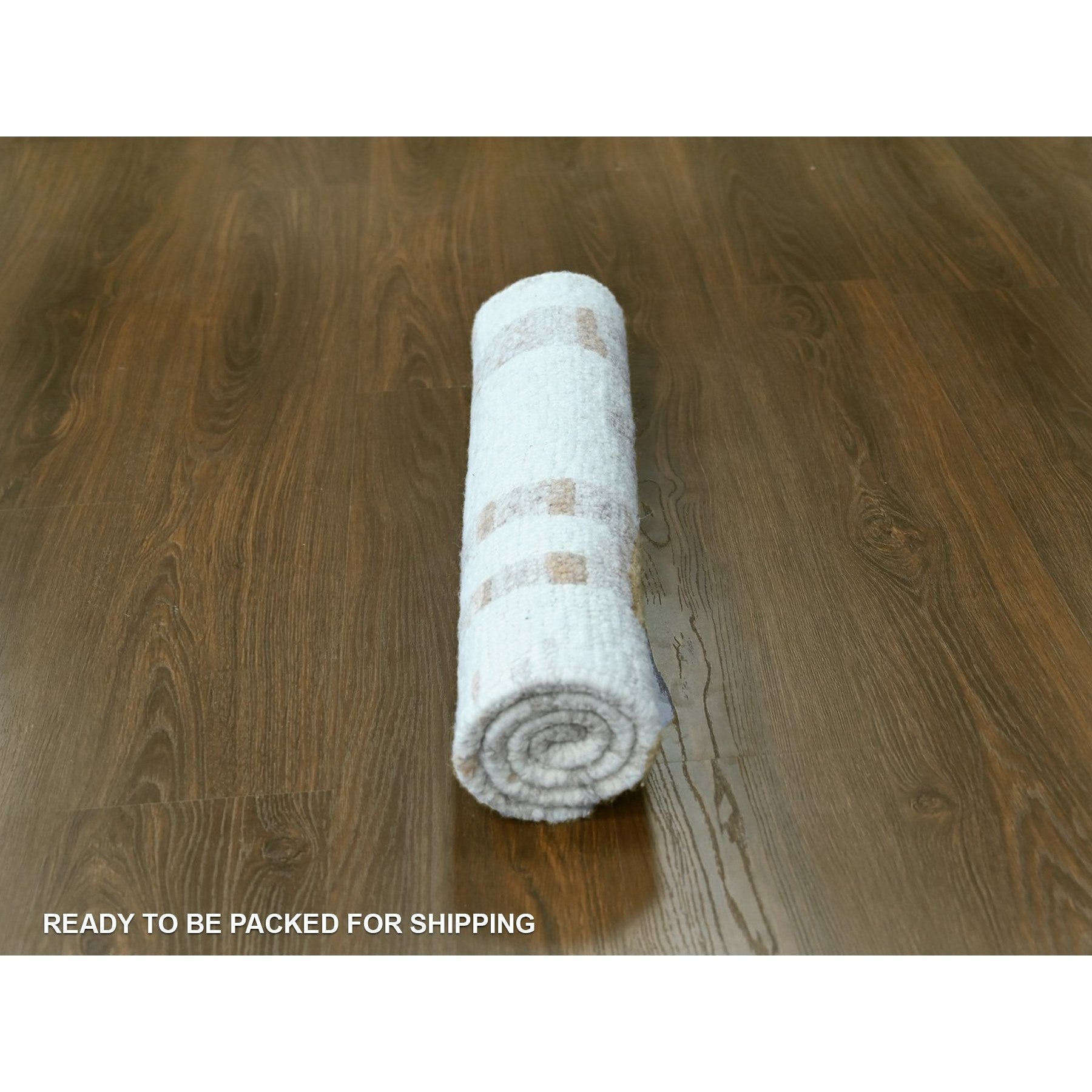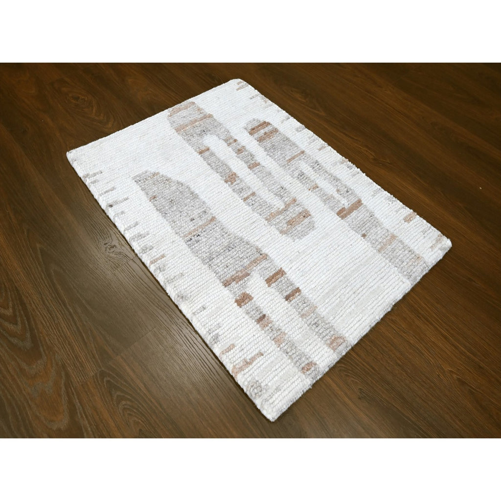 2'2"x3' Bone White, Minimalist Swedish Design, Hand Knotted, Organic Wool, Mat, Sample, Oriental Rug FWR62052