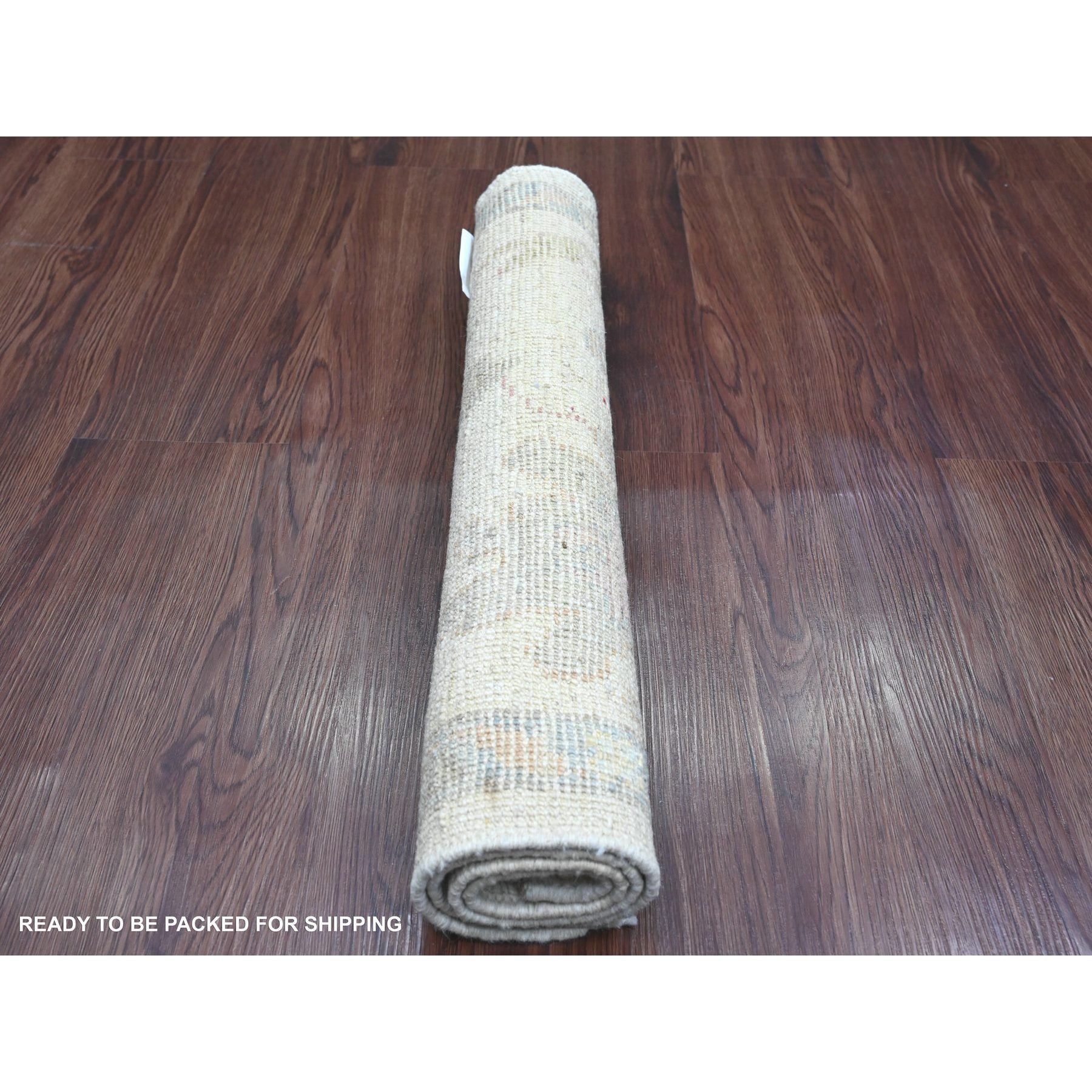 2'2"x3' Pearl White, Hand Knotted, Afghan Angora Oushak With Colorful Leaf Pattern, Vegetable Dyes, Pure Wool, Mat, Oriental Rug FWR124626
