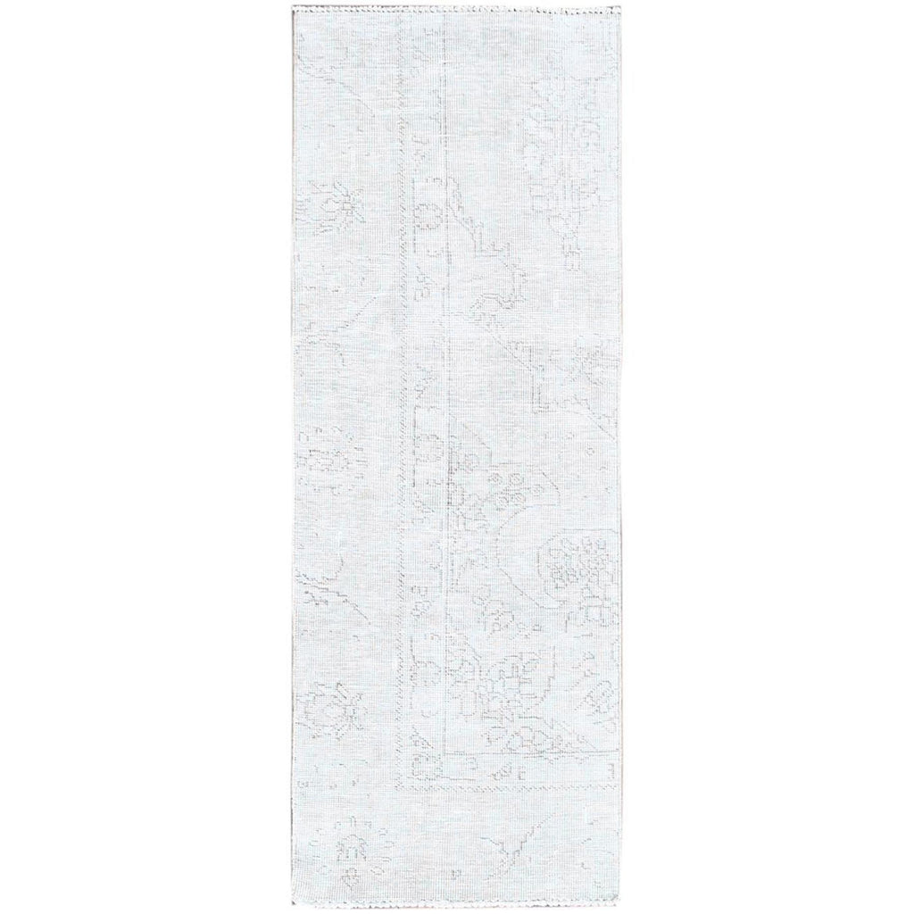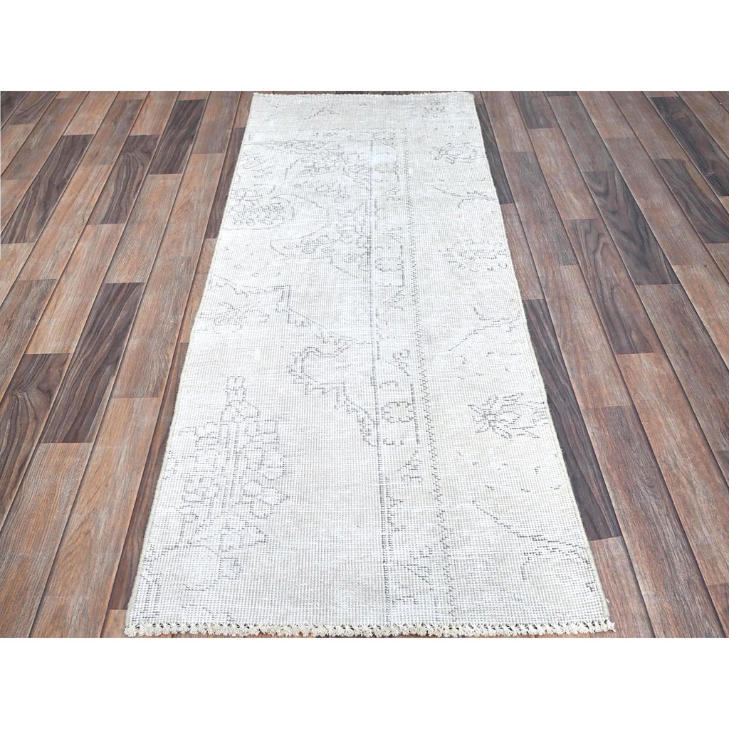 2'2"x5'10" Smoke White, Fagment, Cropped Thin, Hand Knotted, Ends And Sides Secured Professionally, Evenly Worn With No Holes, White Washed, All Natural Wool, Vintage Persian Tabriz, Runner Oriental Rug FWR1368