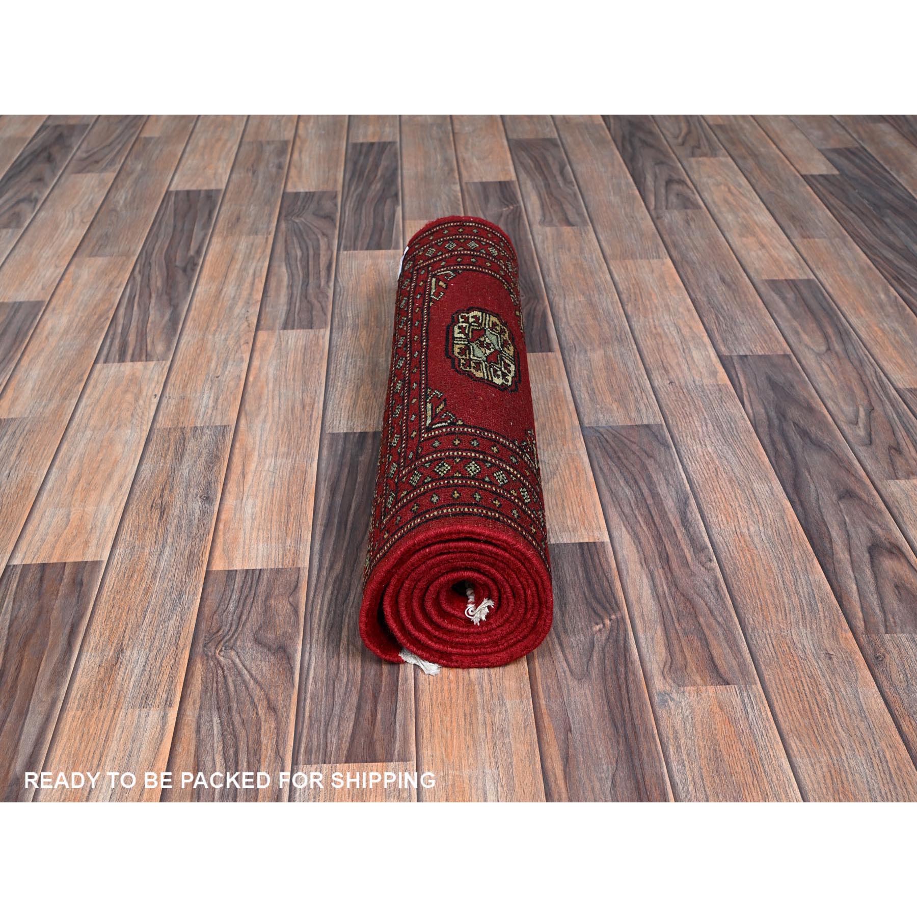 2'2"x5'8" Arsenal Red, Princess Bokara With Geometric Medallions, Hand Knotted, Vegetable Dyes, Soft And Vibrant Wool, Short & Narrow Runner, Oriental Rug FWR7776
