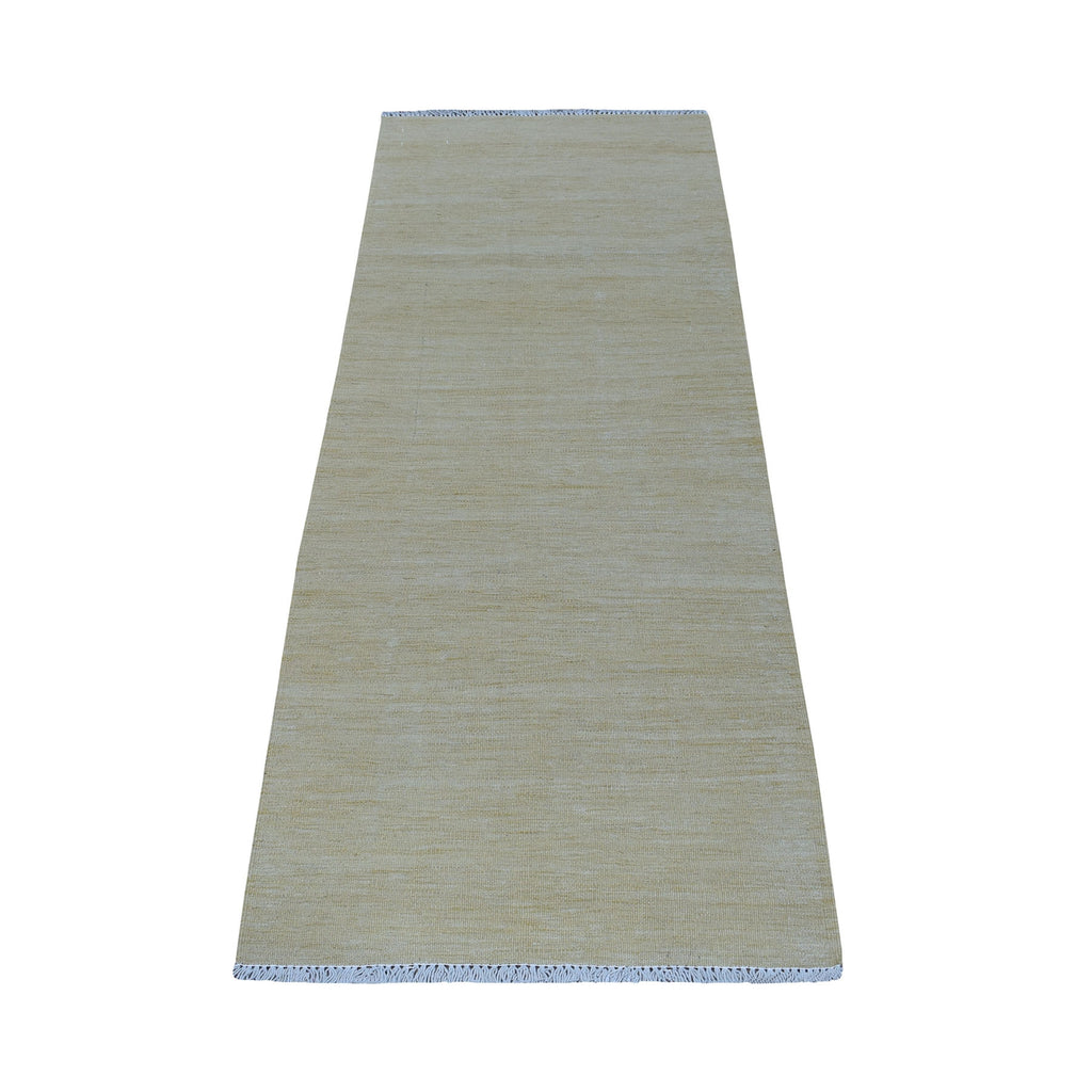 2'2"x6'2" Beige Shades Flat Weave Kilim Pure Wool Hand Woven Runner Rug FWR323160
