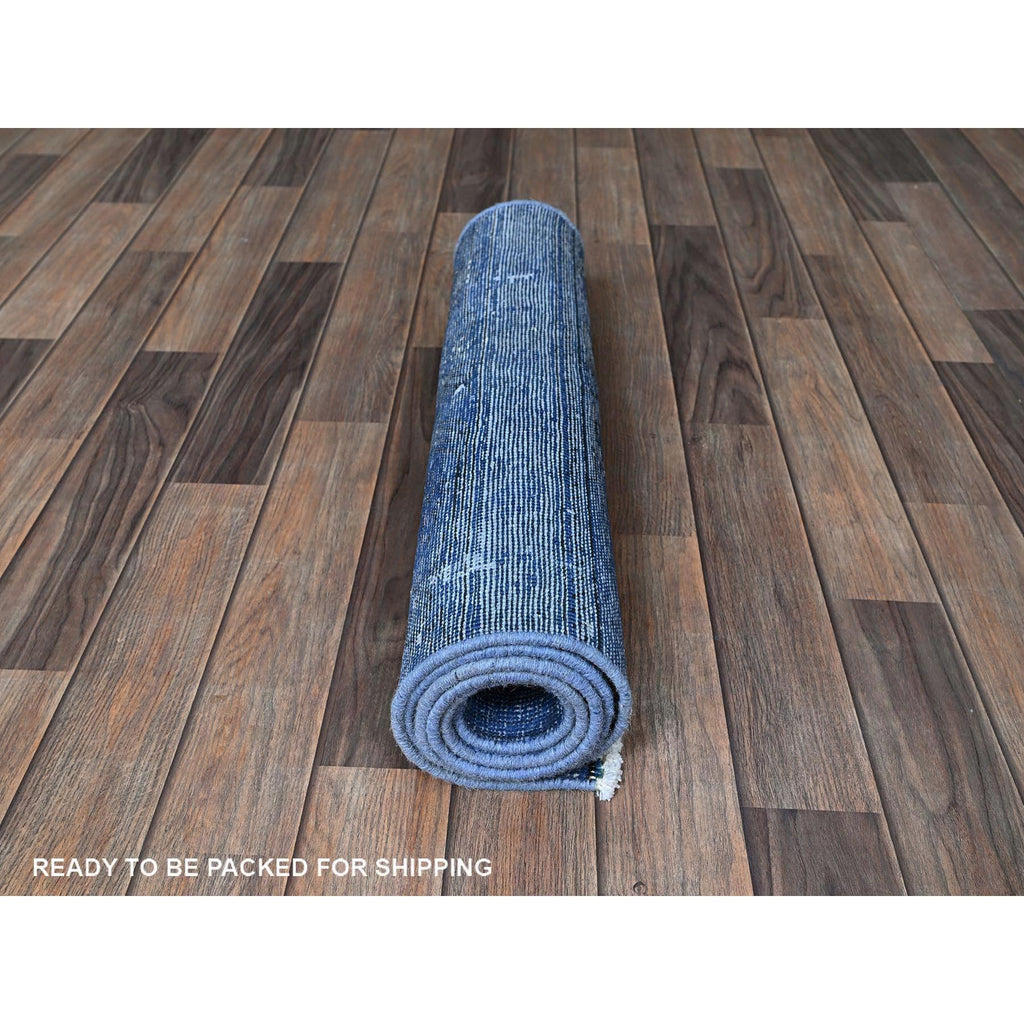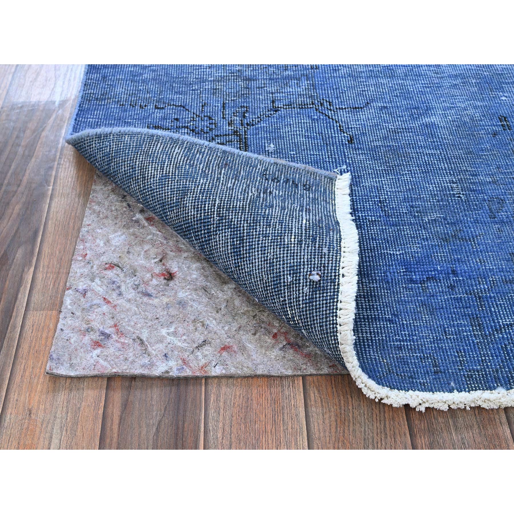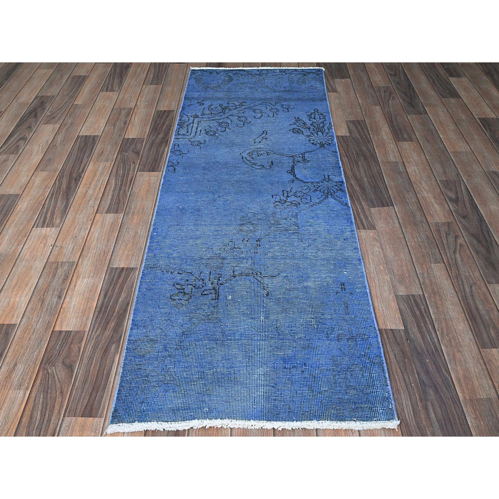 2'2"x6'2" Carolina Blue, Overdyed Vintage Persian Tabriz, Worn And Distressed, Sides And Ends Professionally Secured, Shaved Low, Hand Knotted, 100% Wool, Fragment, Narrow Runner, Oriental Rug FWR5658
