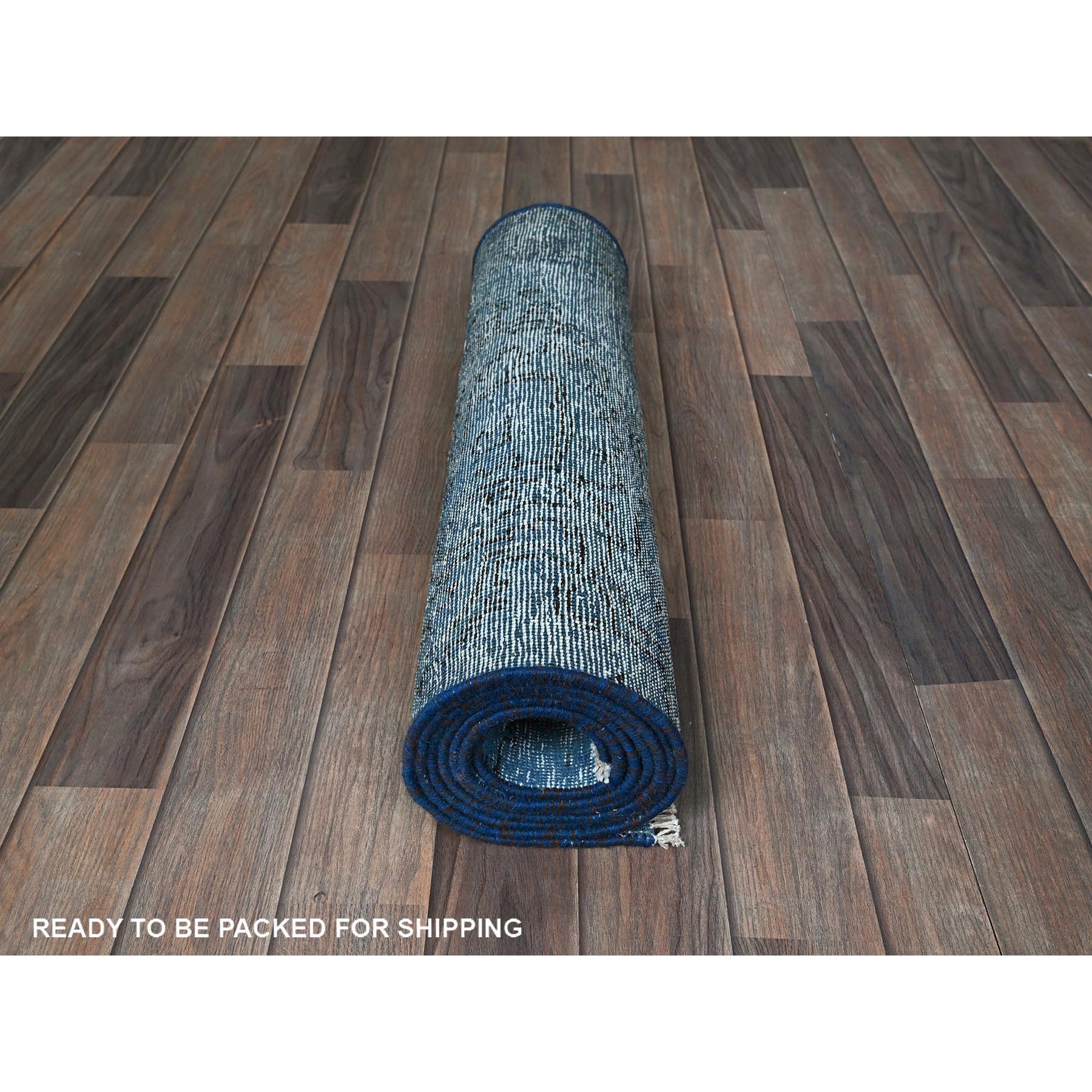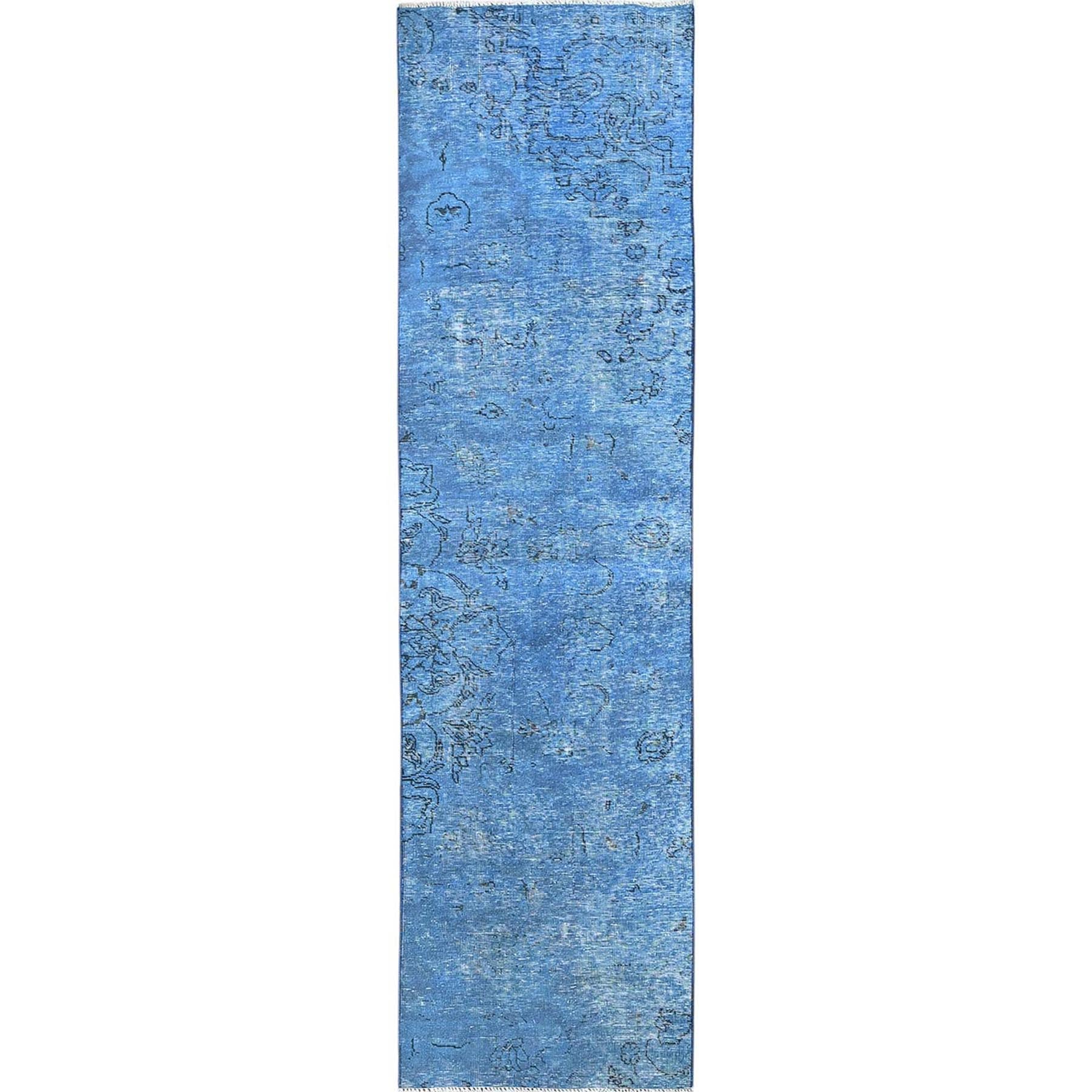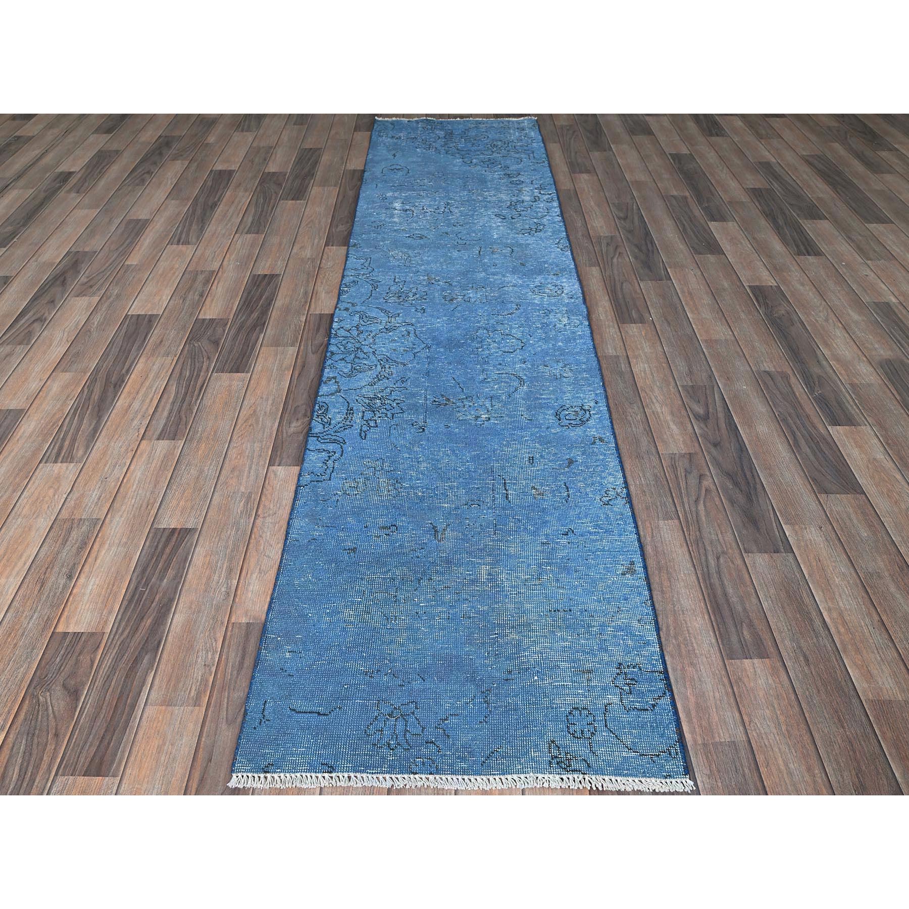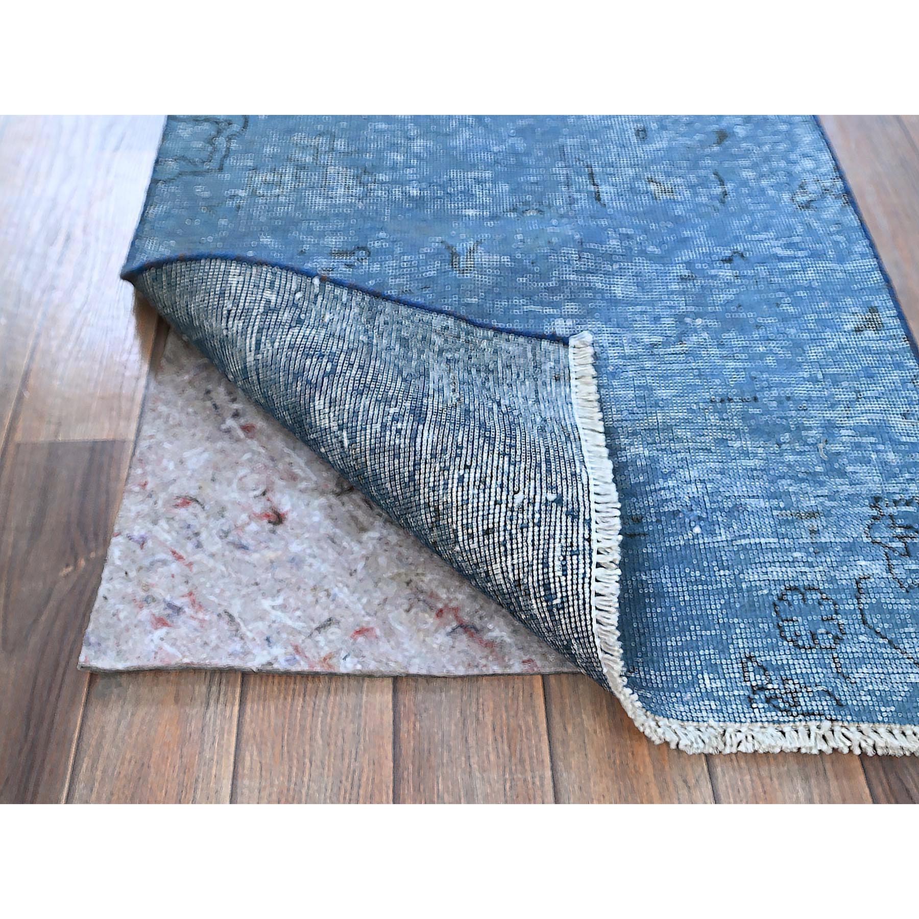 2'2"x9' Bayern Blue, Overdyed Vintage Persian Tabriz, Worn And Distressed, Sides And Ends Professionally Secured, Cropped Thin, Hand Knotted, 100% Wool, Fragment, Narrow Runner, Oriental Rug FWR5640