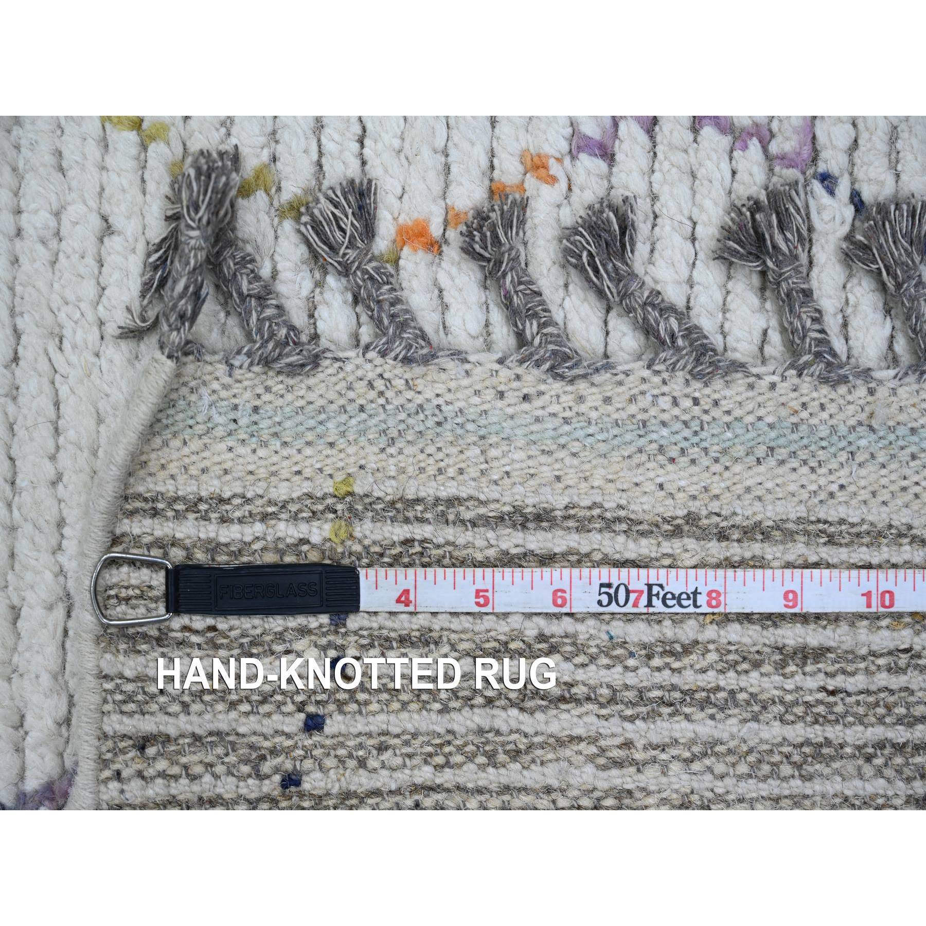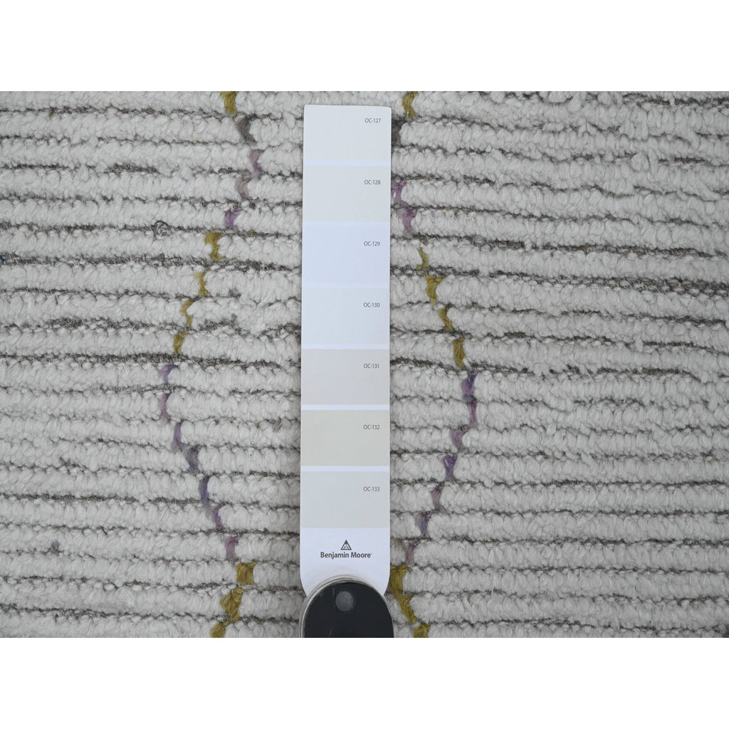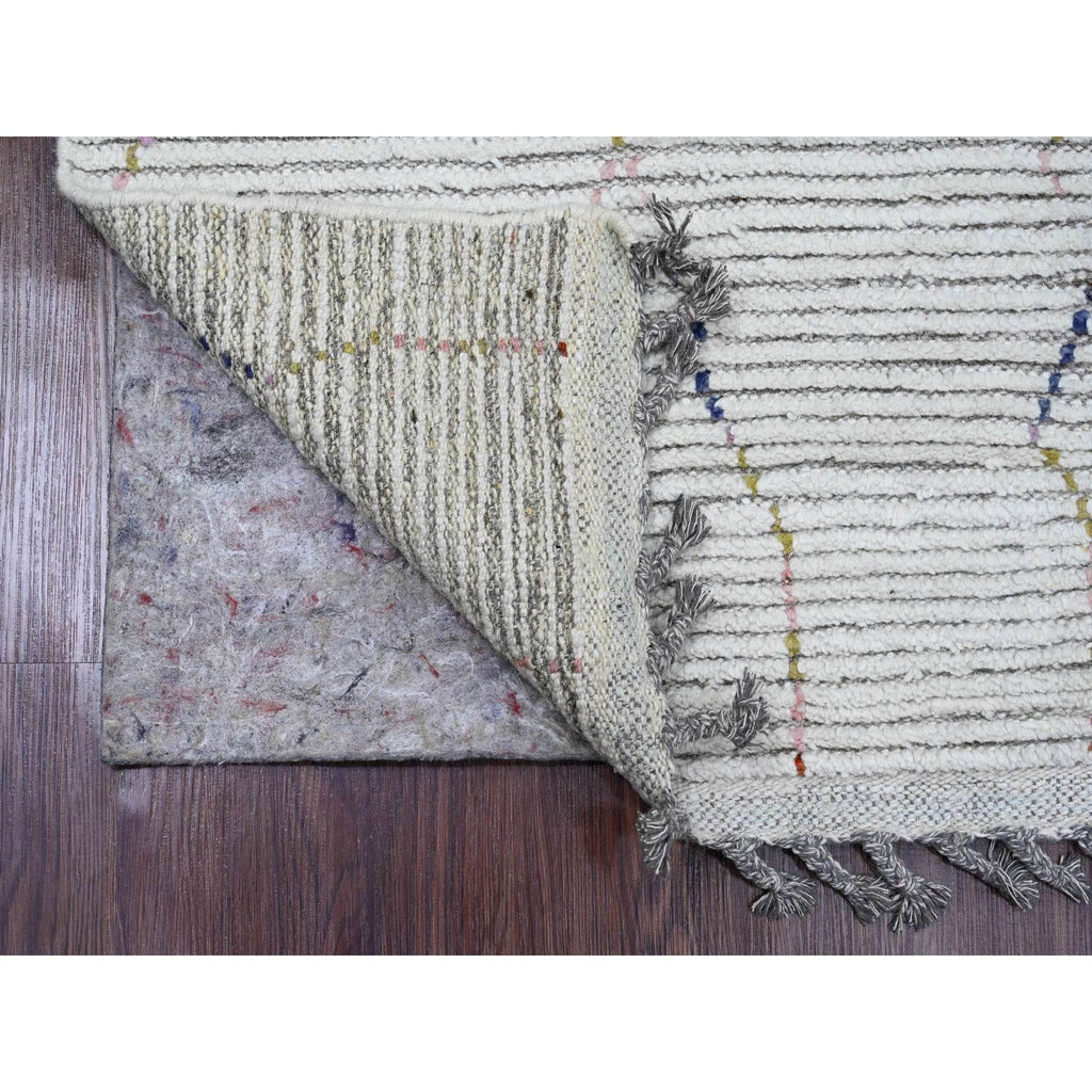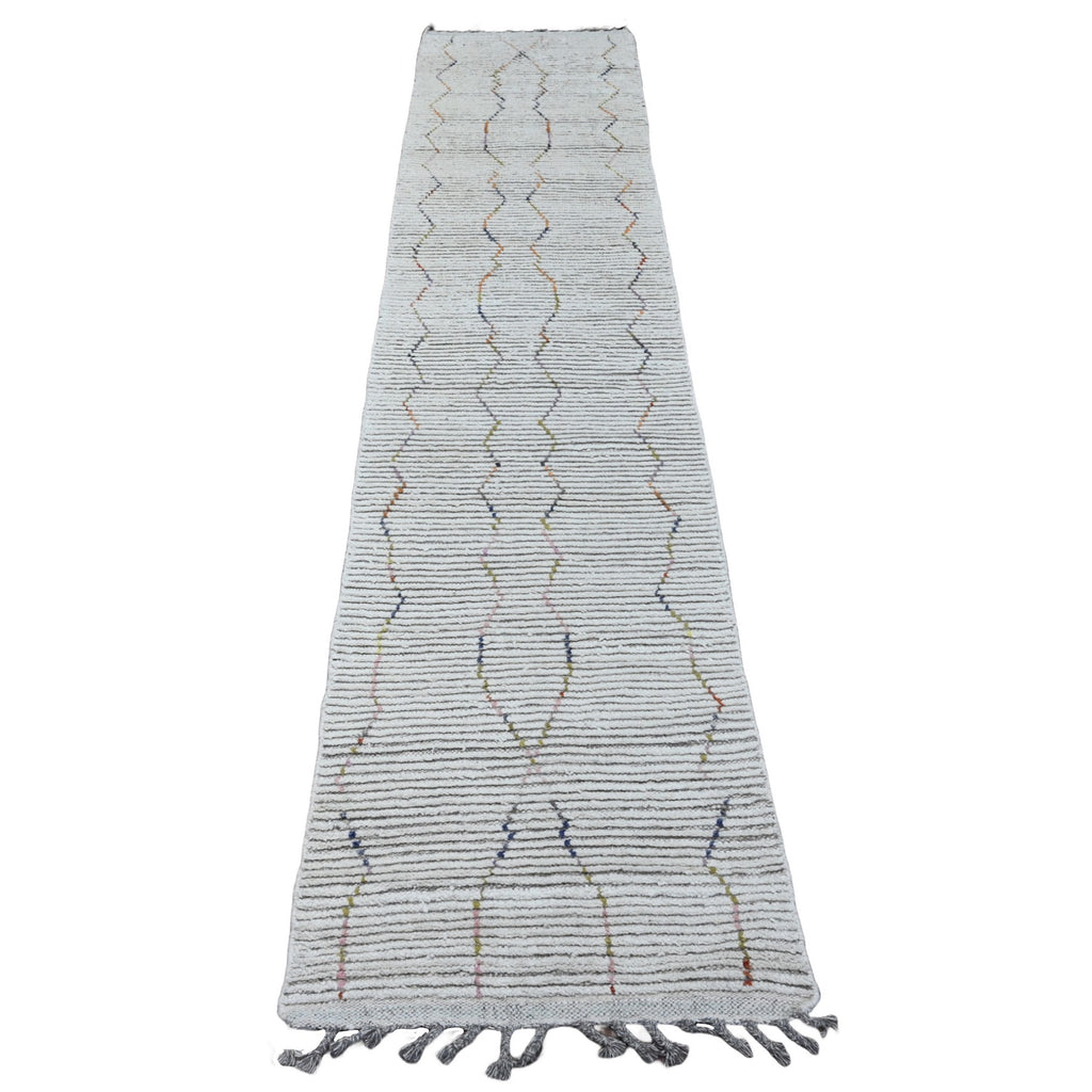 2'3"x10'5" Chiffon White, Moroccan Weave With Zigzag Line Design, Soft Wool, Hand Knotted, Textured Pile, Runner, Oriental Rug FWR121650
