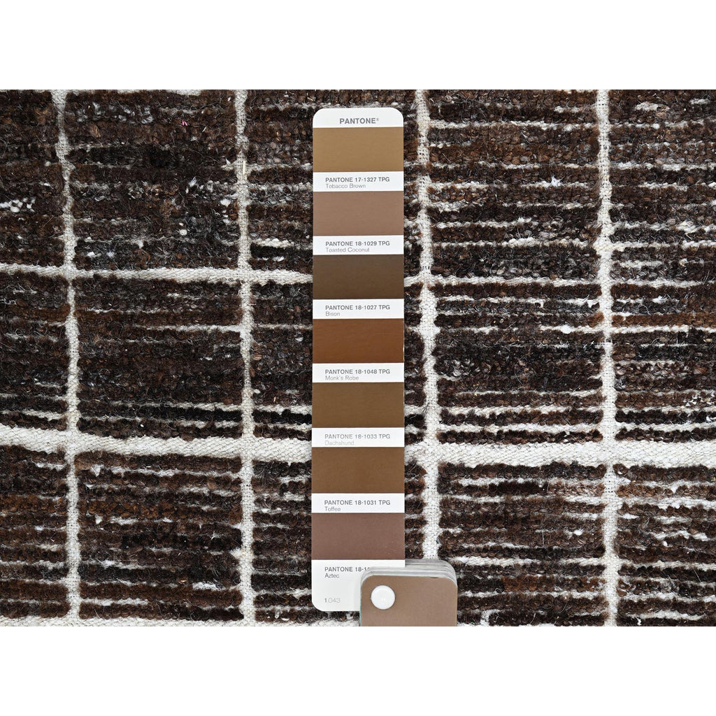 2'3"x2'8" Chocolate Brown, Moroccan Weave With Grid Design, Textured Pile, Tone On Tone, Undyed Natural Wool, Hand Knotted, Sample, Mat, Oriental Rug FWR8346