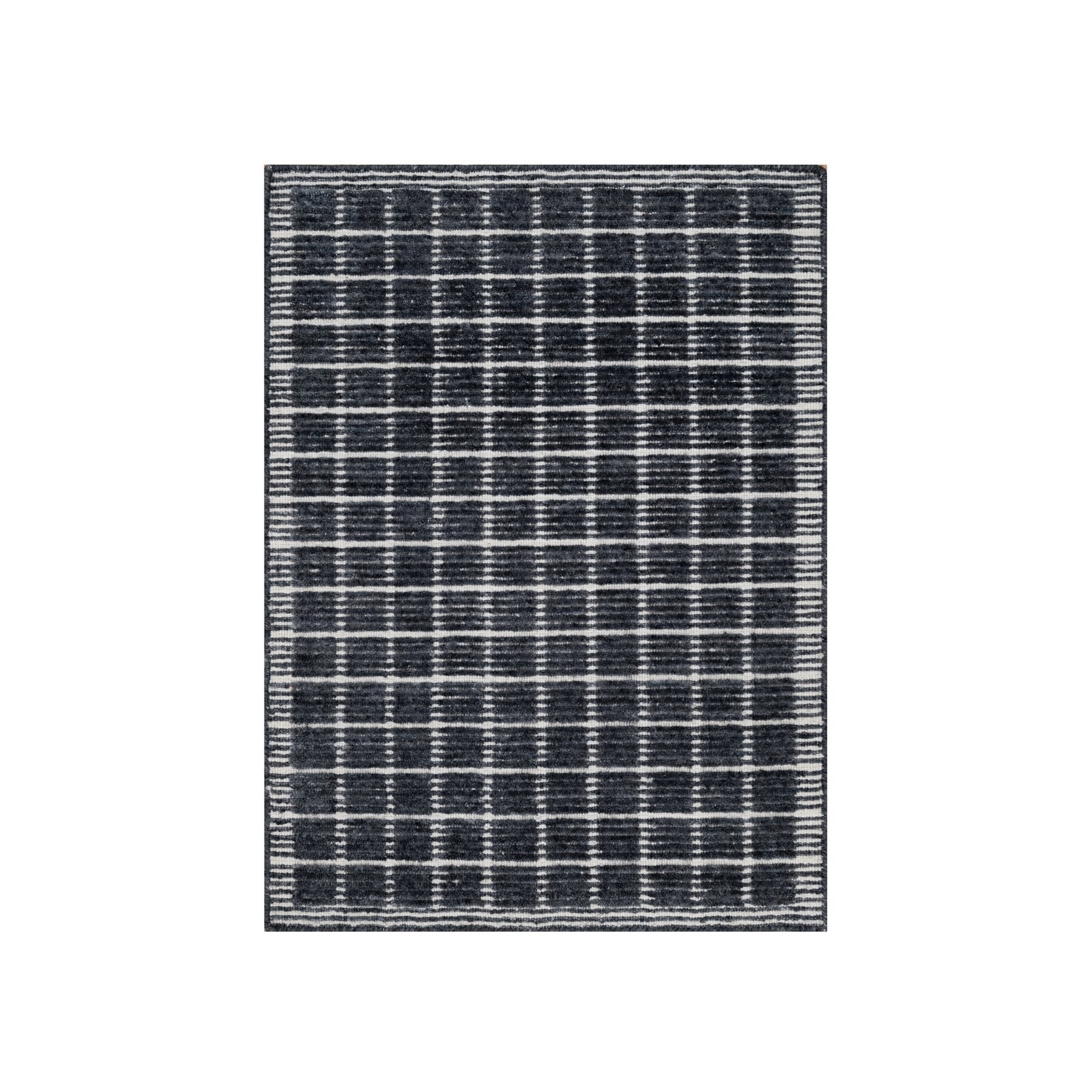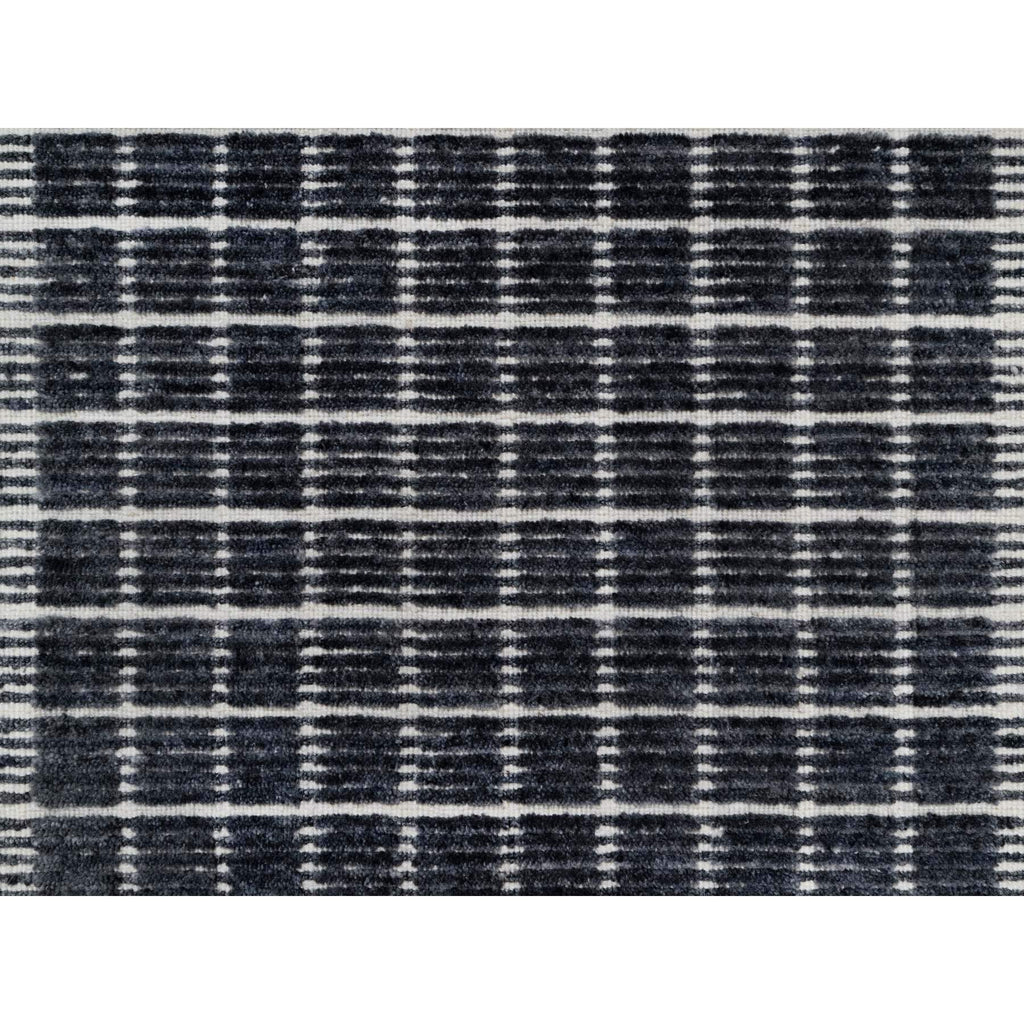 2'3"x3'1" Charcoal Black, Modern, Natural Wool Box Design With Plain Decor, Loomed Knotted, Mat, Oriental Rug FWR546390