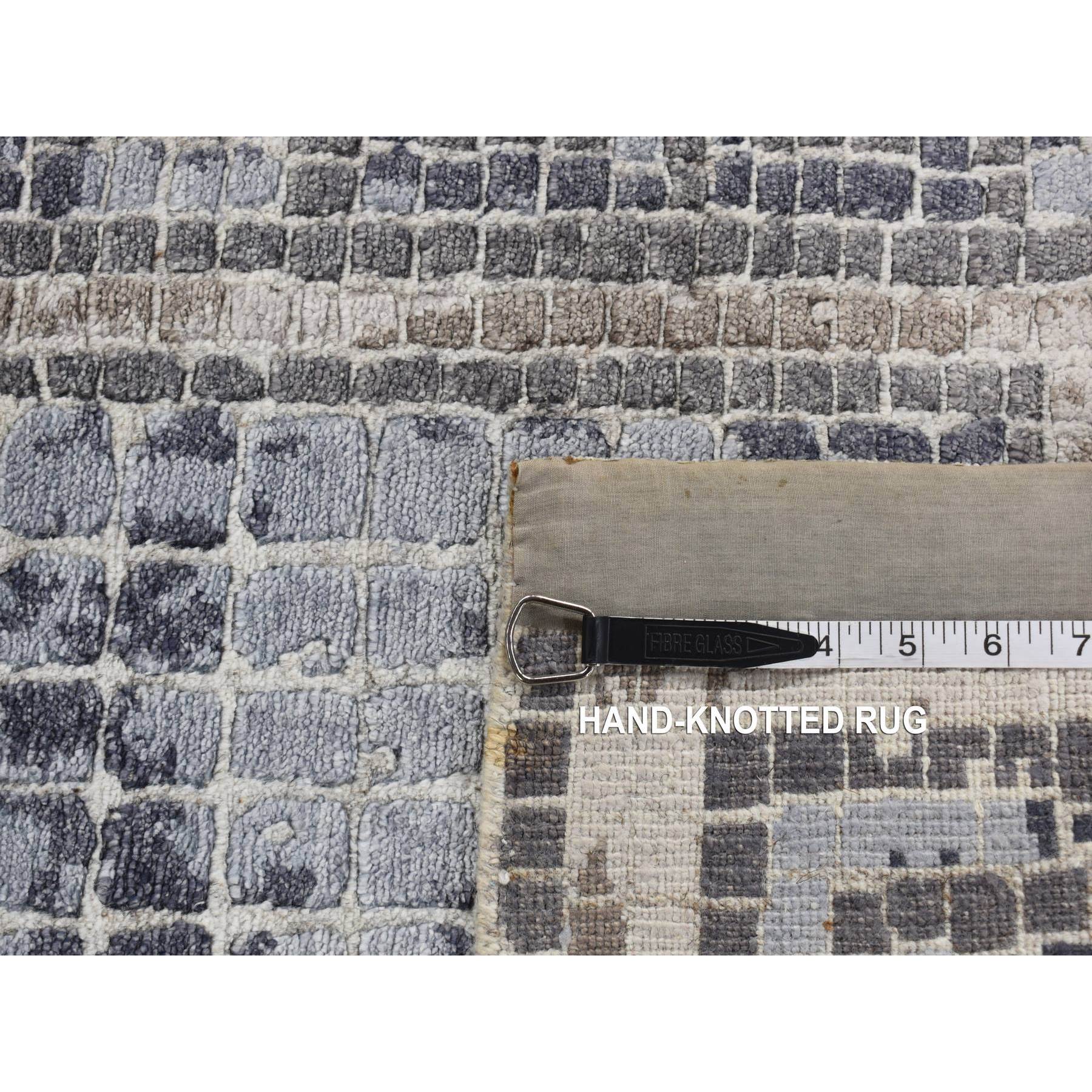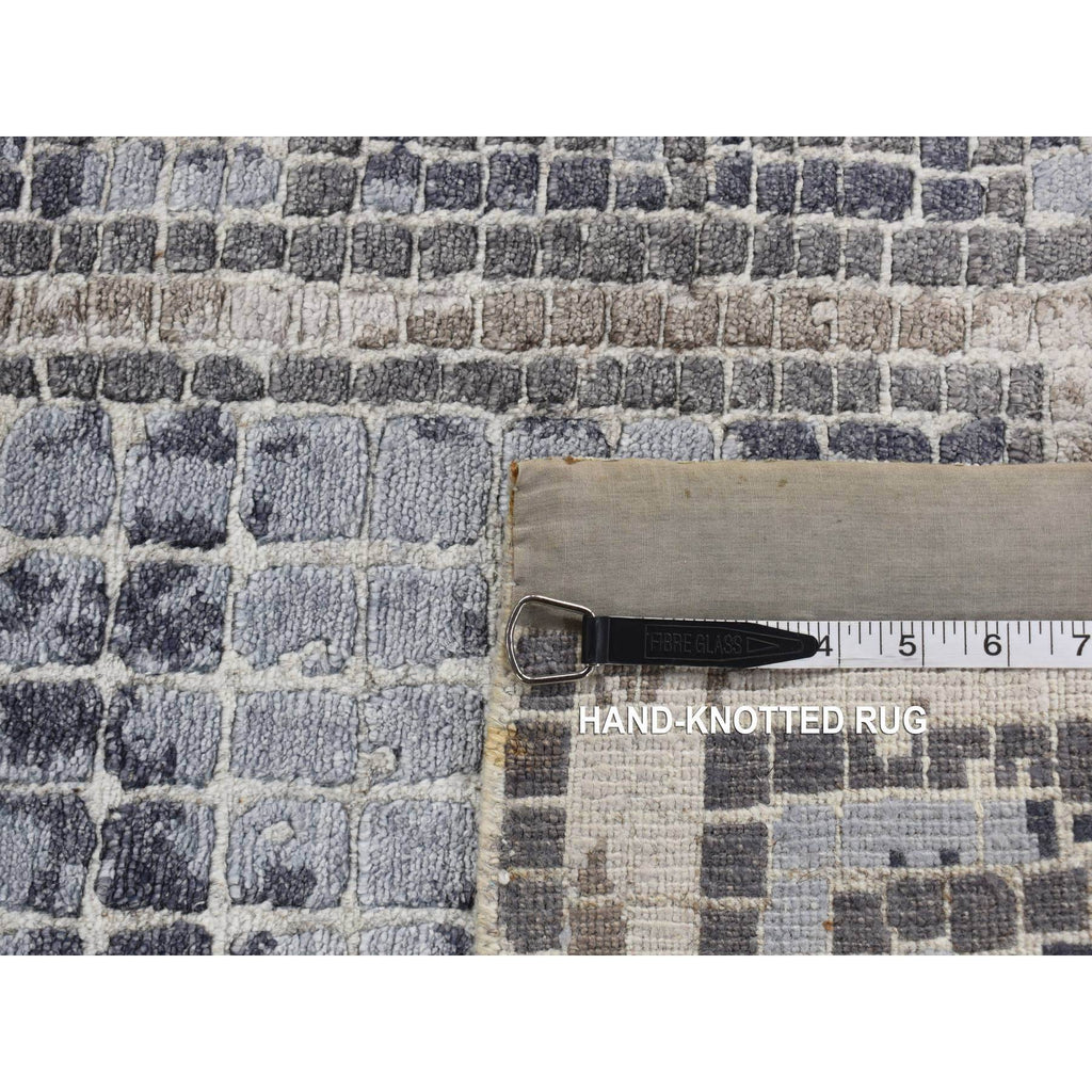 2'3"x3'2" Cloud Gray, Silken, Roman Mosaic Design, Hand Knotted, Sample Oriental Rug FWR526806