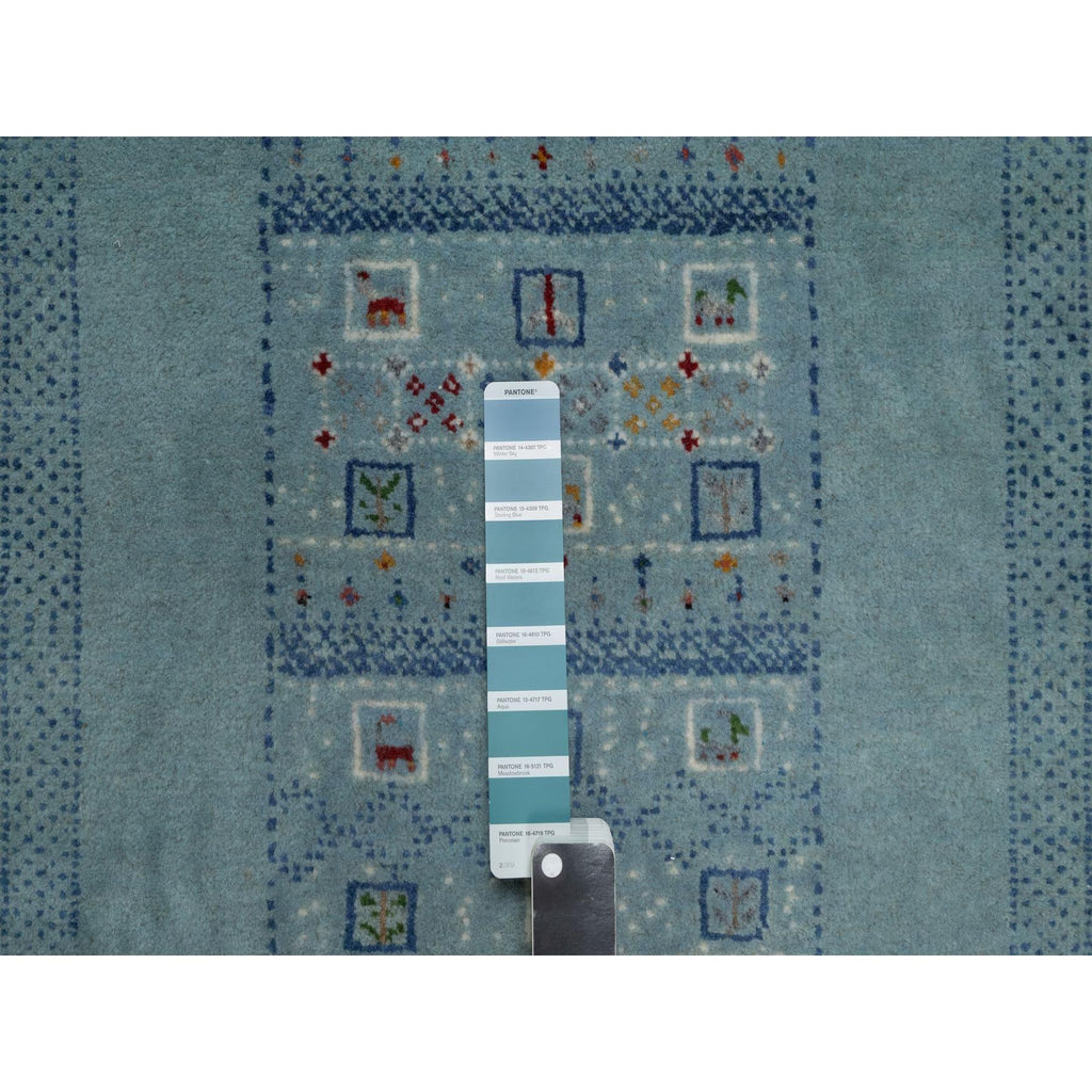 2'3"x4'5" Cerulean Blue, Thick And Plush, Lori Buft Gabbeh With Small Animal Figurines, Modern, 100% Wool, Hand Knotted, Mat, Oriental Rug FWR547914