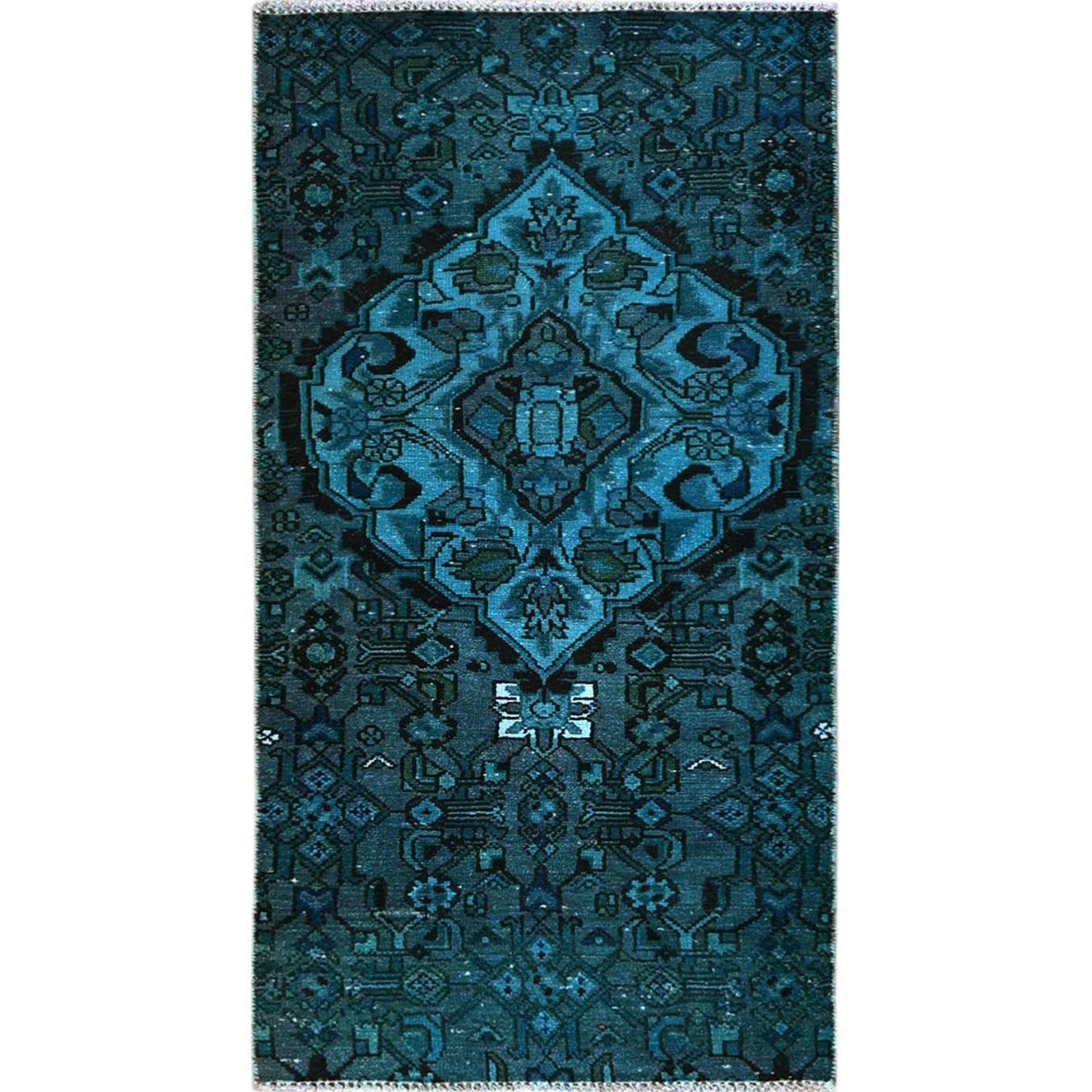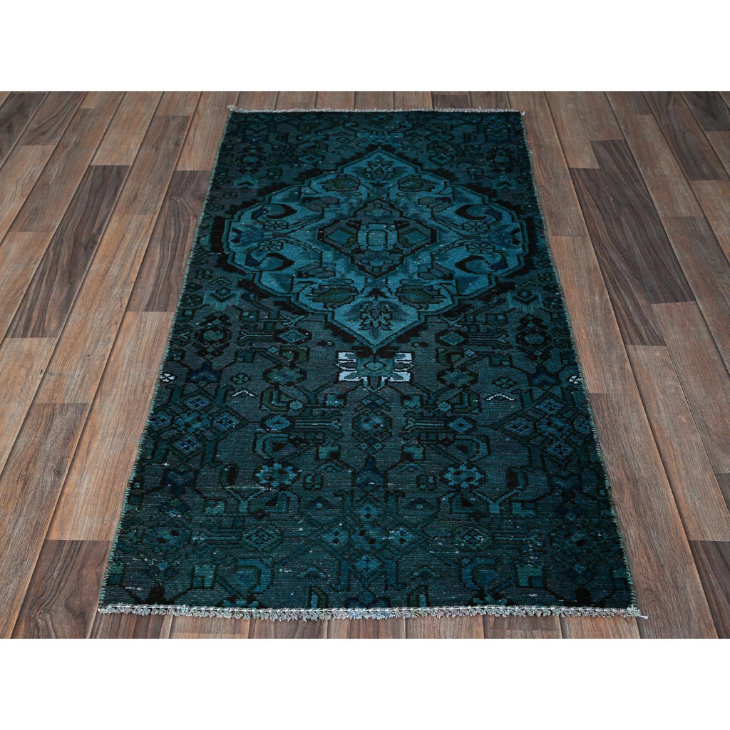 2'3"x4'5" Teal Overdyed, Vintage Persian Bakhtiar, Worn And Distressed, 100% Wool, Hand Knotted, Shaved Down, Zero Pile, Sides And Ends Professionally Secured, Fragment, Oriental Rug FWR5064