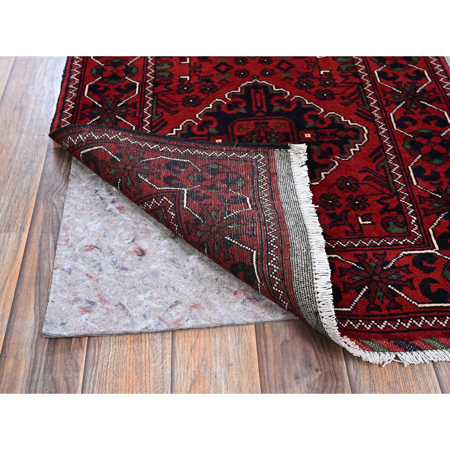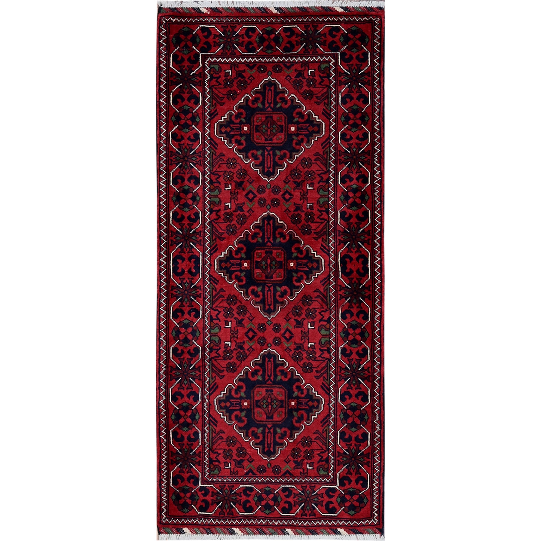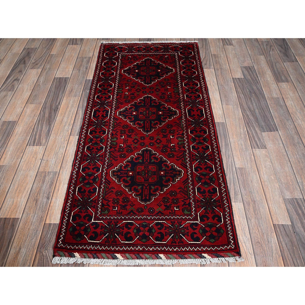 2'3"x5' Crimson Red, Afghan Khamyab With Geometric Medallions Design, Hand Knotted, Soft Wool, Vegetable Dyes, Short & Narrow Runner, Oriental Rug FWR4416