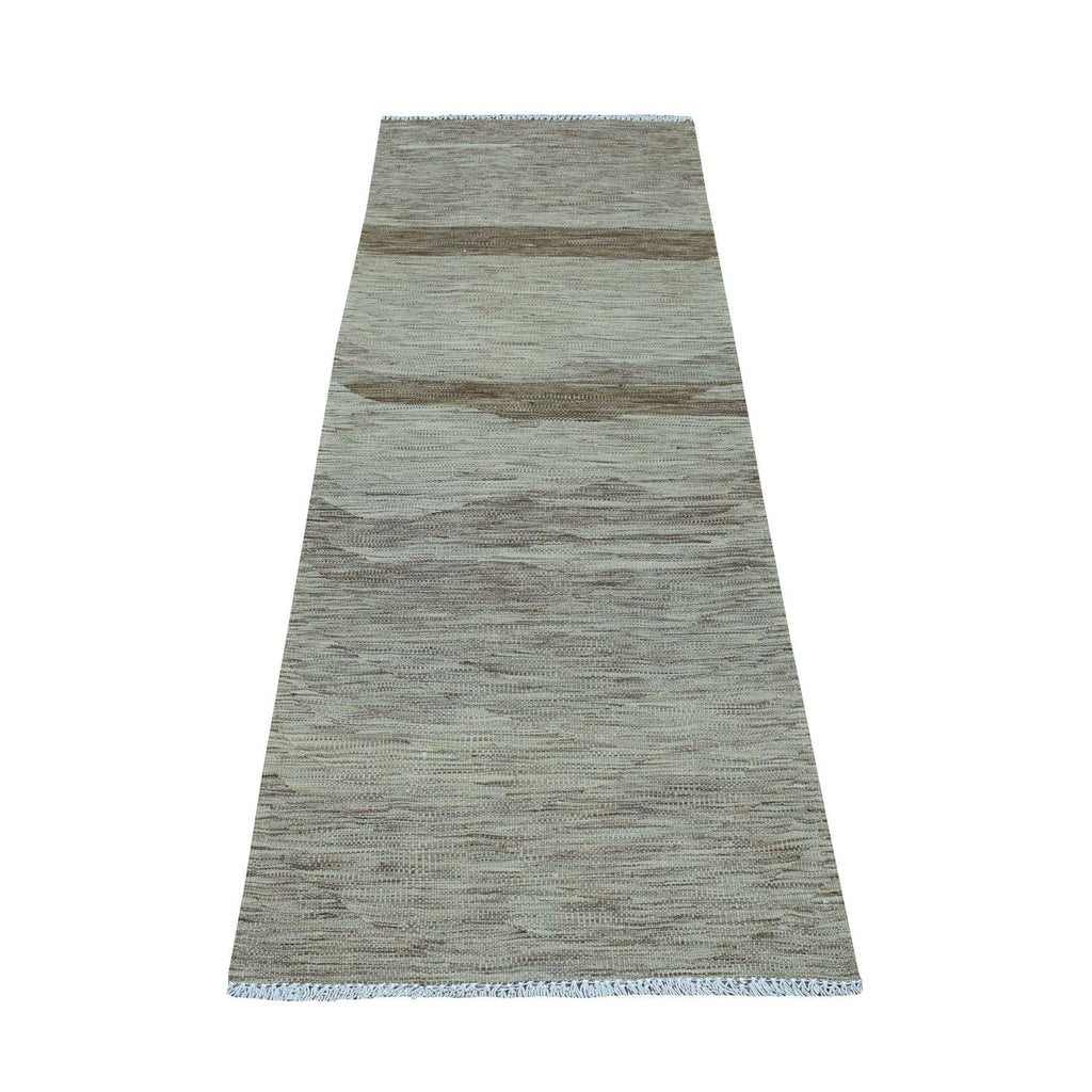 2'3"x6'4" Natural Shades Reversible Kilim Pure Wool Hand Woven Oriental Runner Rug FWR325506