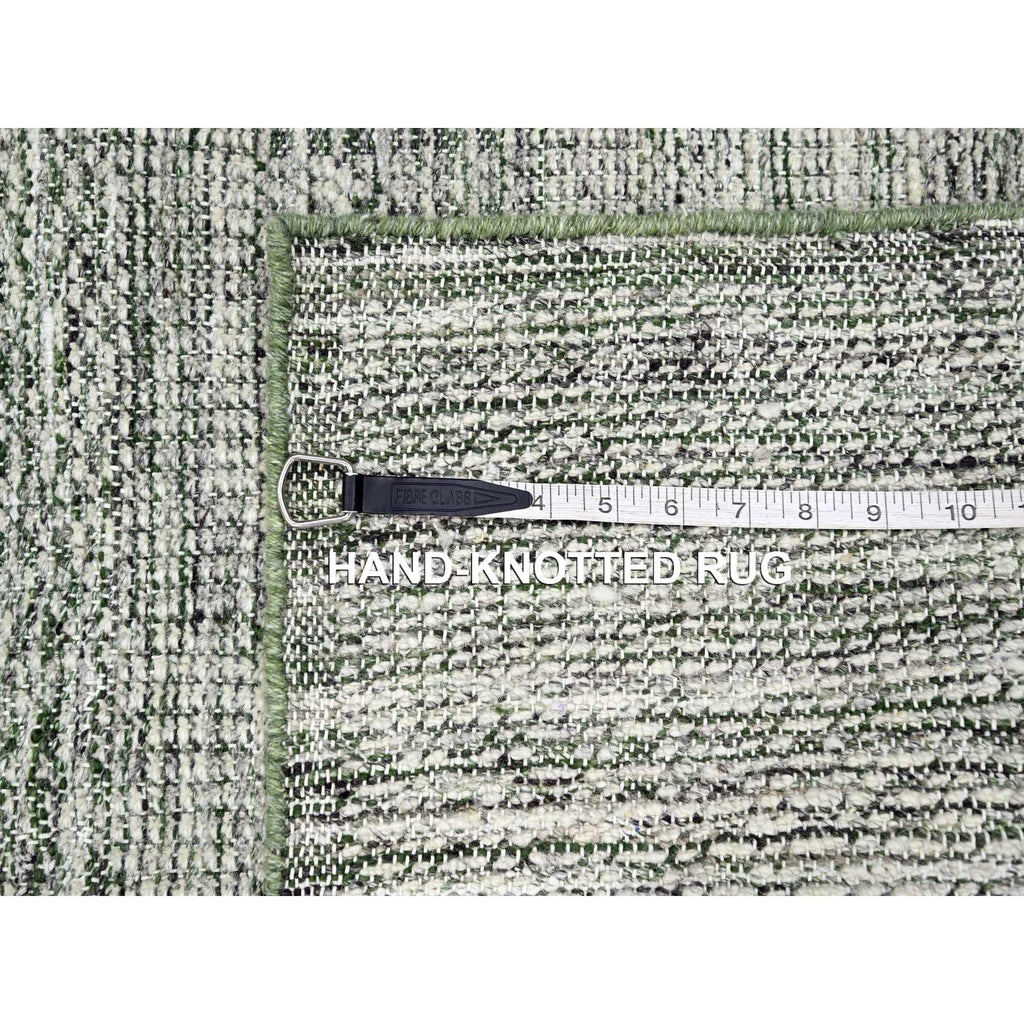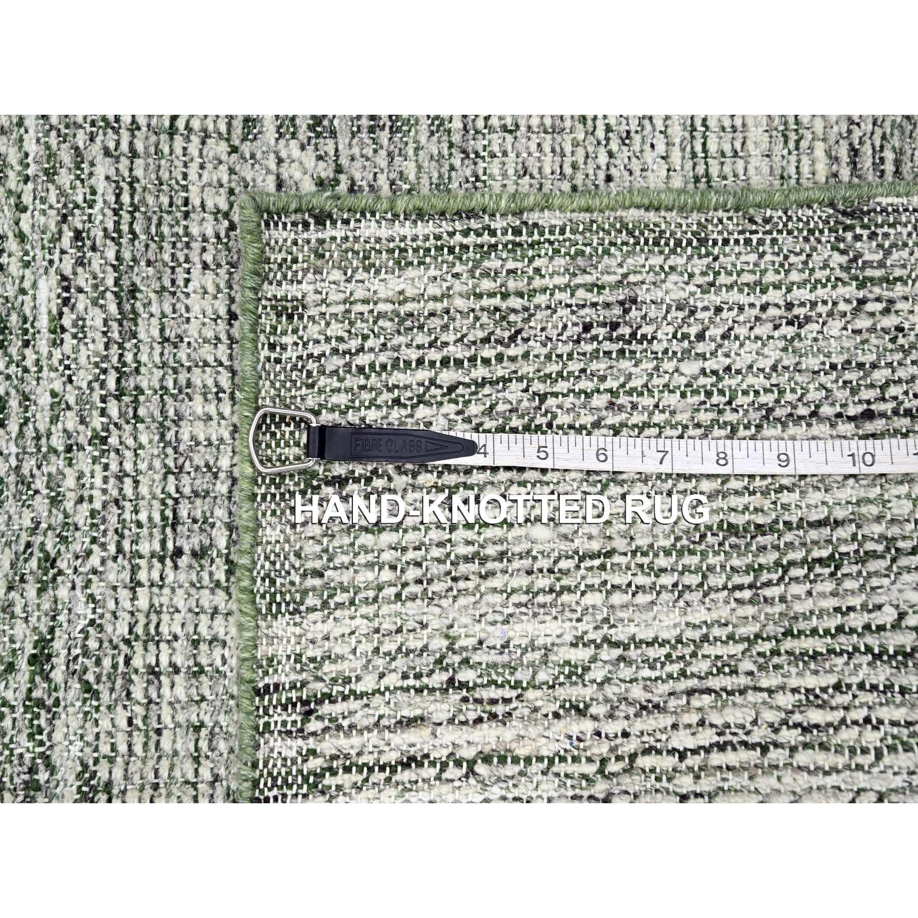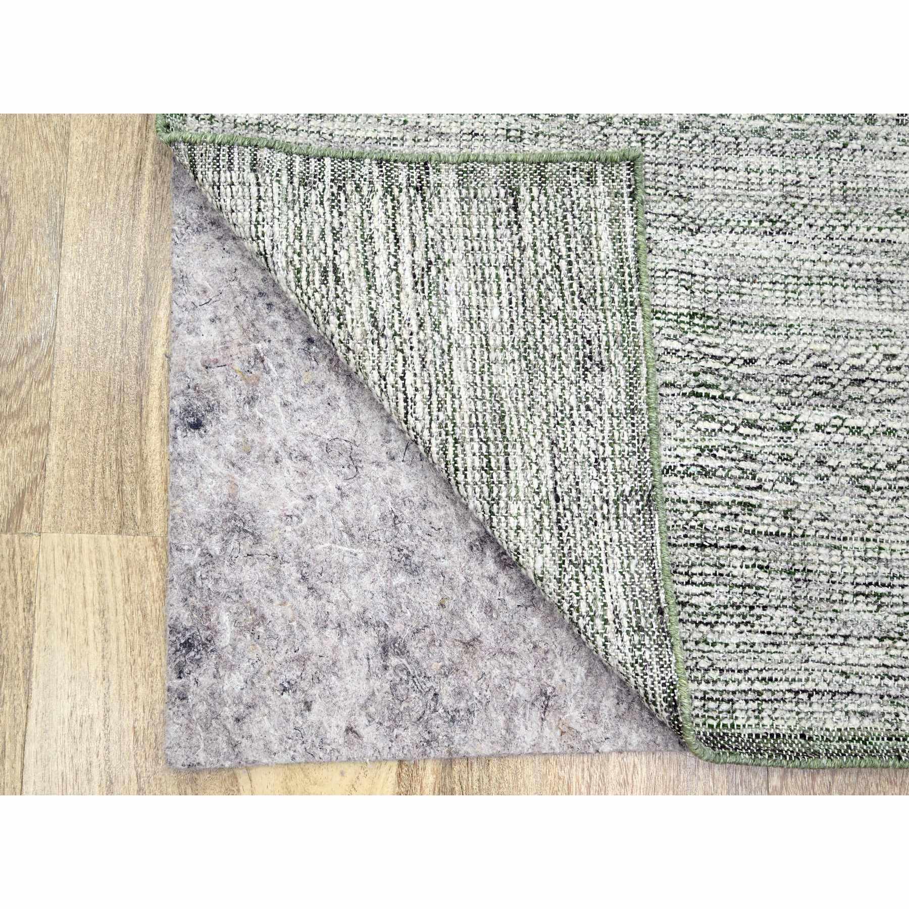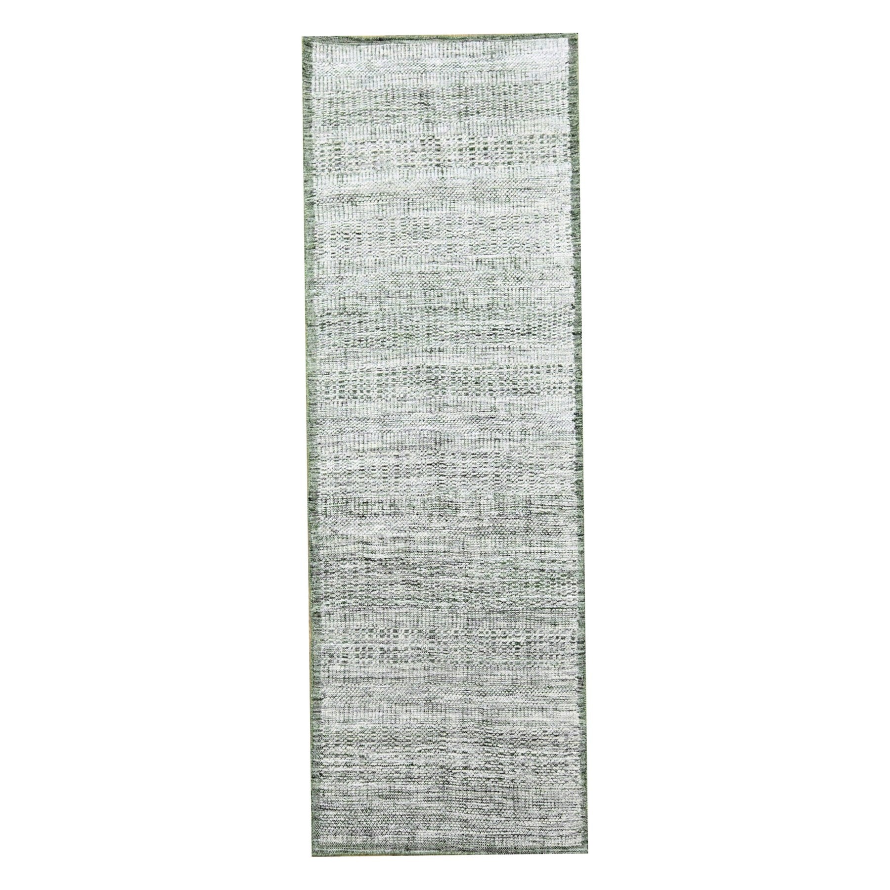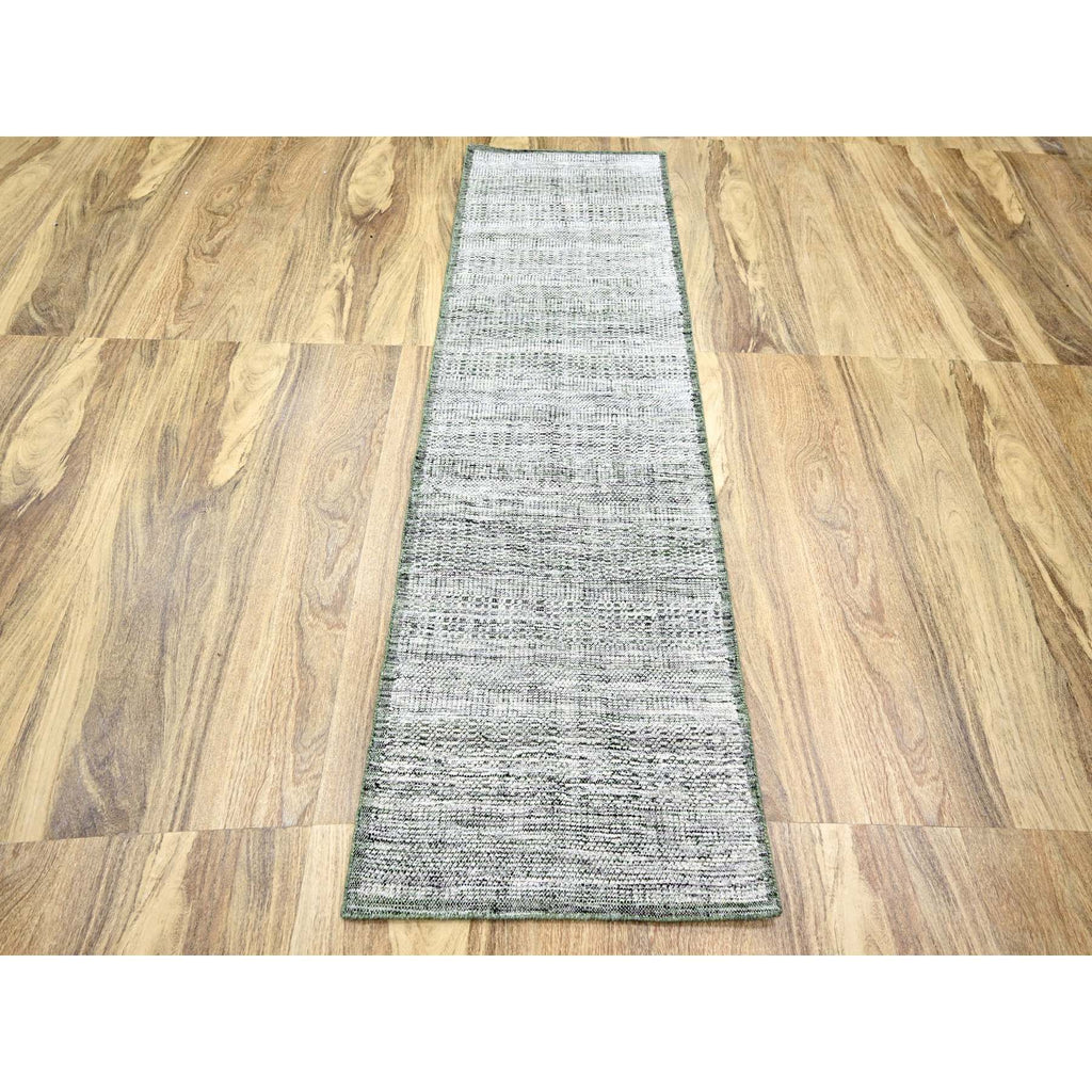 2'3"x8' Cotton White With Forest Green, Hand Knotted, Oxidized And Distressed Grass Design With Exposed Warps, 100% Wool, Narrow Runner, Oriental Rug FWR457518