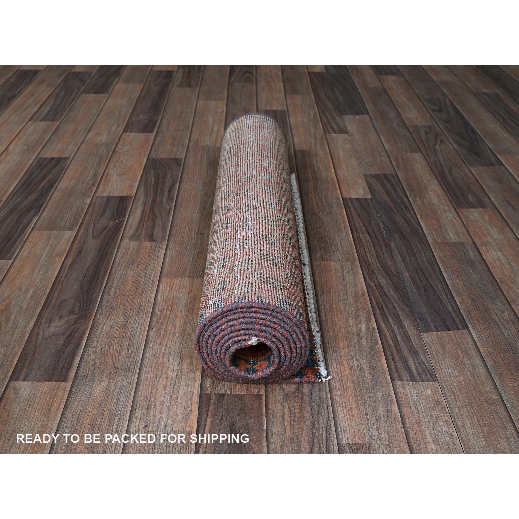 2'3"x9' Blush Red, Repetitive Boteh Design With Distinct Abrash, Vintage Persian Tabriz, Shaved Down, Zero Pile, Sides And Ends Professionally Secured, Hand Knotted, 100% Wool, Narrow Runner, Oriental Rug FWR4974
