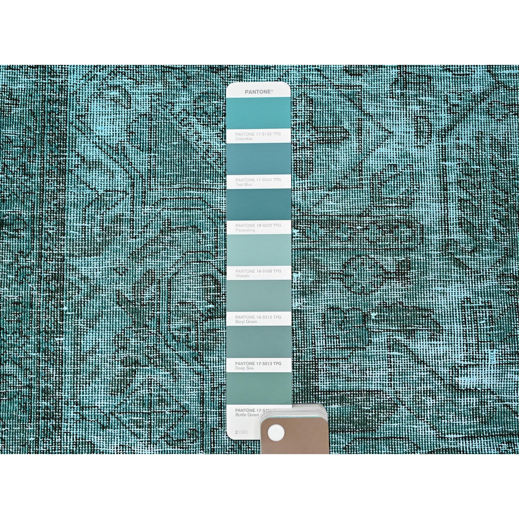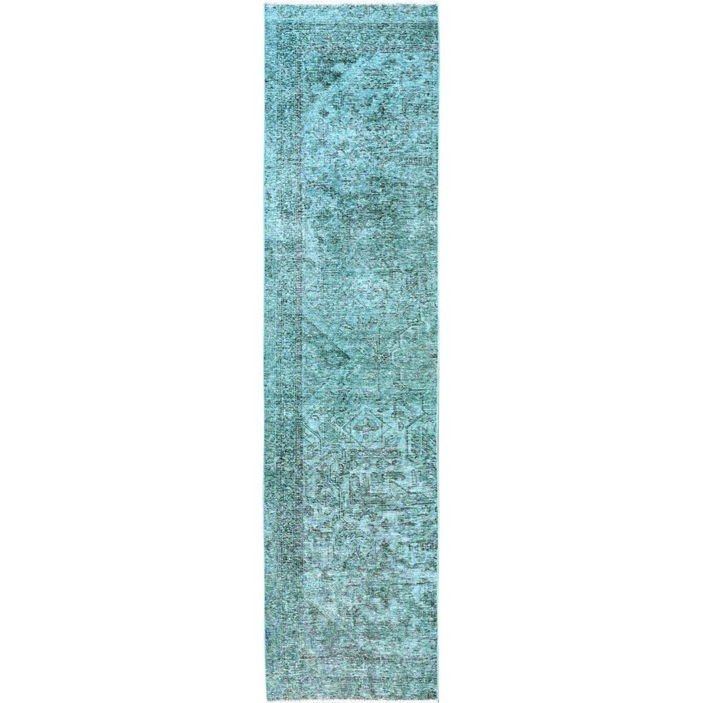 2'4"x10'2" Bottle Green, Overdyed Vintage Persian Tabriz, Worn And Distressed, Hand Knotted, 100% Wool, Sides And Ends Professionally Secured, Sheared Low, Fragment, Narrow Runner, Oriental Rug FWR5652