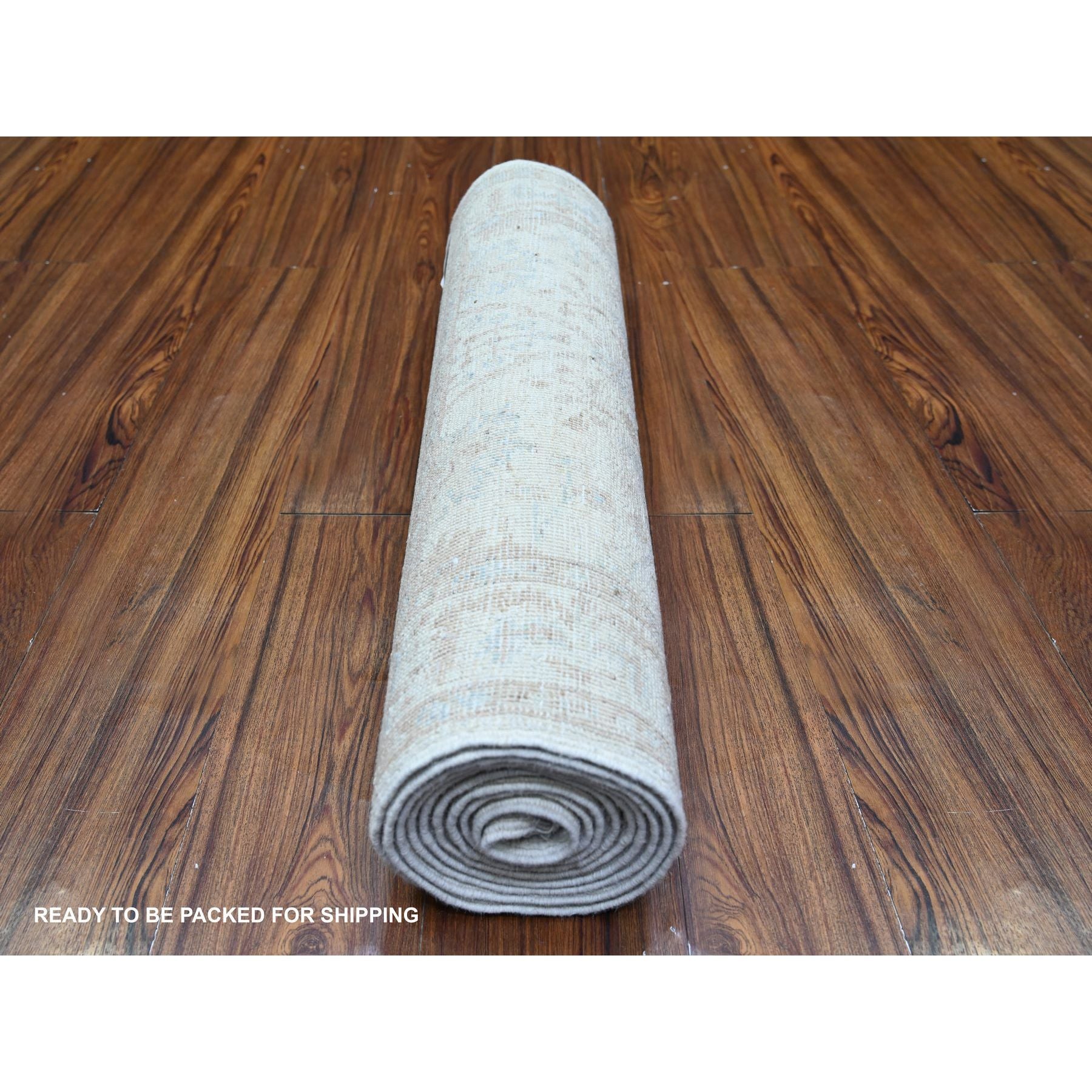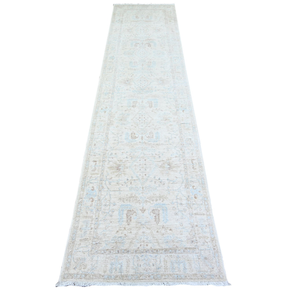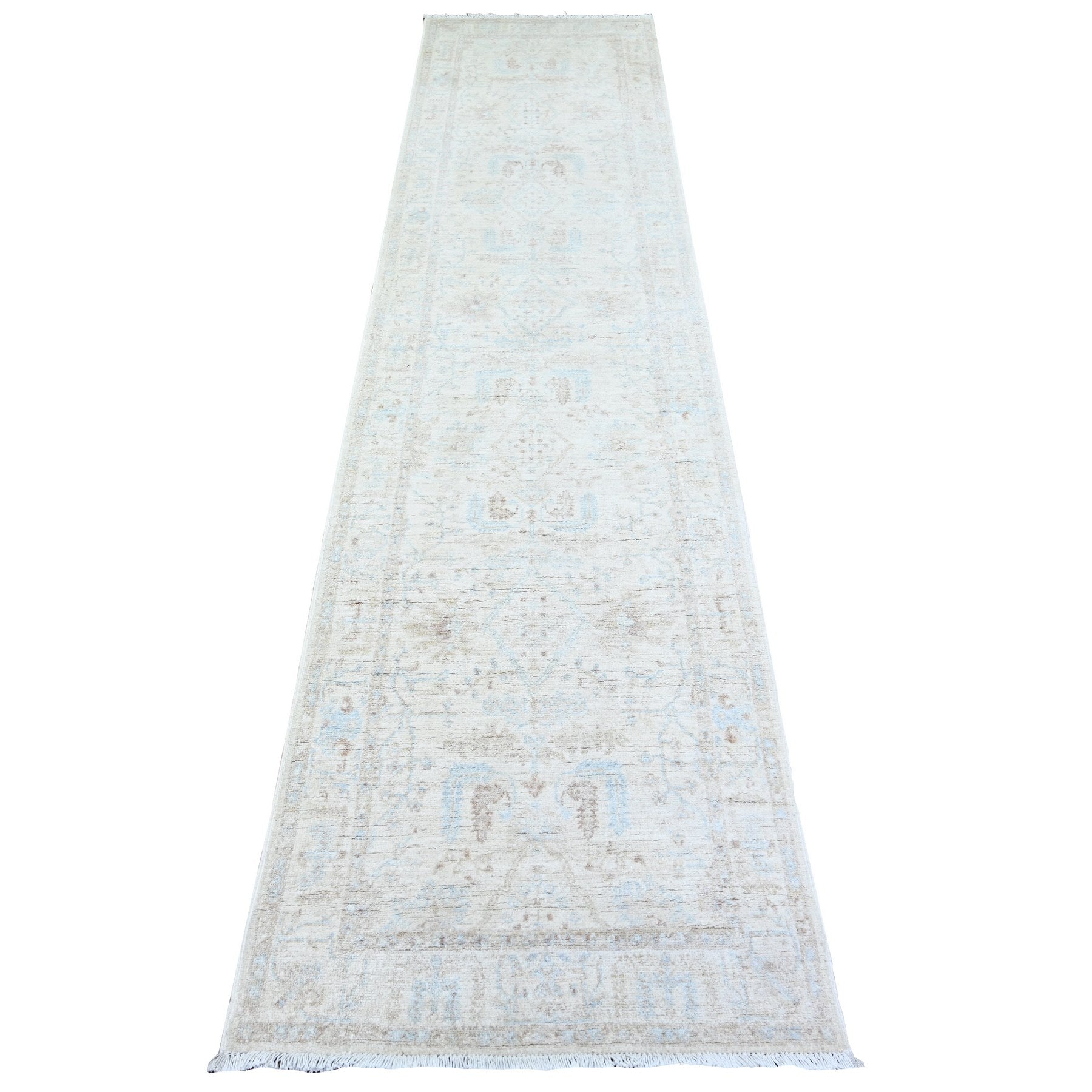2'4"x10'2" Ceramic Ivory, Densely Woven, Vegetable Dyes, Washed Out Peshawar With Faded Out, Natural Wool, Hand Knotted, Runner Oriental Rug FWR449244