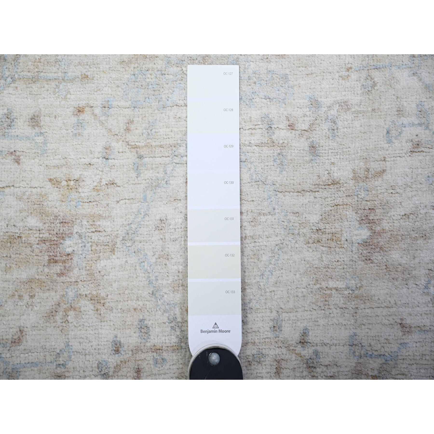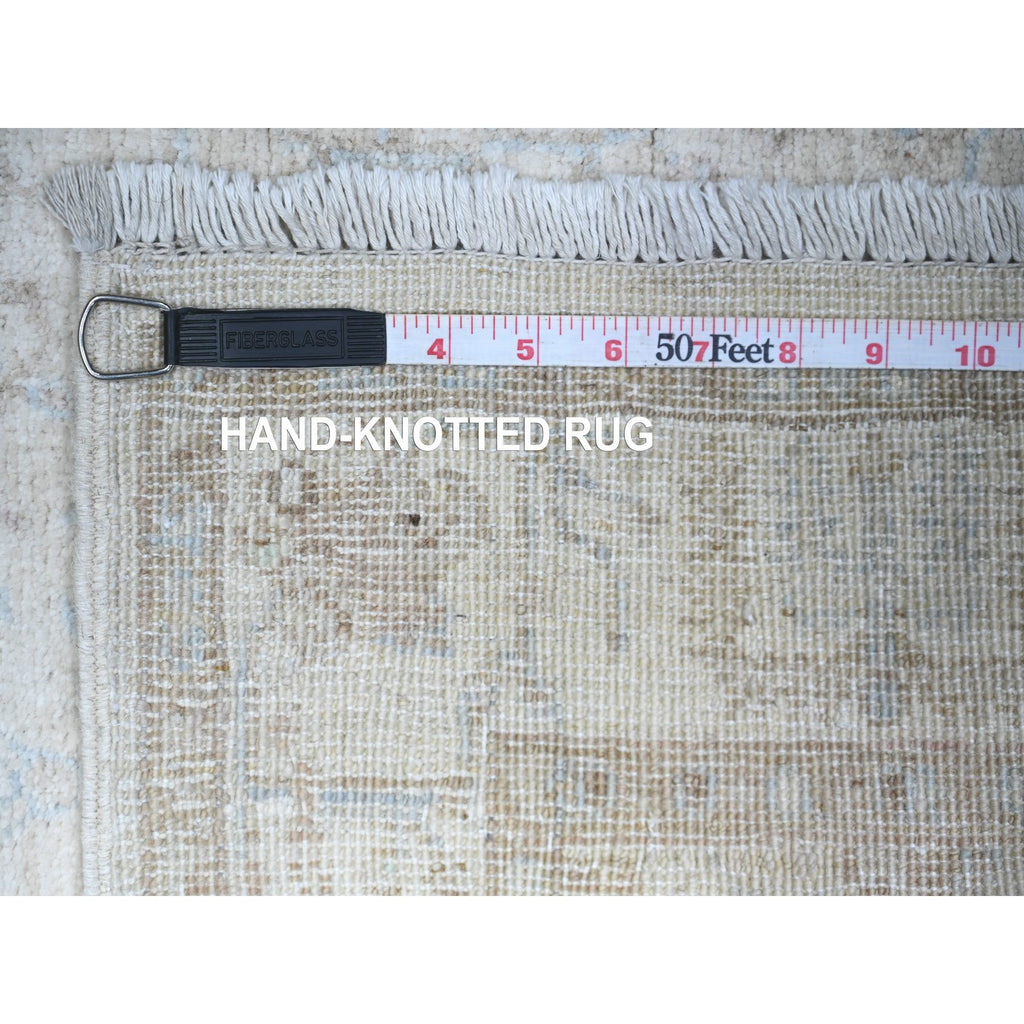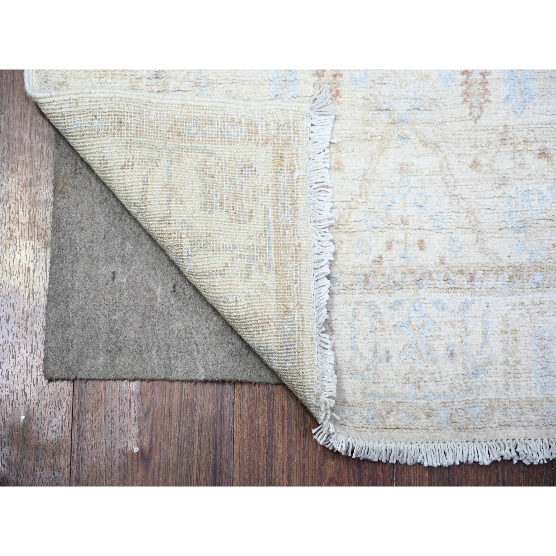 2'4"x10'2" Ceramic Ivory, Densely Woven, Vegetable Dyes, Washed Out Peshawar With Faded Out, Natural Wool, Hand Knotted, Runner Oriental Rug FWR449244
