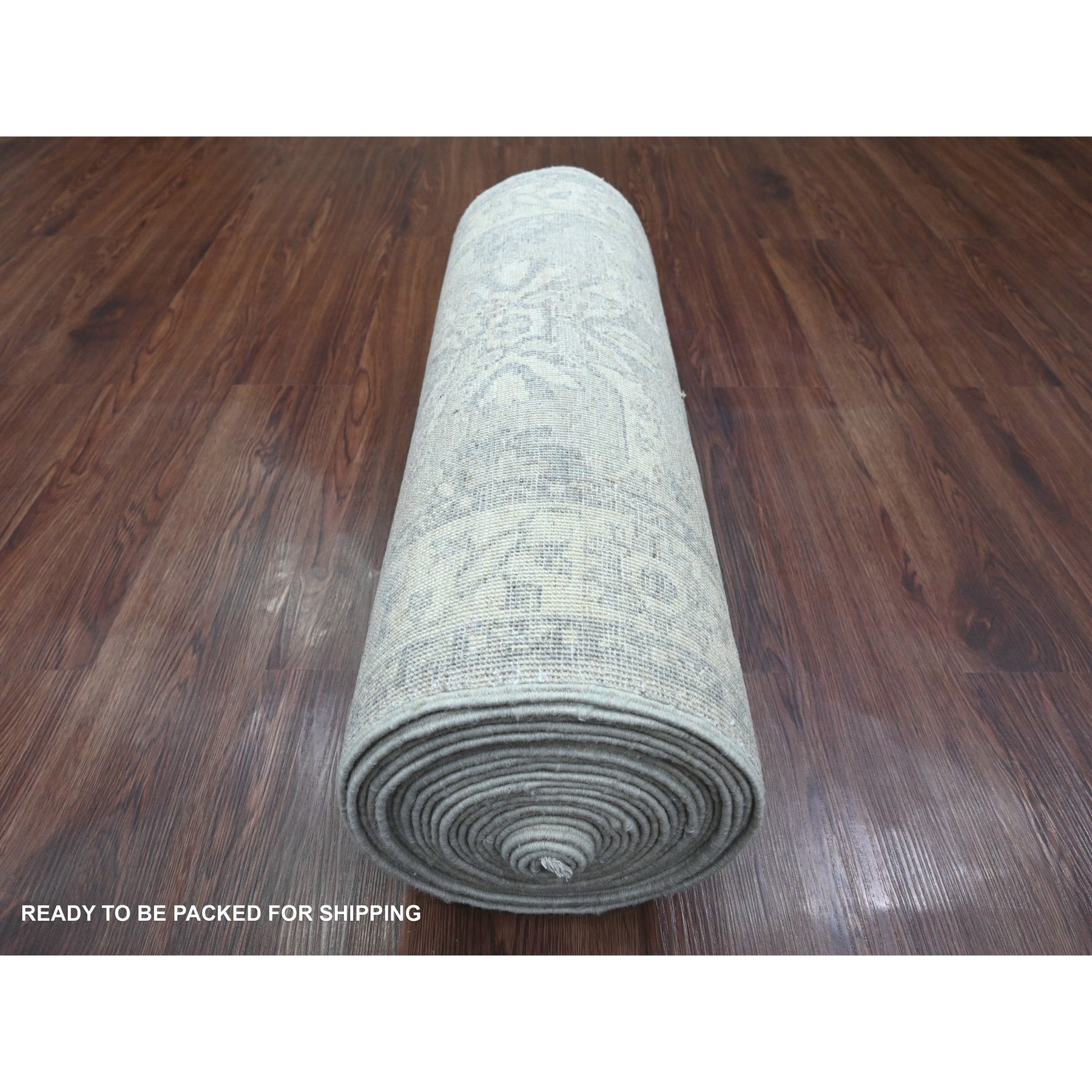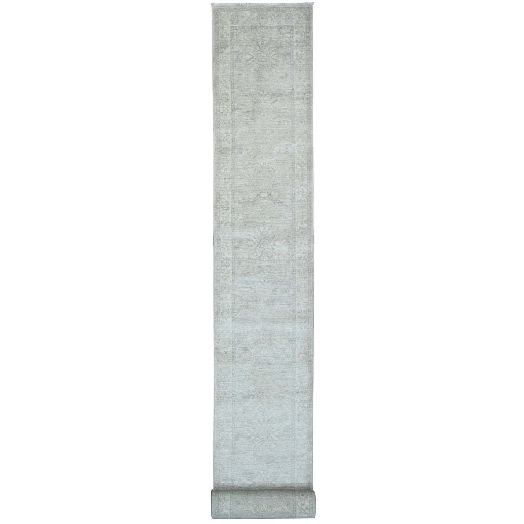 2'4"x29'3" Whisper White, Peshawar With Heriz All Over Design, Densely Woven, High Mountain Wool, Hand Knotted, Xl Runner, Oriental Rug FWR123900