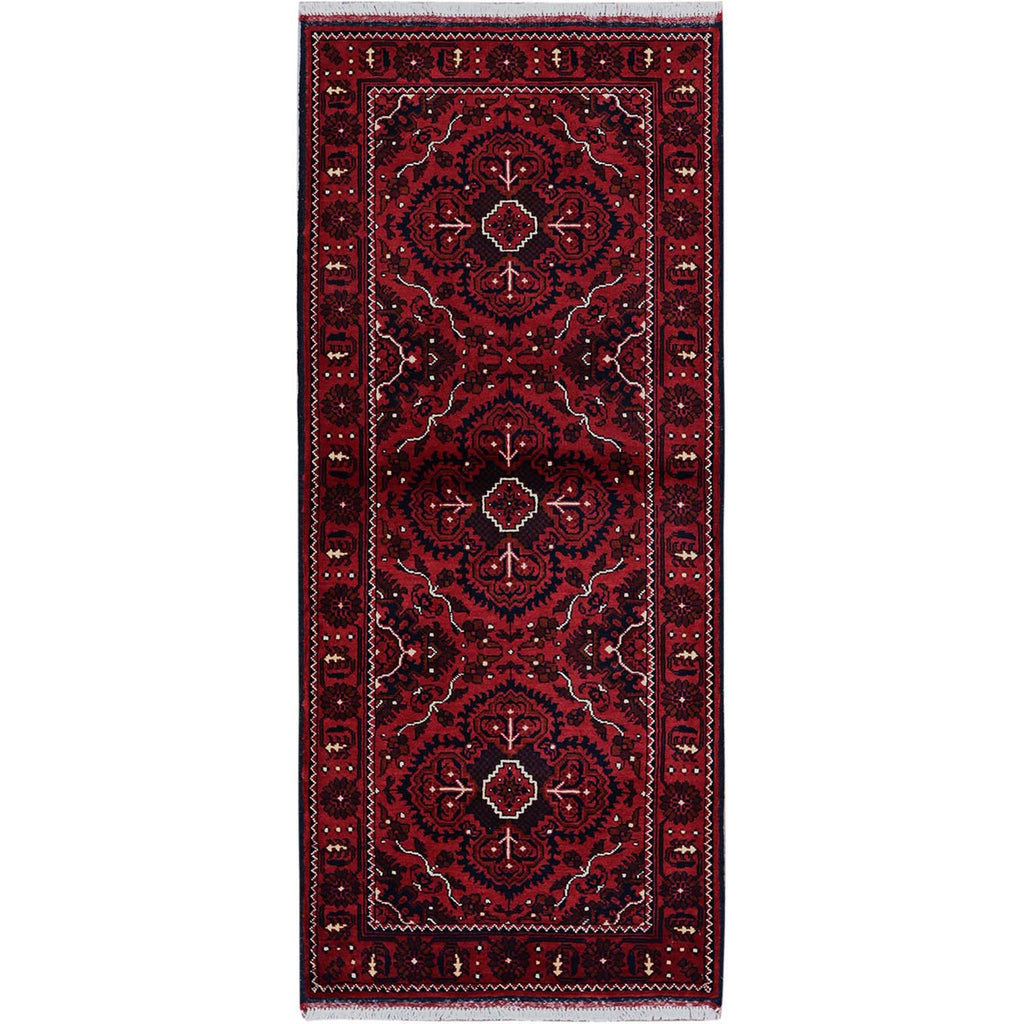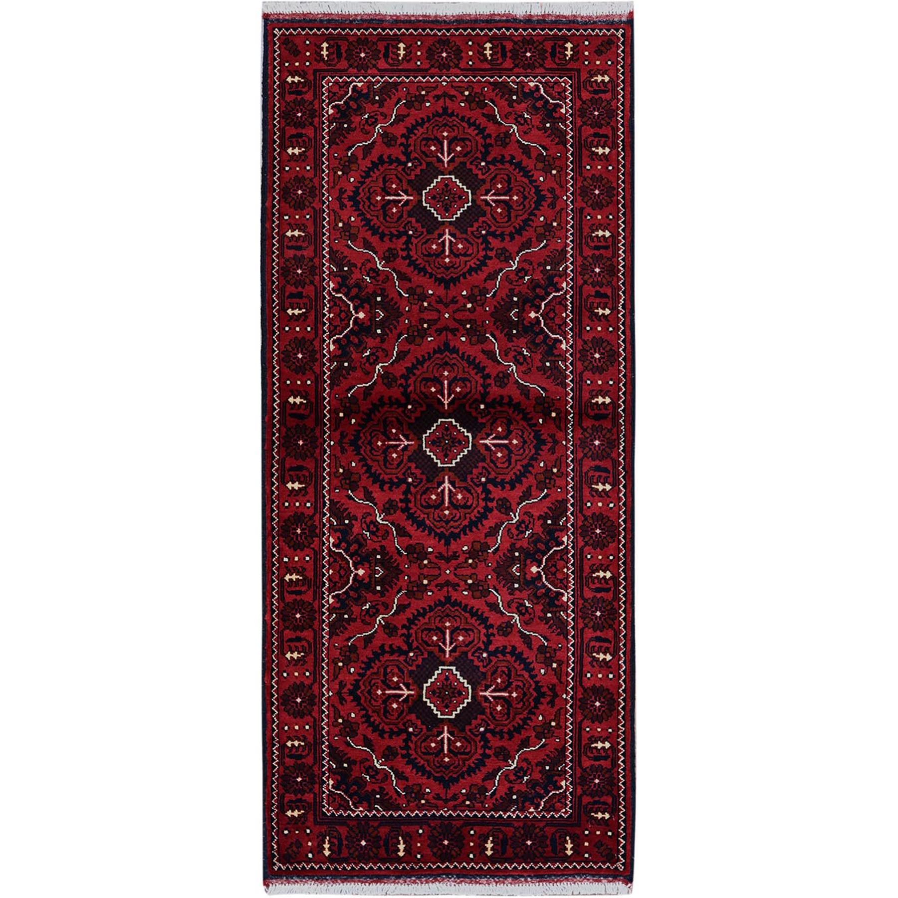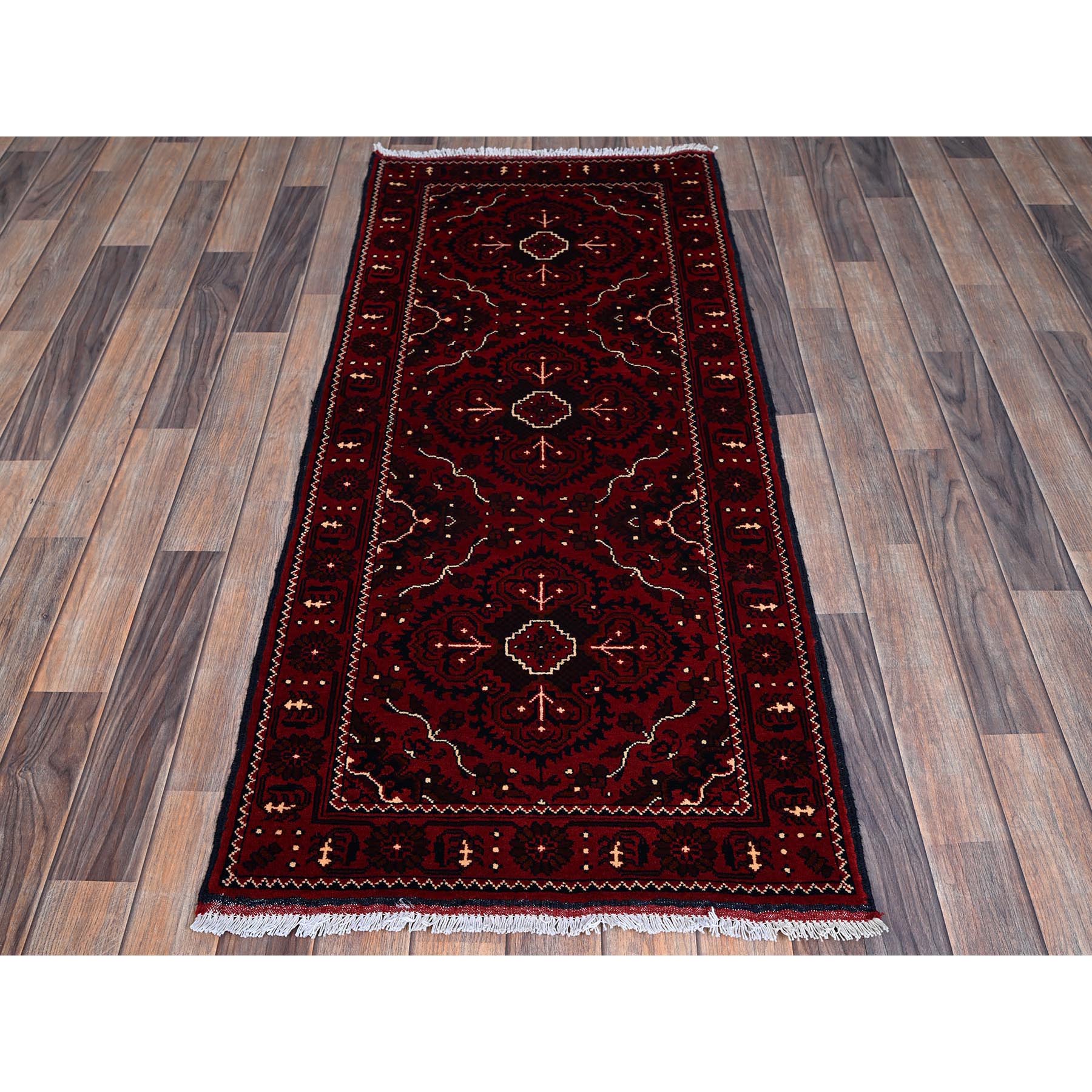 2'4'x5'2" Ruby Red, Afghan Khamyab With Tribal Design, Hand Knotted, Soft And Shiny Wool, Natural Dyes, Short Runner, Oriental Rug FWR4104
