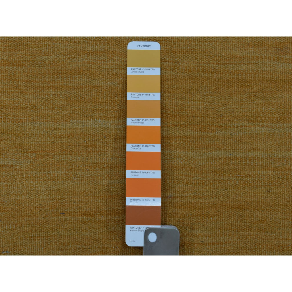 2'4"x6'5" Gold Shades Flat Weave Kilim Pure Wool Hand Woven Runner Oriental Rug FWR323118