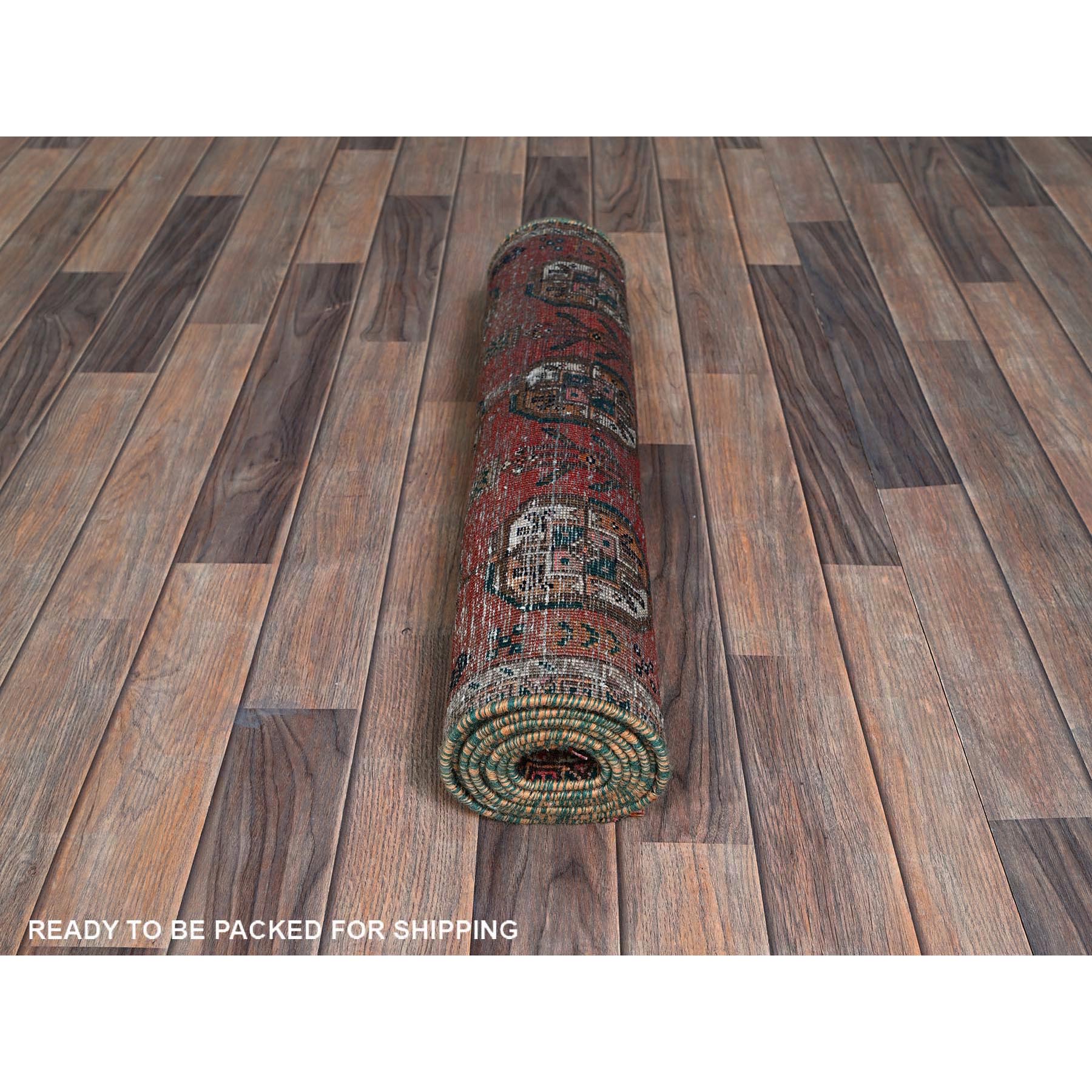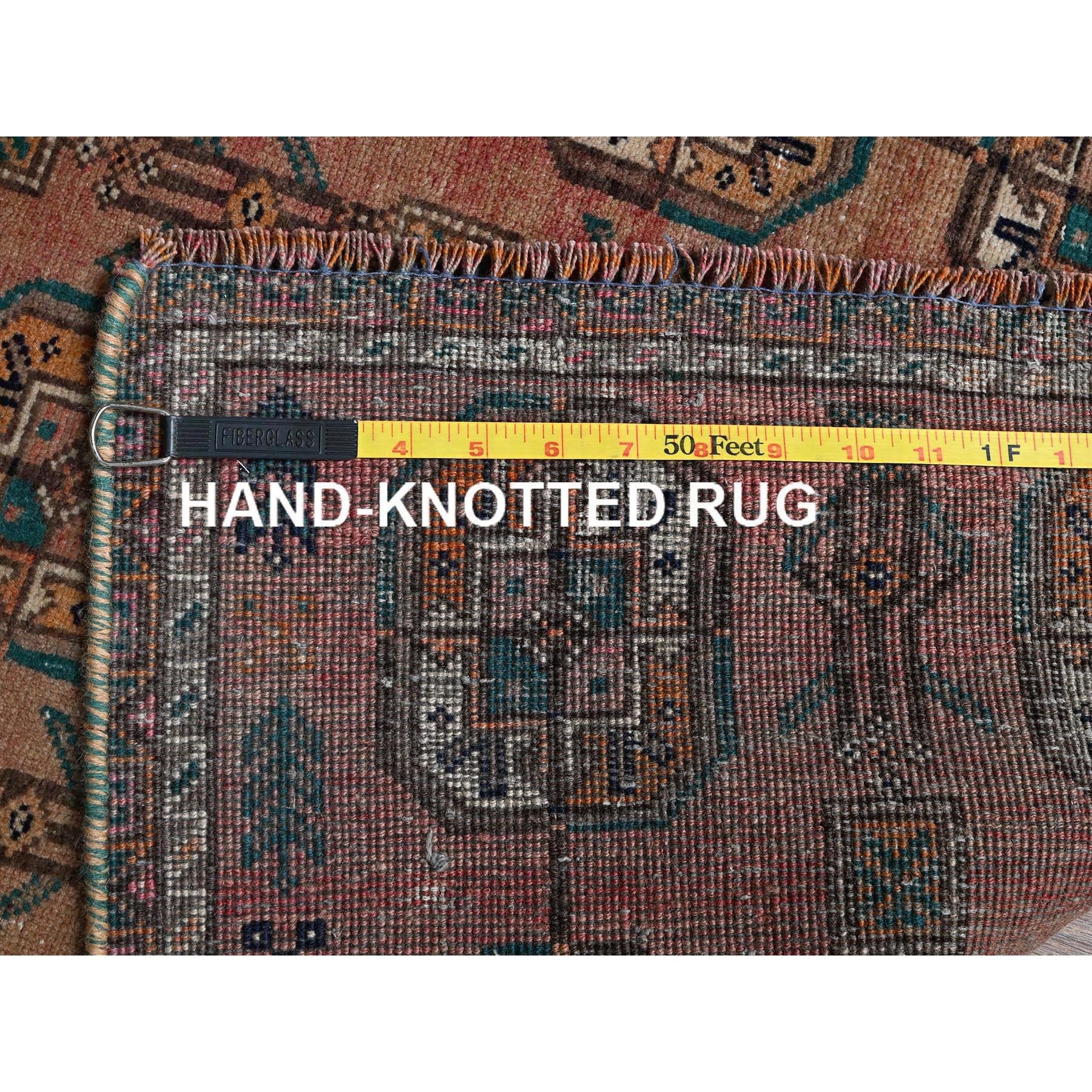 2'4"x7'8" Cafe Au Lait Brown, Vintage Persian Shiraz With Turkoman Elephant Feet Design, Distinct Abrash, Shaved Down, Zero Pile, Hand Knotted, 100% Wool, Sides And Ends Professionally Secured, Narrow Runner, Oriental Rug FWR5316