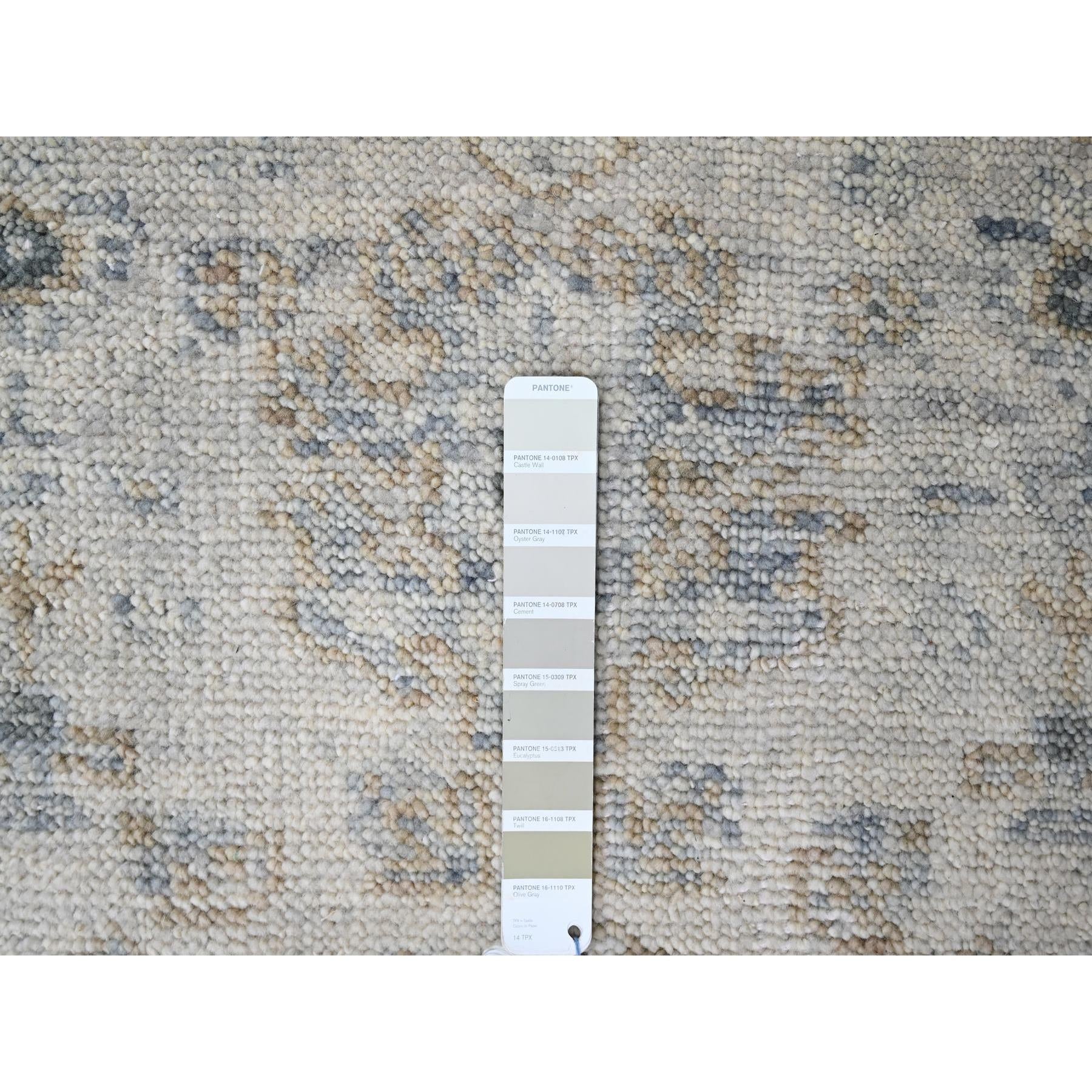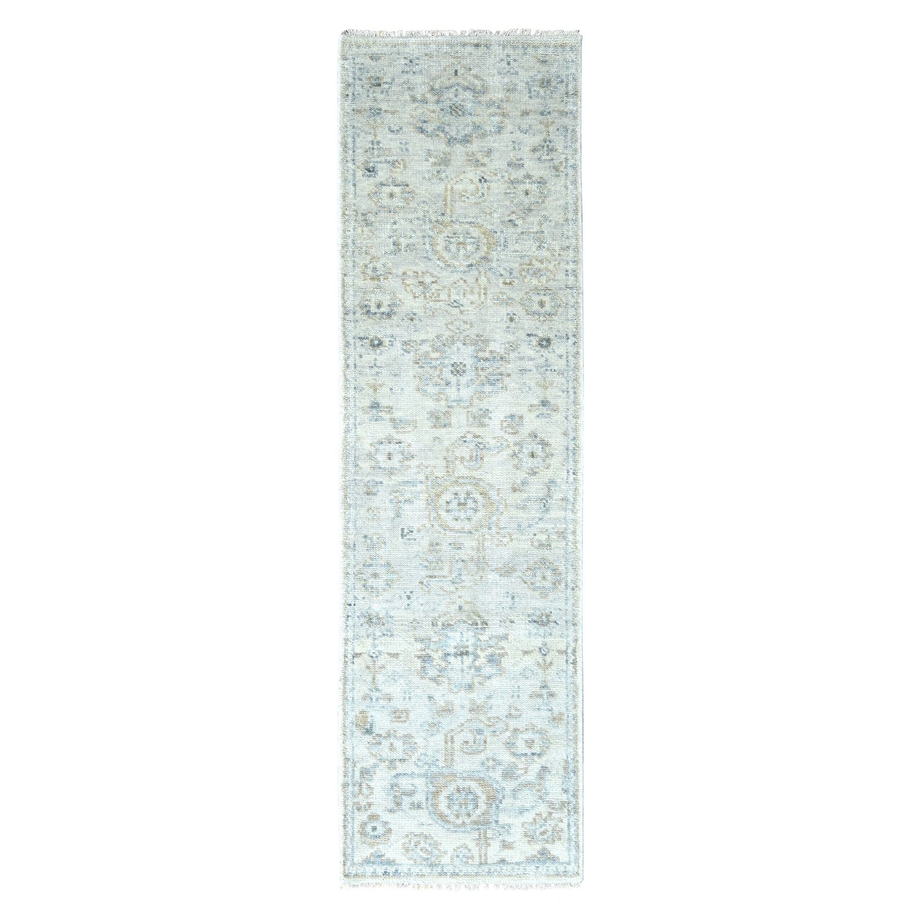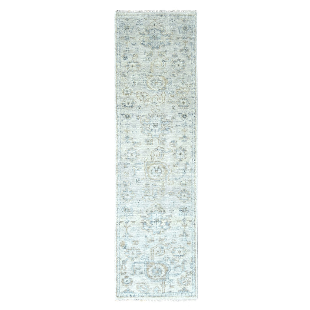 2'4"x8'8" Pastel Gray, Oushak Design, Supple Collection, Tone On Tone, Hand Knotted, Pure Wool, Plush And Lush, Runner, Oriental Rug FWR61584